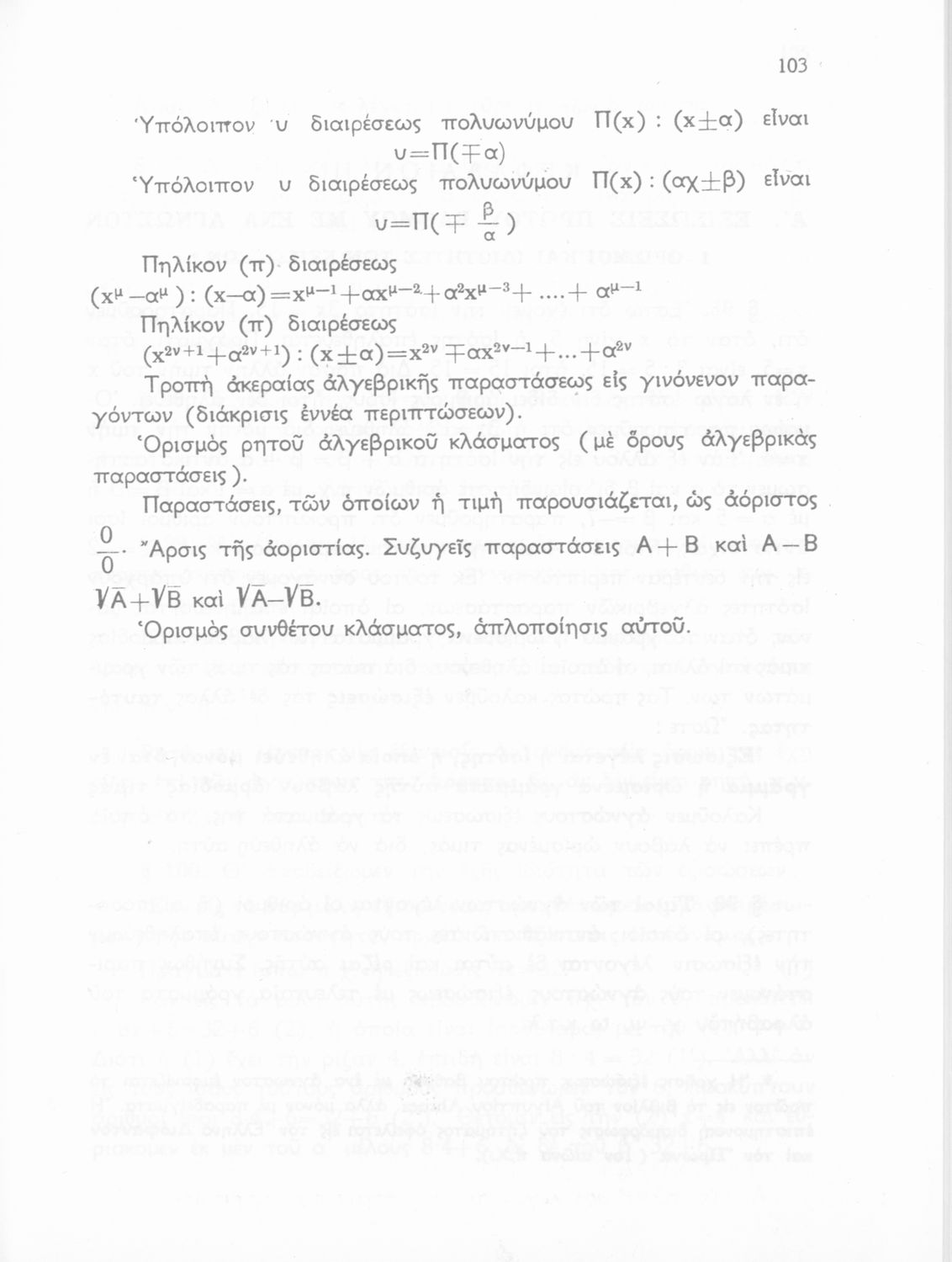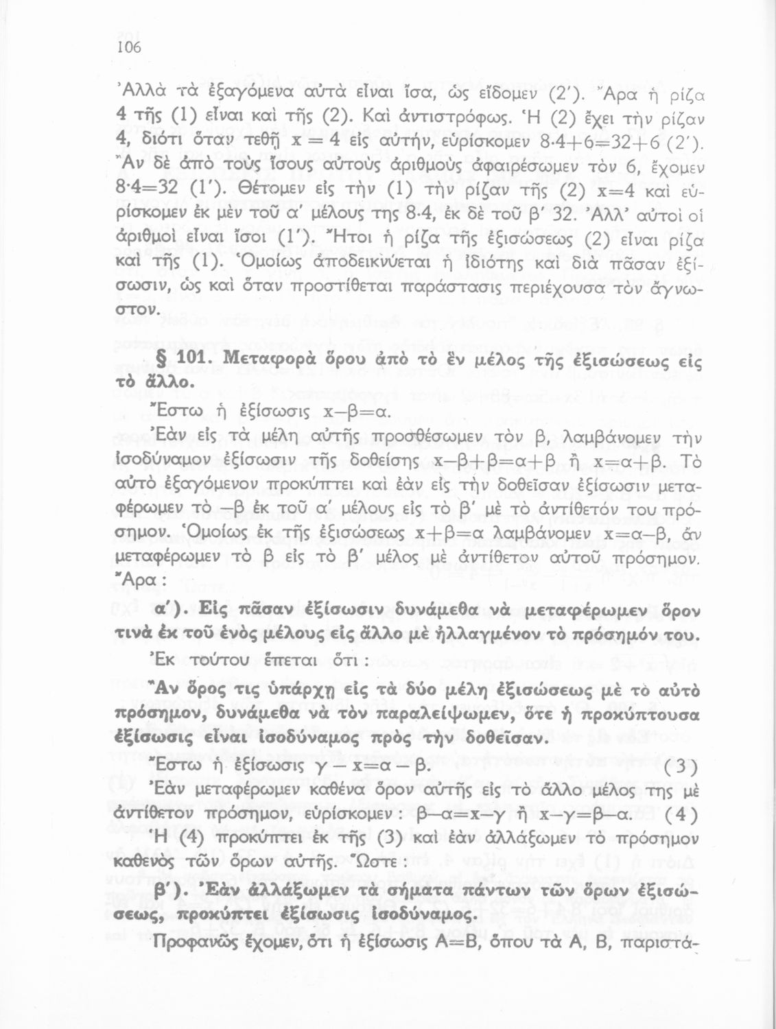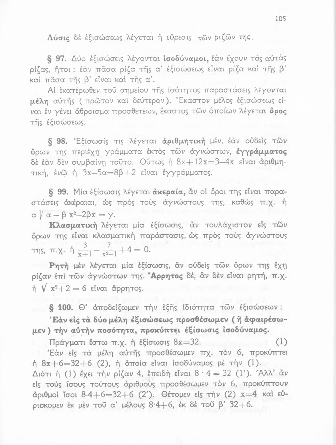 Παρουσίαση περιεχομένου: Σχολικό εγχειρίδιο Μαθηματικών Δ', Ε' και ΣΤ΄ τάξεων του Γυμνασίου που παρουσιάζει τις βασικές έννοιες της Άλγεβρας, εστιάζει τις ιδιότητες των αριθμών και περιέχει ασκήσεις εξισώσεων, λογαρίθμων και παραγώγων.
