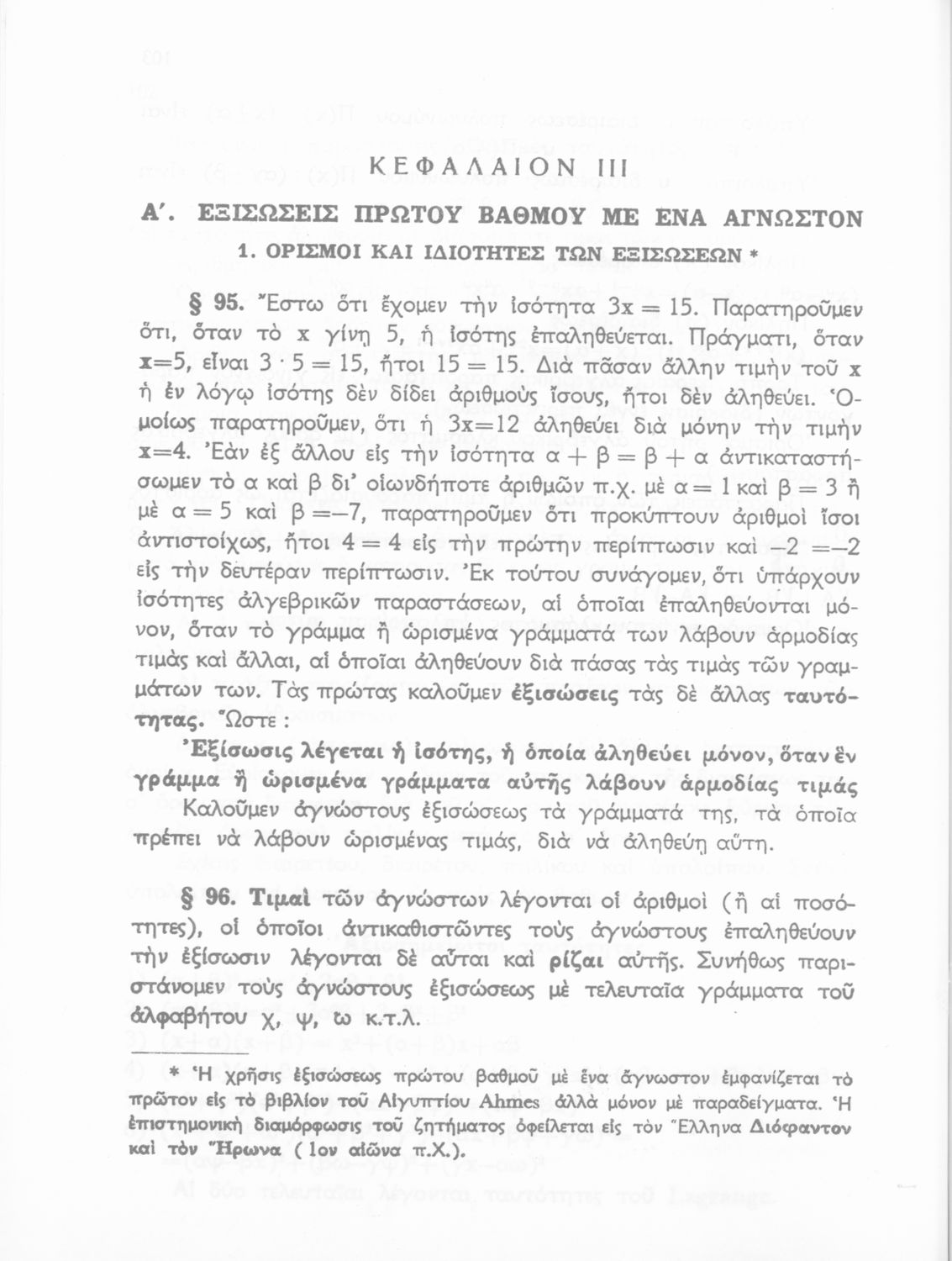 Σχολικό εγχειρίδιο Μαθηματικών Δ', Ε' και ΣΤ΄ τάξεων του Γυμνασίου που παρουσιάζει τις βασικές έννοιες της Άλγεβρας, εστιάζει τις ιδιότητες των αριθμών και περιέχει ασκήσεις εξισώσεων, λογαρίθμων και παραγώγων.