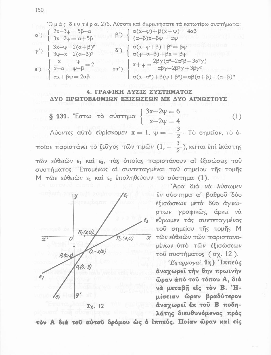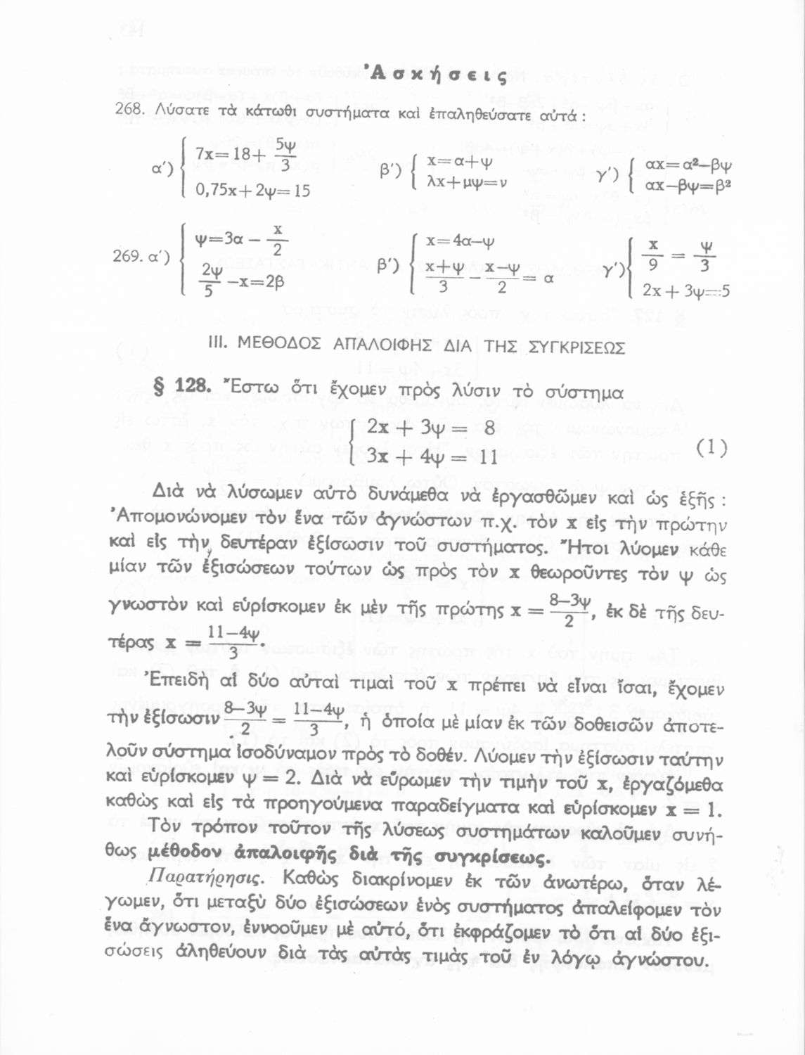 Σχολικό εγχειρίδιο Μαθηματικών για τις Δ΄, Ε΄ και ΣΤ΄ Γυμνασίου χωρισμένο σε θεωρήματα και ασκήσεις που εστιάζει στη Γεωμετρία. Φέρει το σύμβολο της δικτατορίας.