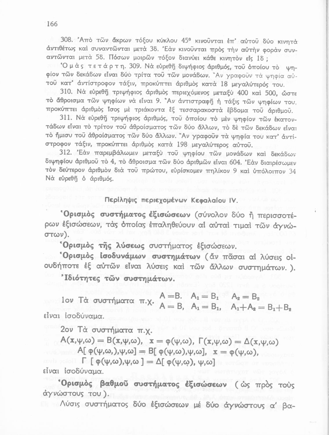 Σχολικό εγχειρίδιο Γεωμετρίας για τις Γ΄, Δ΄, Ε΄, ΣΤ΄ Γυμνασίου που περιλαμβάνει θεωρία και ασκήσεις και είναι χωρισμένο σε Επιπεδομετρία και Στερεομετρία. Φέρει το σύμβολο της δικτατορίας.