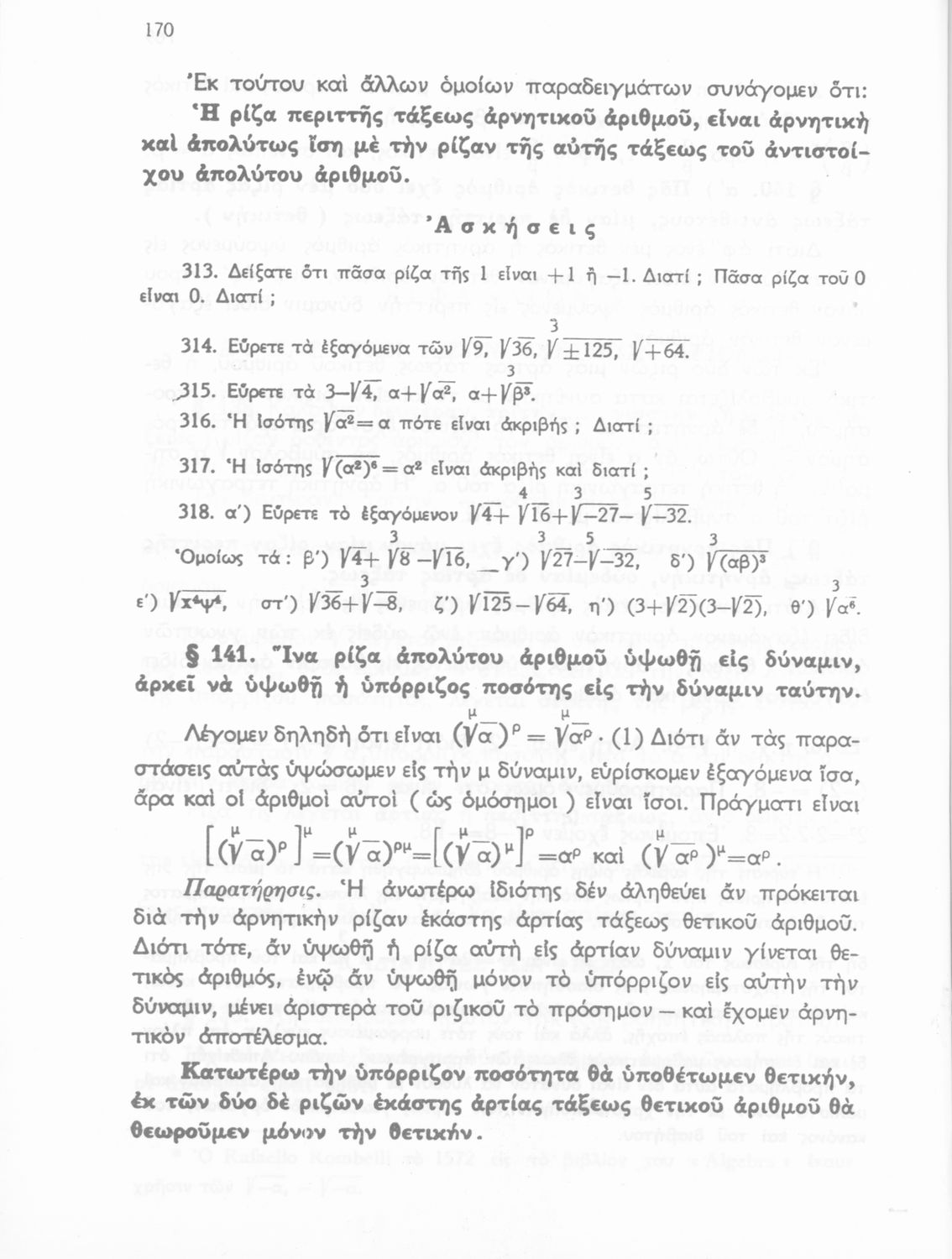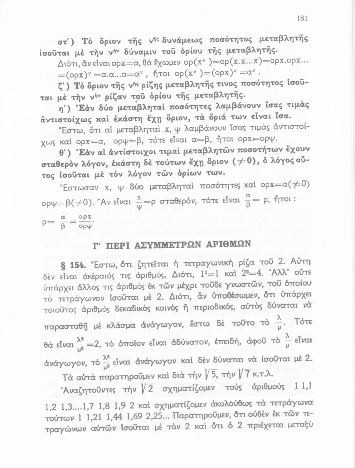 Σχολικό εγχειρίδιο Μαθηματικών Δ', Ε' και ΣΤ΄ τάξεων του Γυμνασίου που παρουσιάζει τις βασικές έννοιες της Άλγεβρας, εστιάζει τις ιδιότητες των αριθμών και περιέχει ασκήσεις εξισώσεων, λογαρίθμων και παραγώγων.