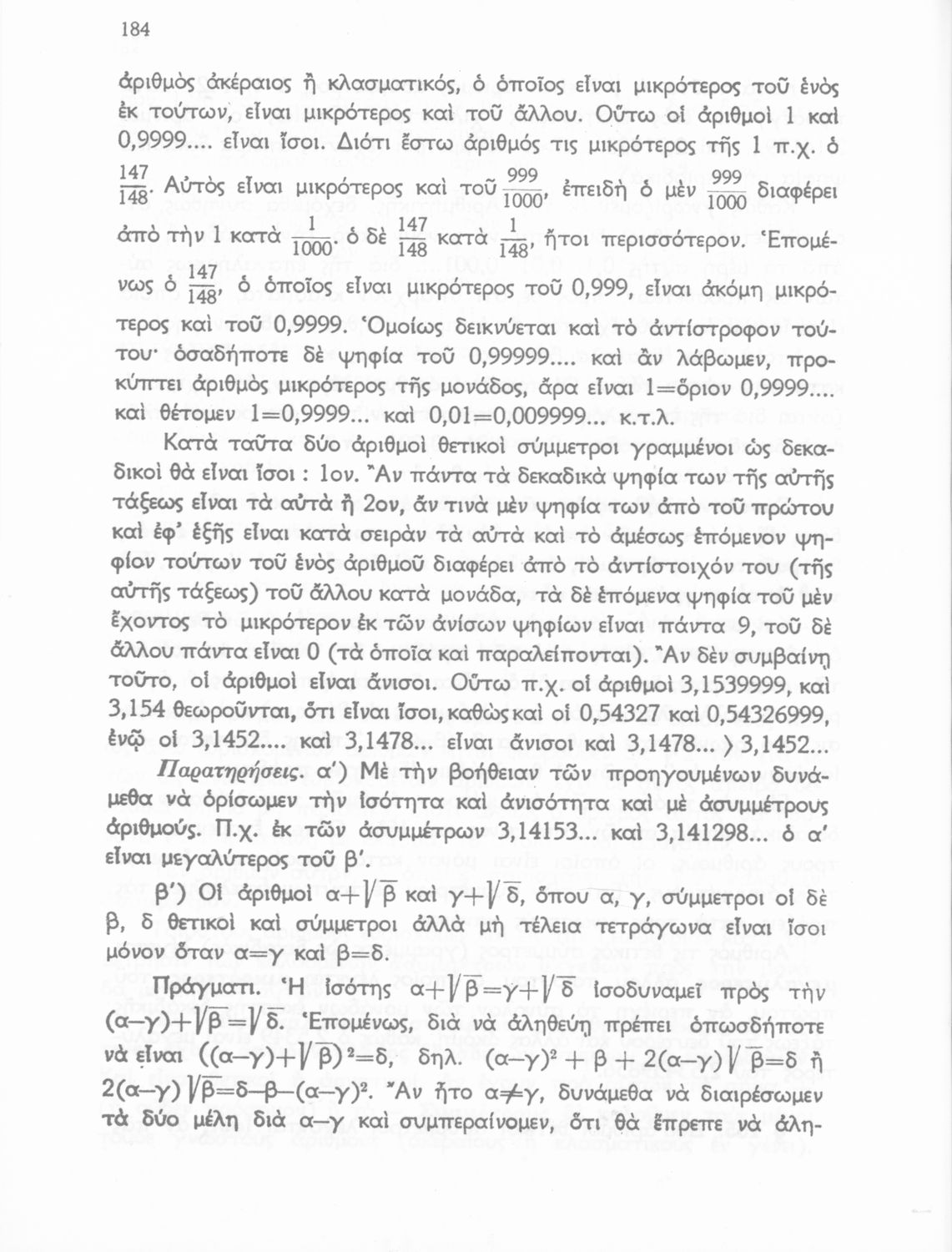 Σχολικό εγχειρίδιο Μαθηματικών Δ', Ε' και ΣΤ΄ τάξεων του Γυμνασίου που παρουσιάζει τις βασικές έννοιες της Άλγεβρας, εστιάζει τις ιδιότητες των αριθμών και περιέχει ασκήσεις εξισώσεων, λογαρίθμων και παραγώγων.