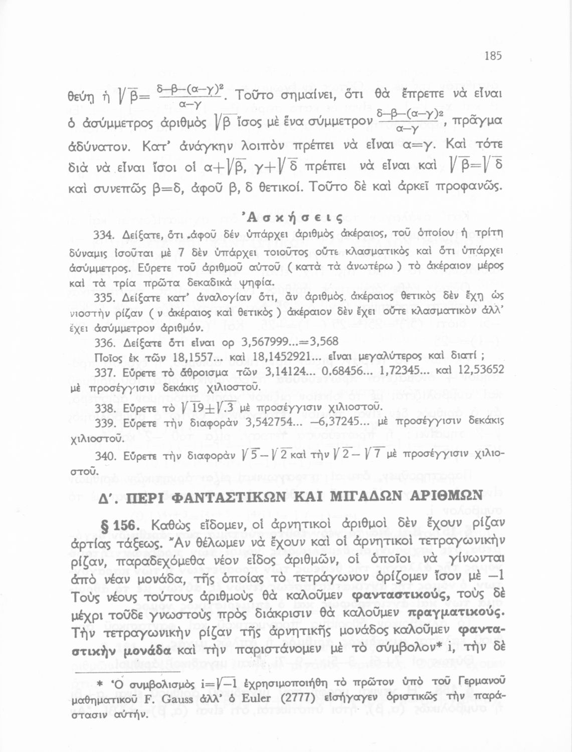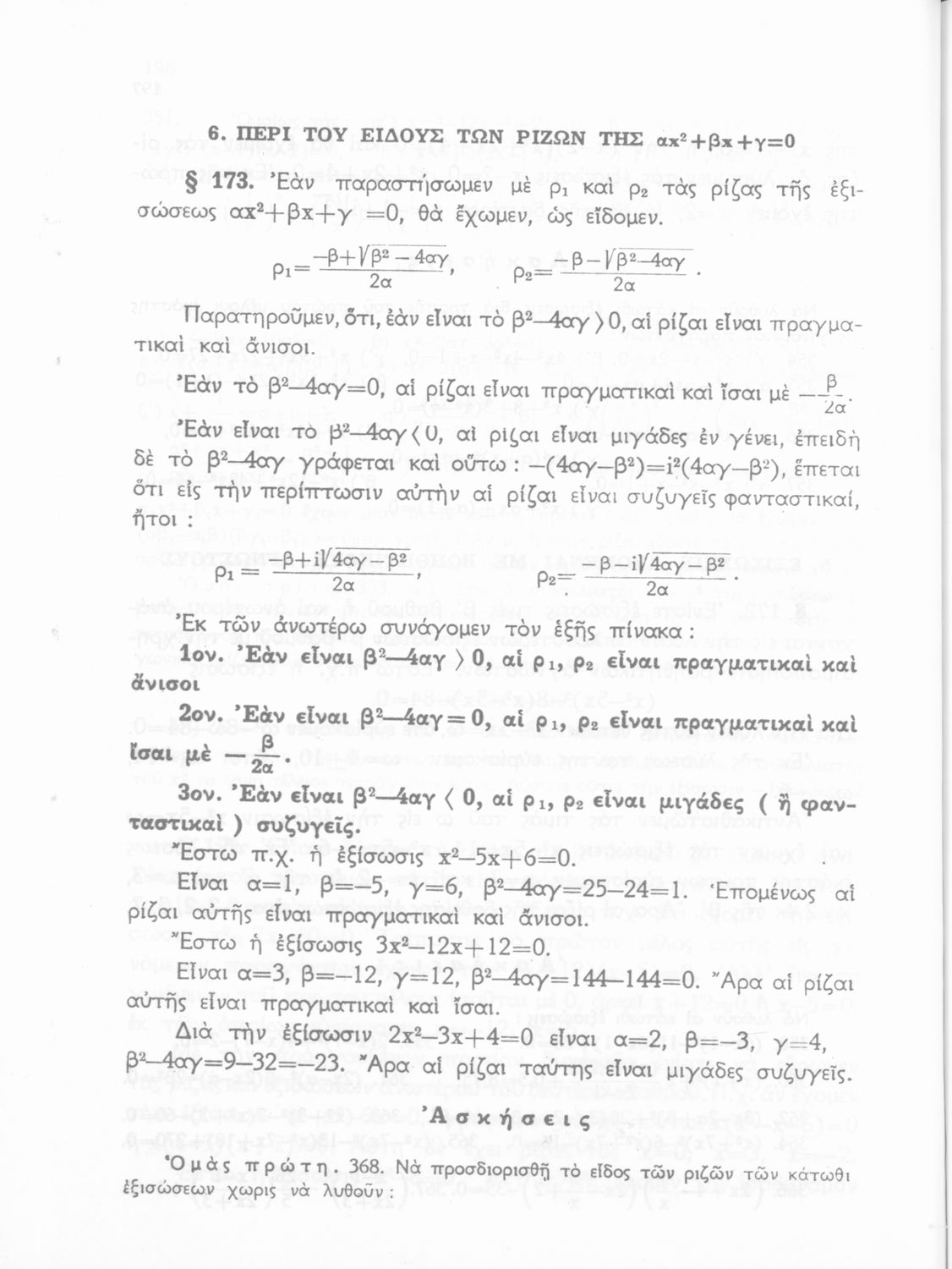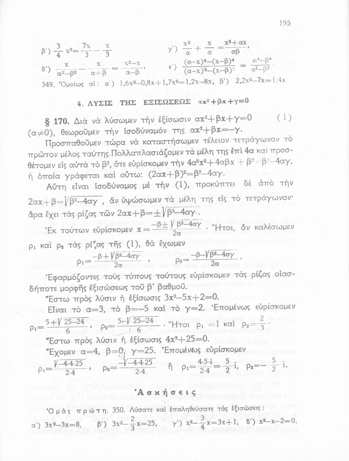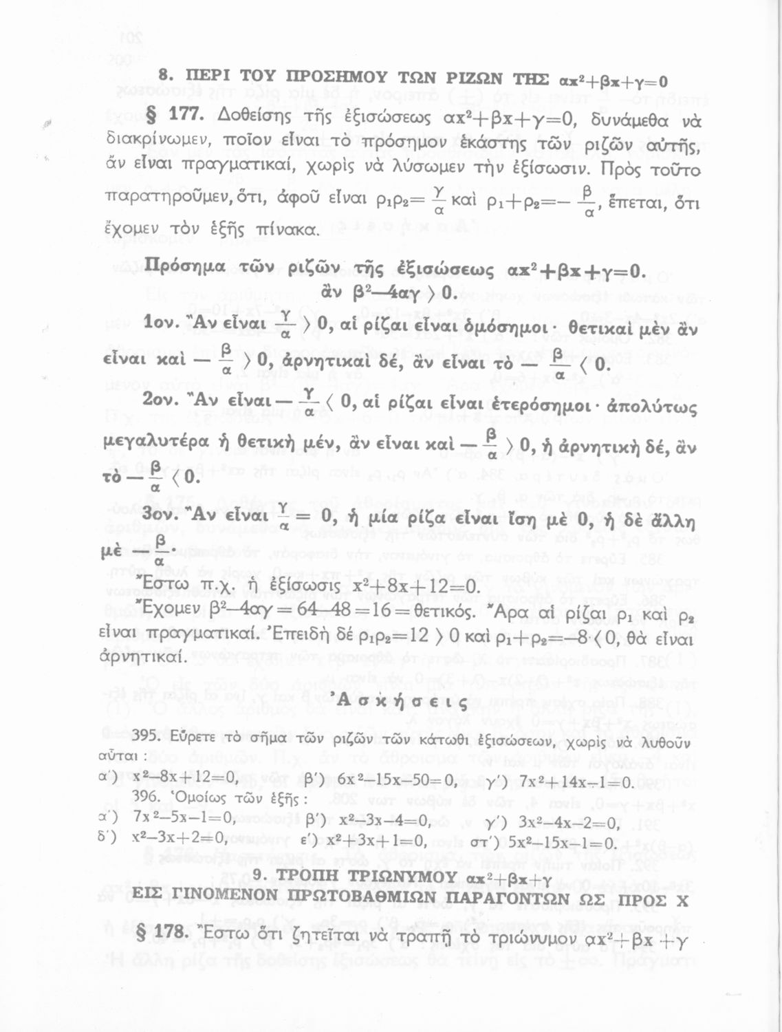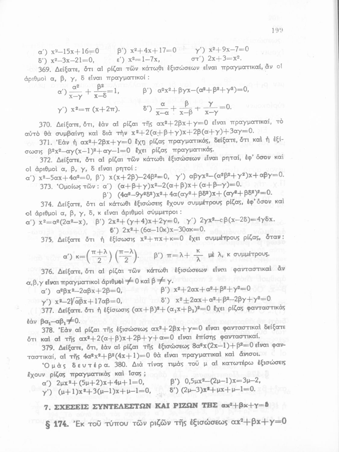 Παρουσίαση περιεχομένου: Σχολικό εγχειρίδιο Μαθηματικών Δ', Ε' και ΣΤ΄ τάξεων του Γυμνασίου που παρουσιάζει τις βασικές έννοιες της Άλγεβρας, εστιάζει τις ιδιότητες των αριθμών και περιέχει ασκήσεις εξισώσεων, λογαρίθμων και παραγώγων.