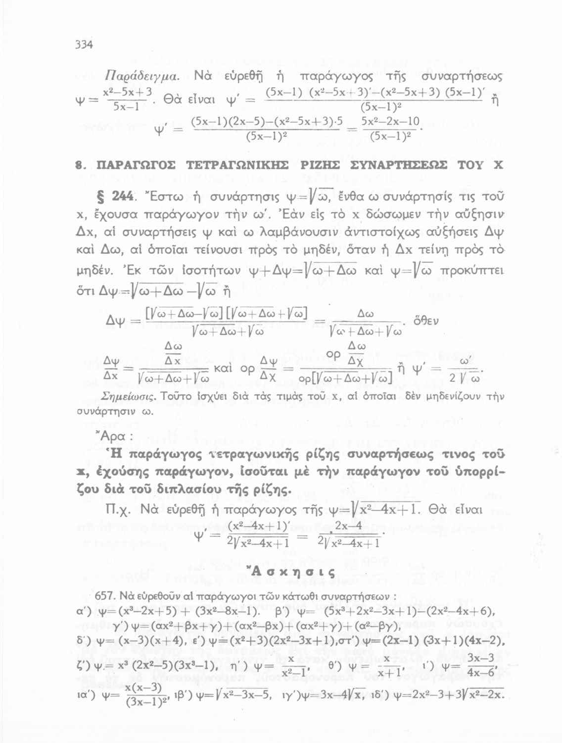Παρουσίαση περιεχομένου: Σχολικό εγχειρίδιο Μαθηματικών Δ', Ε' και ΣΤ΄ τάξεων του Γυμνασίου που παρουσιάζει τις βασικές έννοιες της Άλγεβρας, εστιάζει τις ιδιότητες των αριθμών και περιέχει ασκήσεις εξισώσεων, λογαρίθμων και παραγώγων.