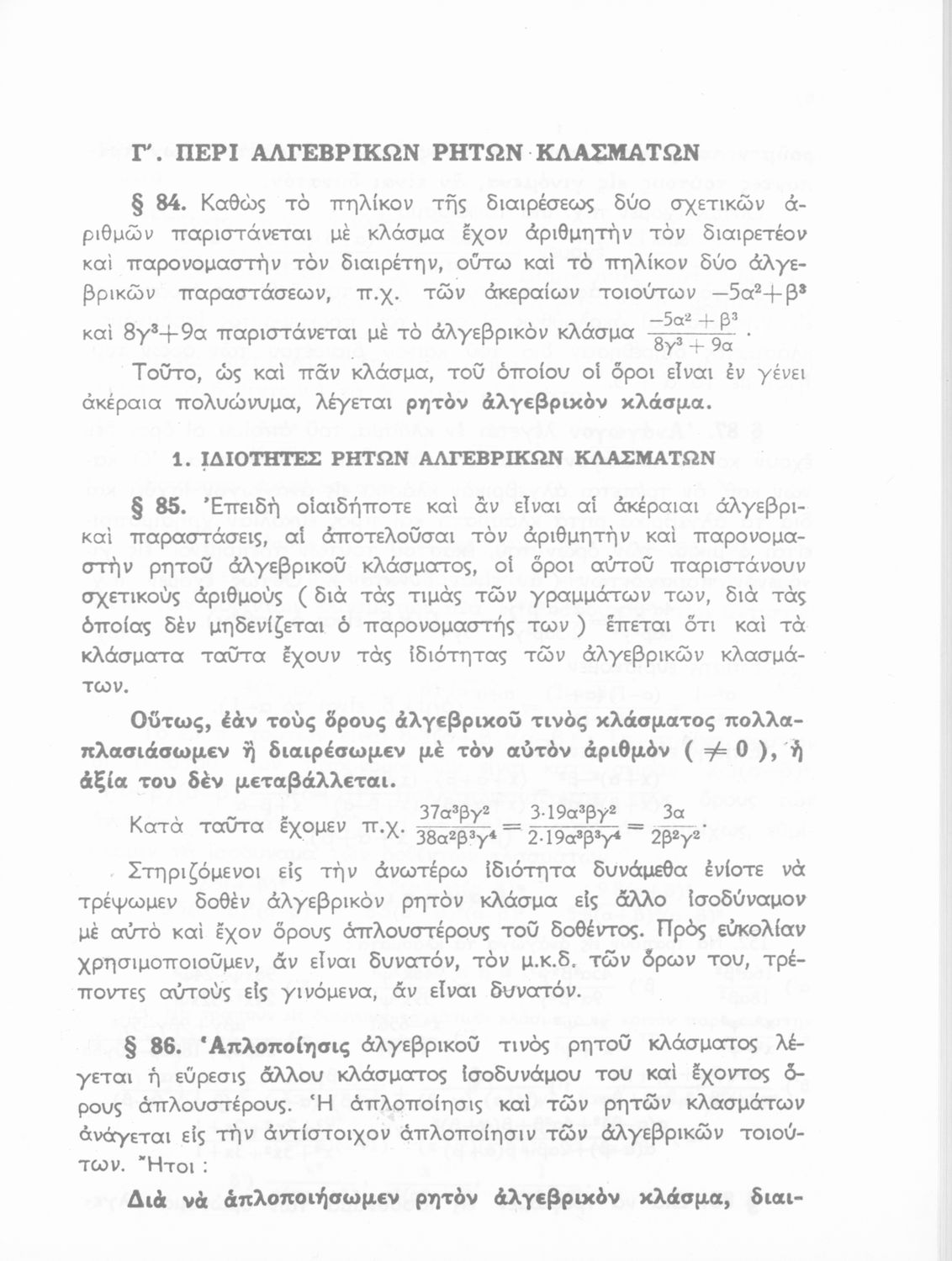 Παρουσίαση περιεχομένου: Σχολικό εγχειρίδιο Μαθηματικών Δ', Ε' και ΣΤ΄ τάξεων του Γυμνασίου που παρουσιάζει τις βασικές έννοιες της Άλγεβρας, εστιάζει τις ιδιότητες των αριθμών και περιέχει ασκήσεις εξισώσεων, λογαρίθμων και παραγώγων.