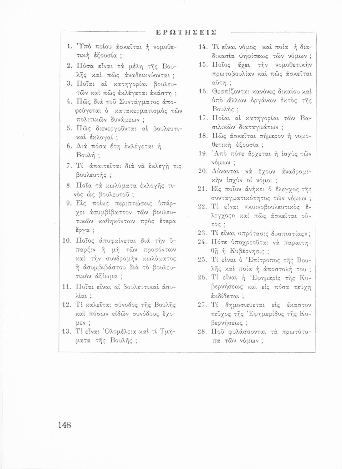 Σχολικό εγχειρίδιο της Γ΄ Γυμνασίου για το μάθημα της Πολιτικής Αγωγής. Αναφέρεται στις γενικές έννοιες του δικαίου, τις μορφές των πολιτευμάτων, τους θεσμούς, το διαχωρισμό των εξουσιών. Συνεχίζει με τη διοίκηση και τις εξουσίες στο Ελληνικό Κράτος. Έπειτα παρουσιάζει τα οικονομικά του κράτους και τους διάφορους τομείς της κοινωνικής ζωής. Αναφέρει την απειλή του Κομμουνισμού και επισημαίνει τα εθνικά σύμβολα. Τέλος γίνεται αναφορά στους Διεθνείς Οργανισμούς. Σκοπός του μαθήματος είναι να αποκτήσουν οι μαθητές ως πολίτες ειδικές αναμορφωμένες στα κοινά γνώσεις, καθώς και την καλλιέργειά της εθνικής συνείδησής.