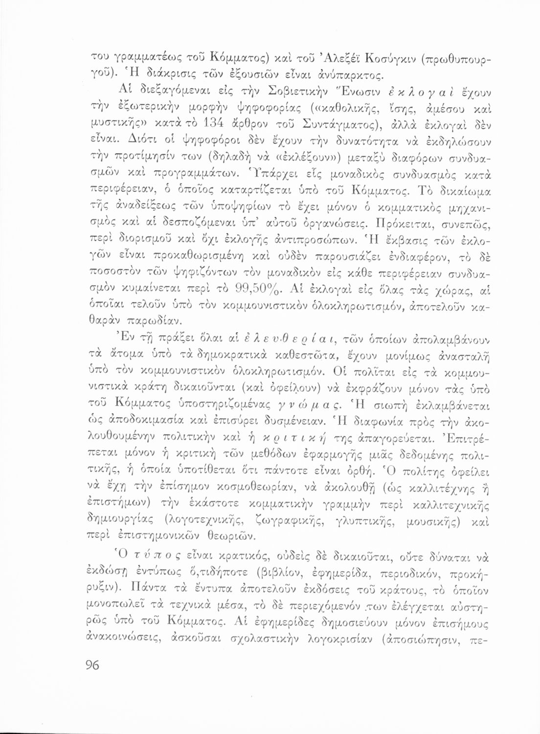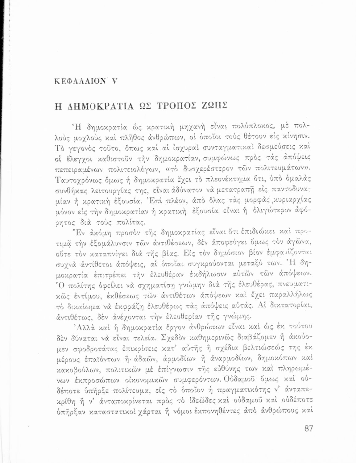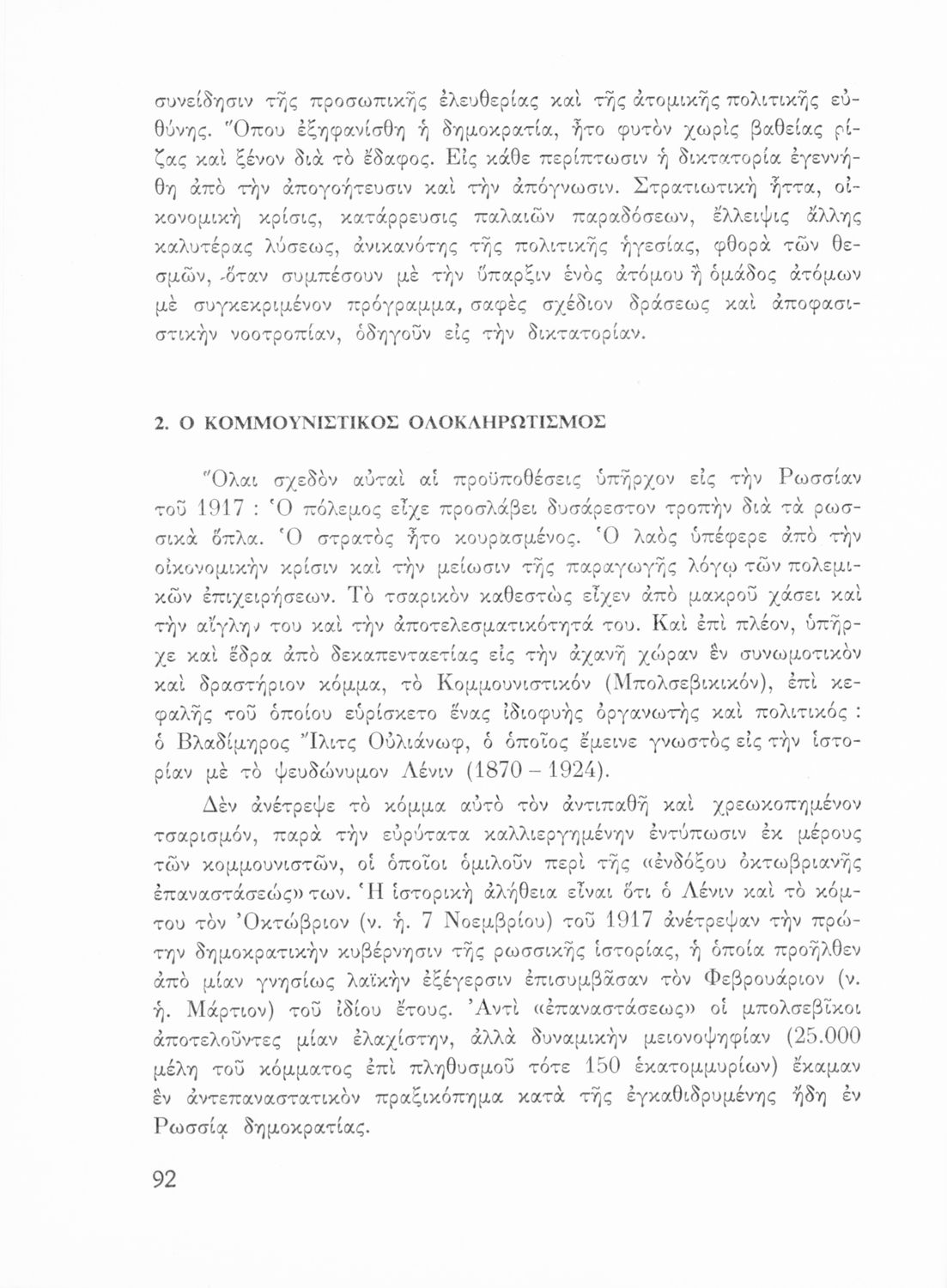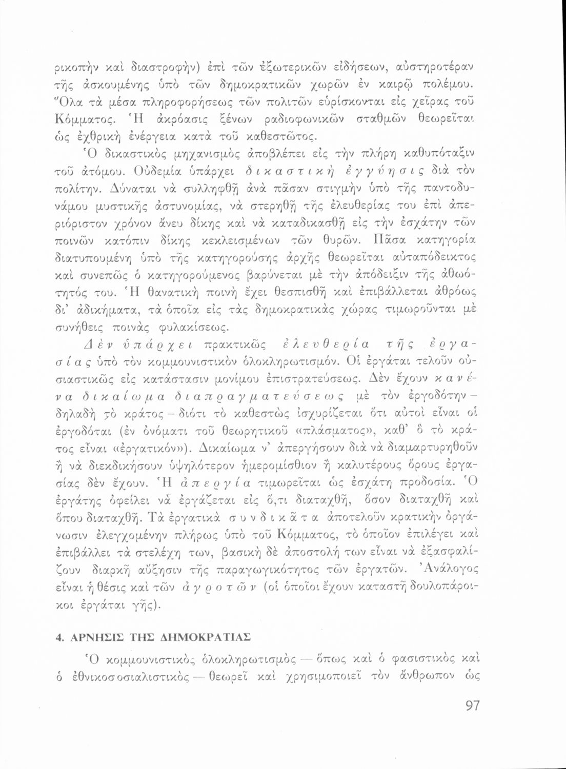 Σχολικό εγχειρίδιο της Γ΄ Γυμνασίου για το μάθημα της Πολιτικής Αγωγής. Αναφέρεται στις γενικές έννοιες του δικαίου, τις μορφές των πολιτευμάτων, τους θεσμούς, το διαχωρισμό των εξουσιών. Συνεχίζει με τη διοίκηση και τις εξουσίες στο Ελληνικό Κράτος. Έπειτα παρουσιάζει τα οικονομικά του κράτους και τους διάφορους τομείς της κοινωνικής ζωής. Αναφέρει την απειλή του Κομμουνισμού και επισημαίνει τα εθνικά σύμβολα. Τέλος γίνεται αναφορά στους Διεθνείς Οργανισμούς. Σκοπός του μαθήματος είναι να αποκτήσουν οι μαθητές ως πολίτες ειδικές αναμορφωμένες στα κοινά γνώσεις, καθώς και την καλλιέργειά της εθνικής συνείδησής.