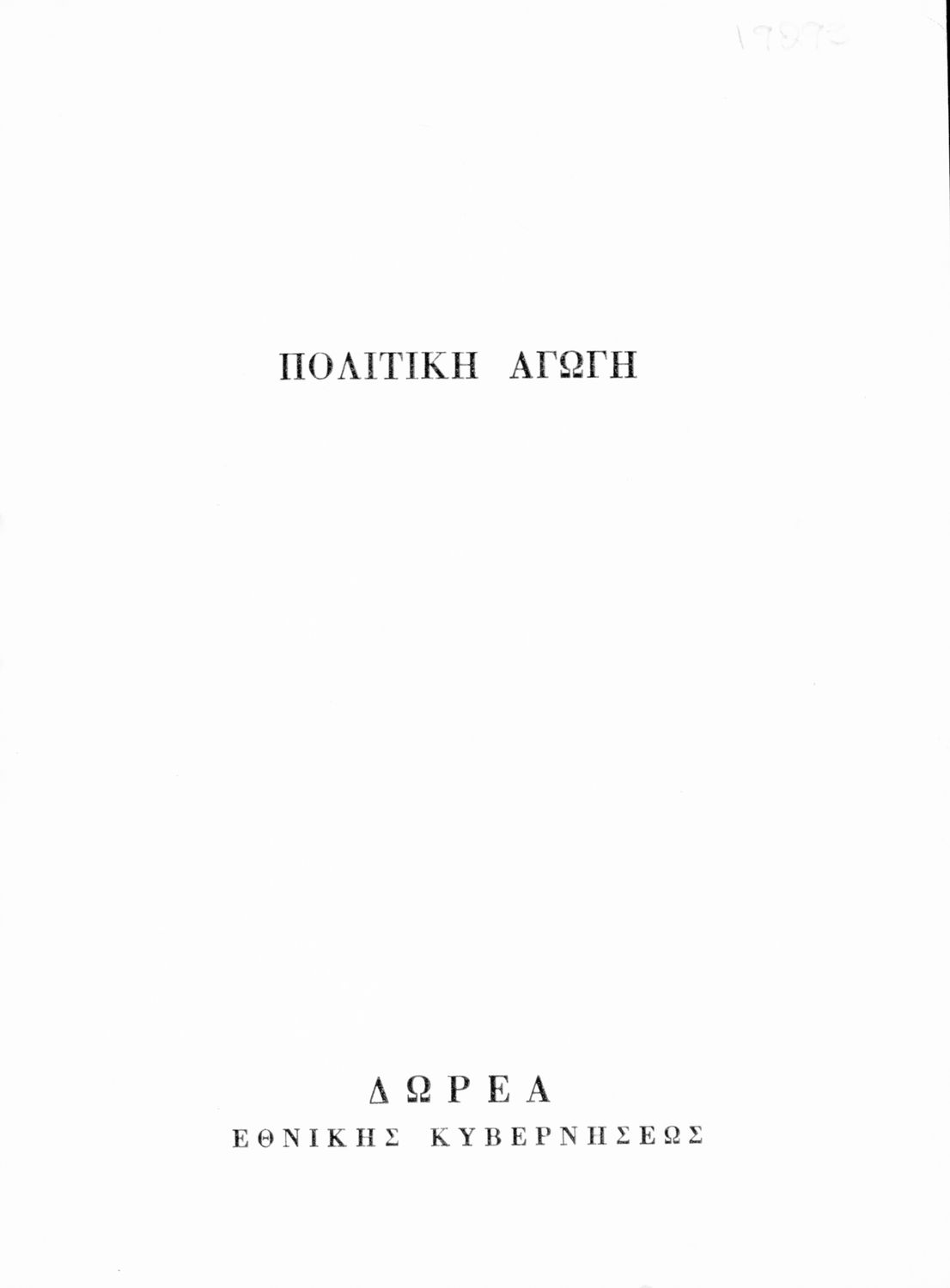 Κωδικός αναγνώρισης: 01-19293 Τίτλος: Πολιτική Αγωγή. Δια τας Γ΄ Τάξιν του Γυμνασίου Συγγραφέας: Θεοφ. Παπακωνσταντίνου Μέγεθος και υπόστρωμα: Σχολικό εγχειρίδιο, 346 σελίδες. Εικόνες (έγχρωμες). |