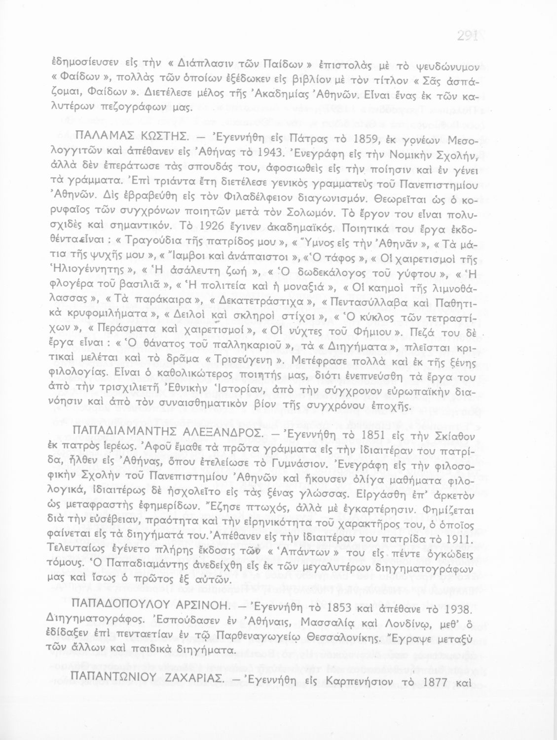 Σχετιζόμενοι όροι:  Βάμβας, Κοραής, Παλαμάς, Παπαδιαμάντης