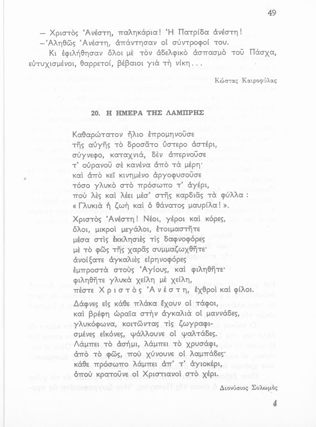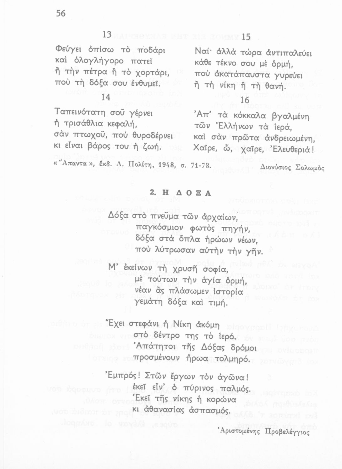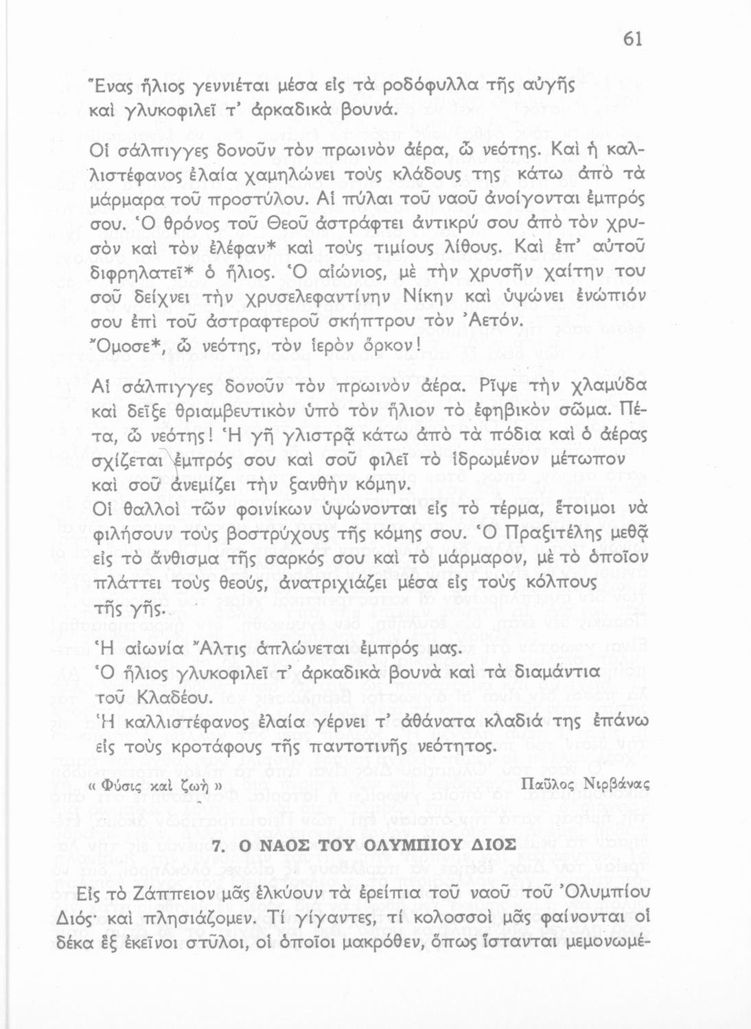 Σχολικό εγχειρίδιο Νέων Ελληνικών Β' Γυμνασίου που περιέχει ποιήματα και πεζά Ελλήνων συγγραφέων εμπνευσμένα από τη θρησκευτική, εθνική, οικογενειακή και κοινωνική ζωή και την ελληνική φύση. Περιέχει παράρτημα με βιογραφίες των συγγραφέων και λεξιλόγιο.