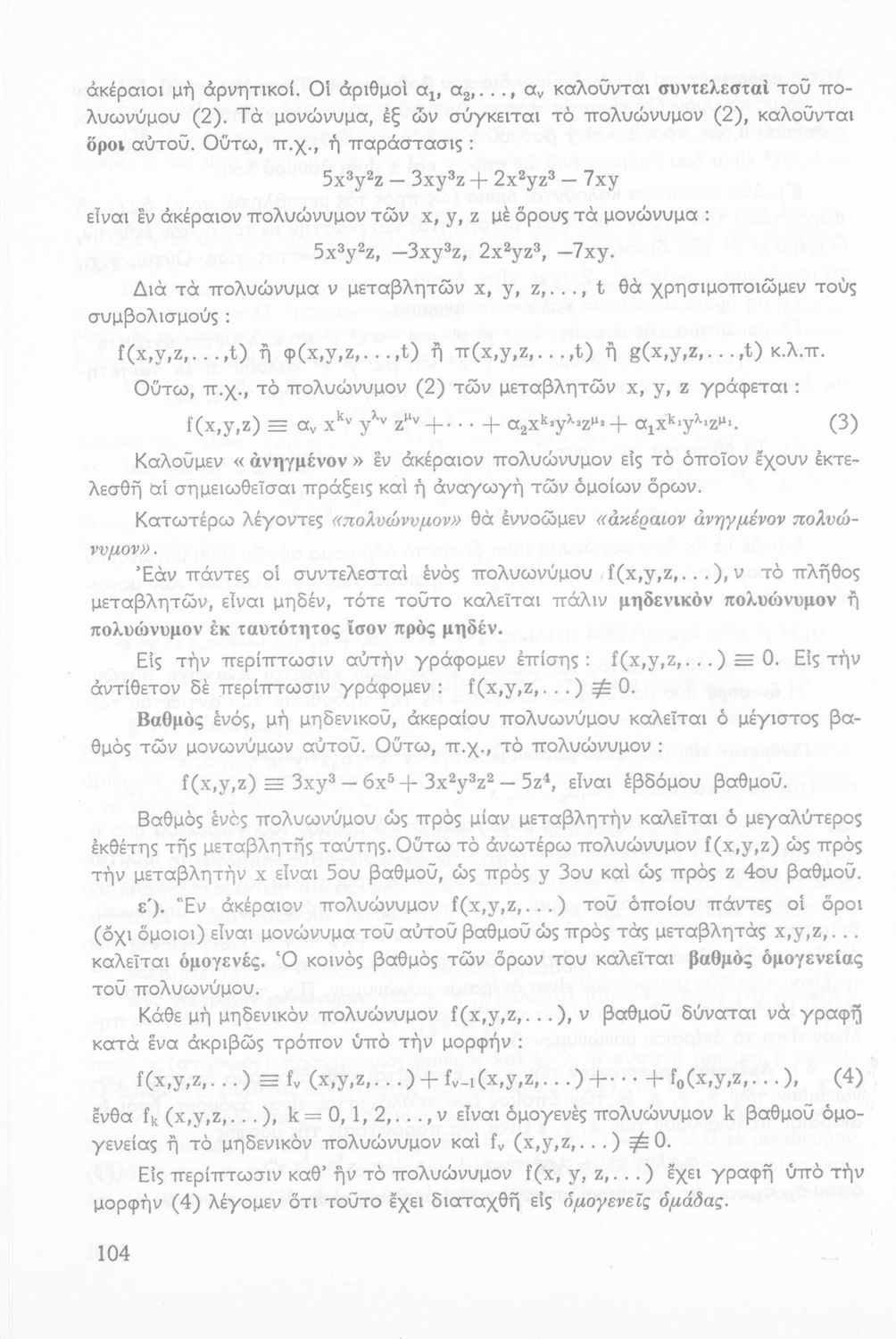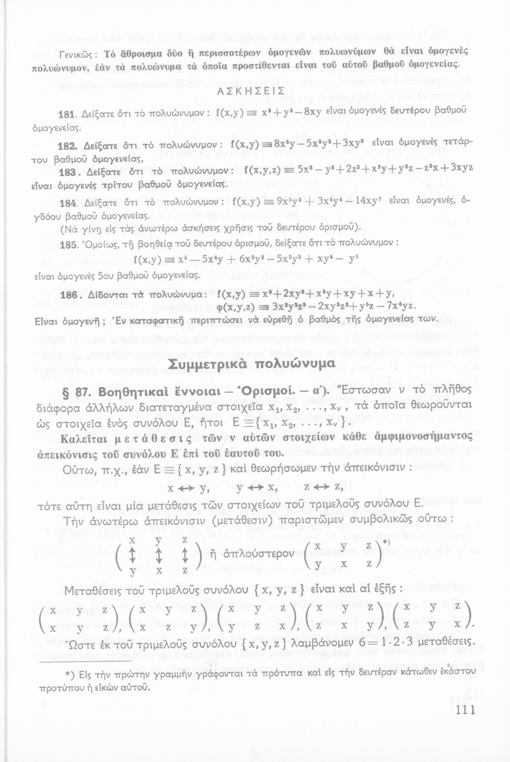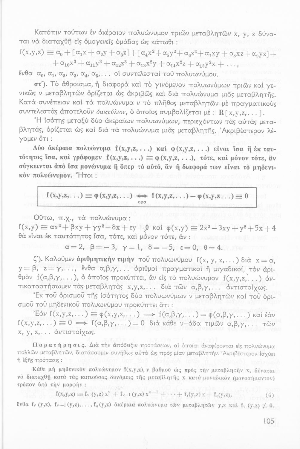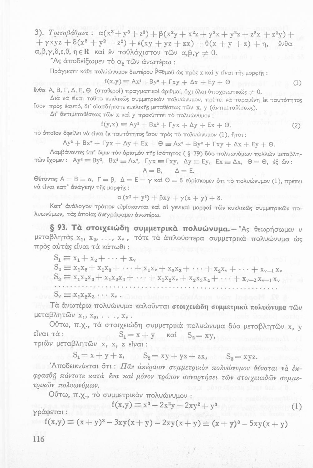 Σχολικό εγχειρίδιο Μαθηματικών Γυμνασίου που είναι χωρισμένο σε θεωρήματα, παραδείγματα και ασκήσεις και περιλαμβάνει στοιχεία Ανώτερης Άλγεβρας και Μαθηματικής Ανάλυσης.