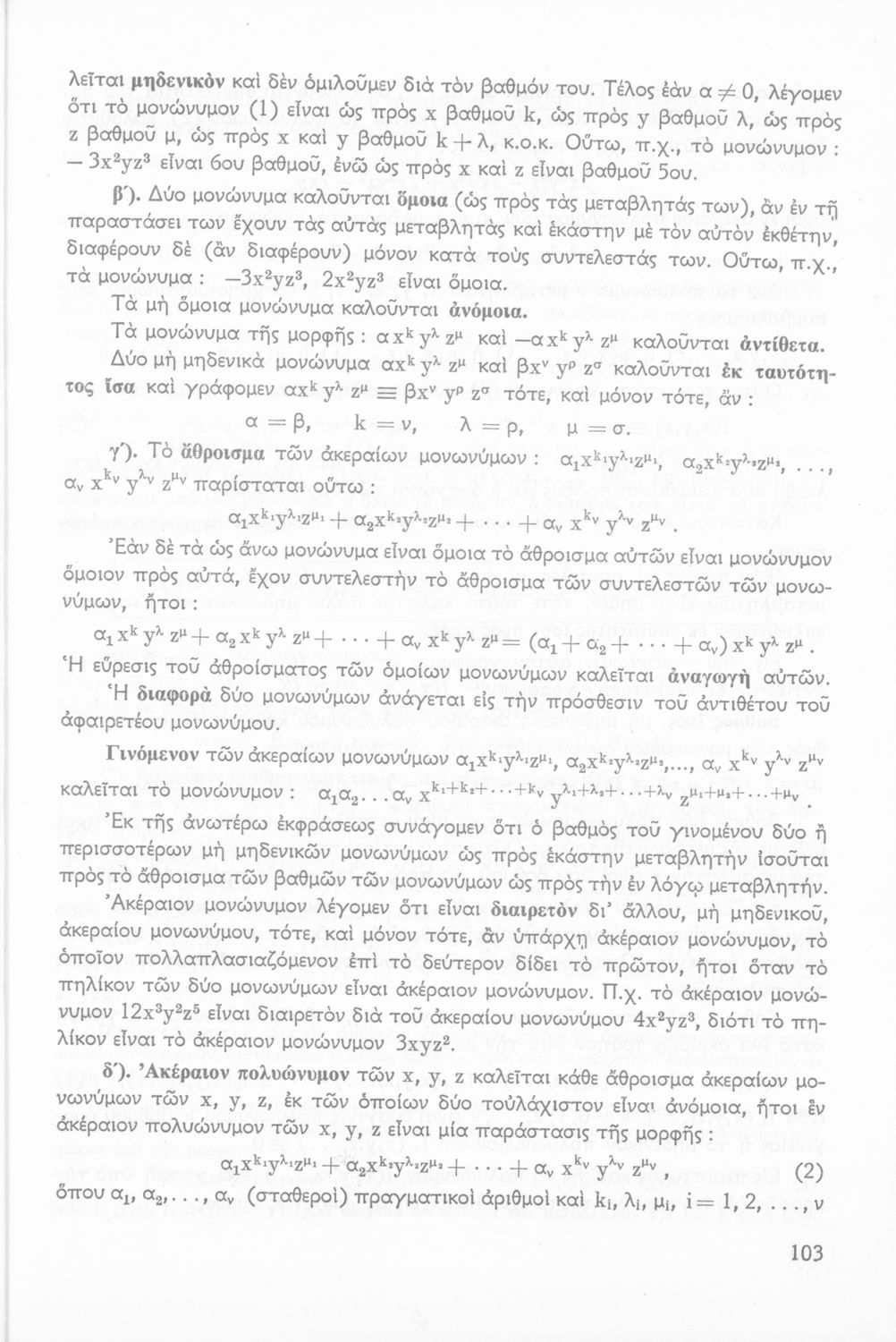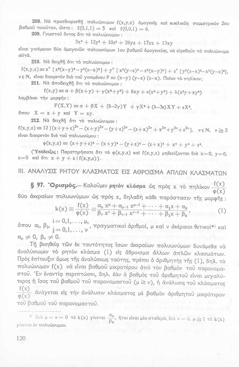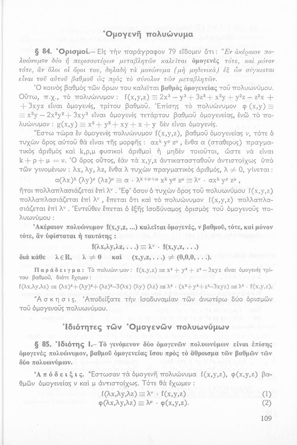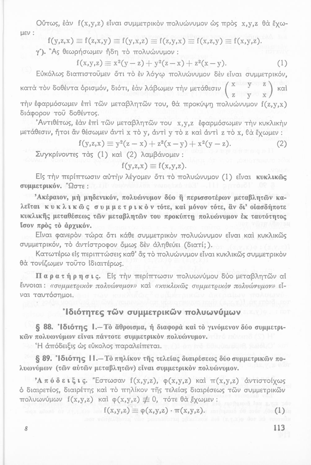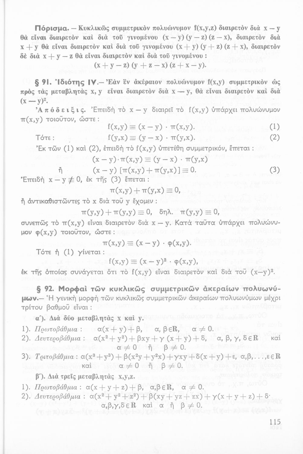 Σχολικό εγχειρίδιο Μαθηματικών Γυμνασίου που είναι χωρισμένο σε θεωρήματα, παραδείγματα και ασκήσεις και περιλαμβάνει στοιχεία Ανώτερης Άλγεβρας και Μαθηματικής Ανάλυσης.