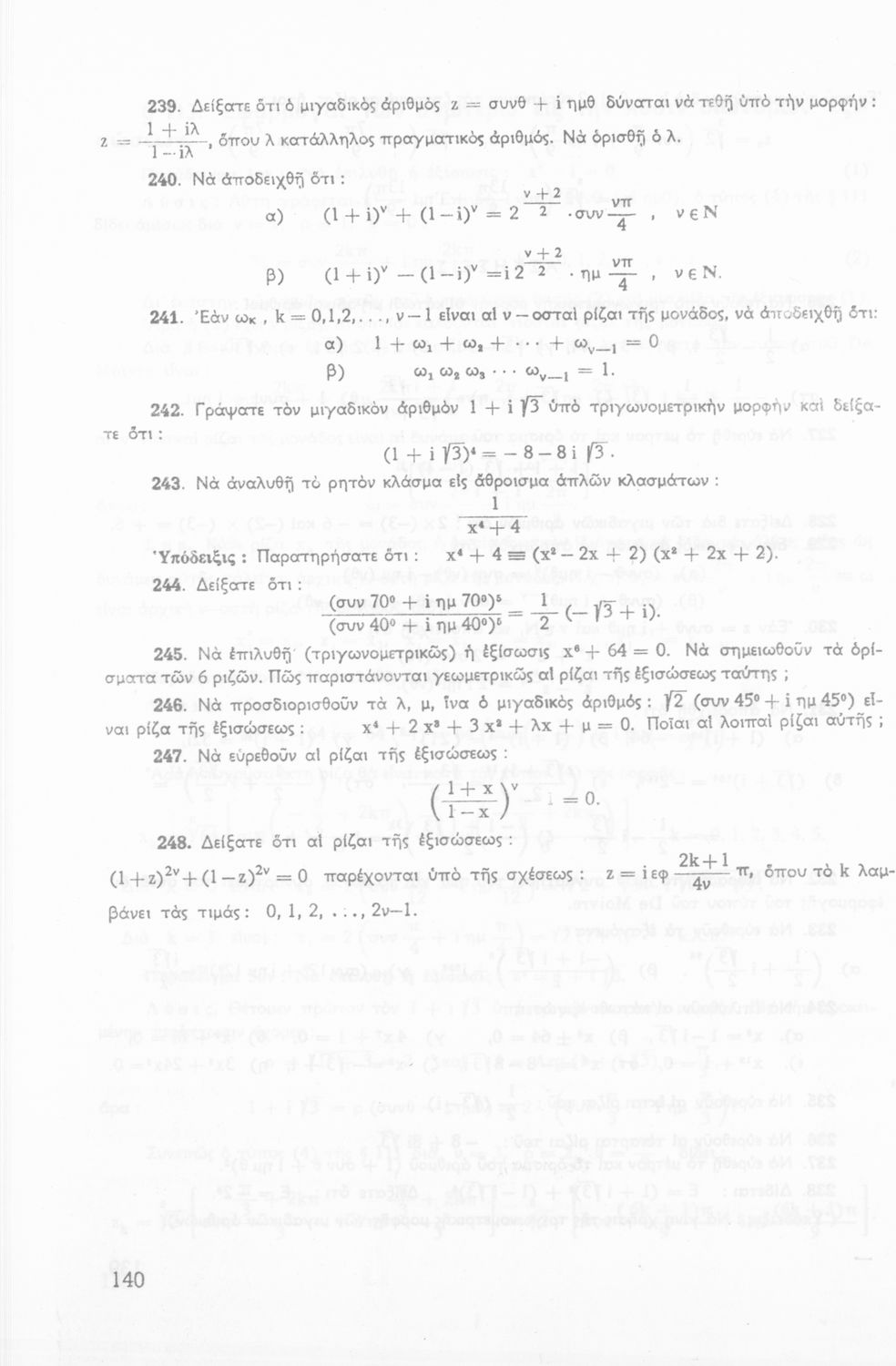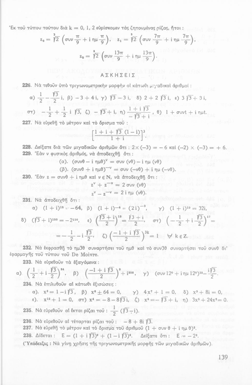 Σχολικό εγχειρίδιο Μαθηματικών Γυμνασίου που είναι χωρισμένο σε θεωρήματα, παραδείγματα και ασκήσεις και περιλαμβάνει στοιχεία Ανώτερης Άλγεβρας και Μαθηματικής Ανάλυσης.