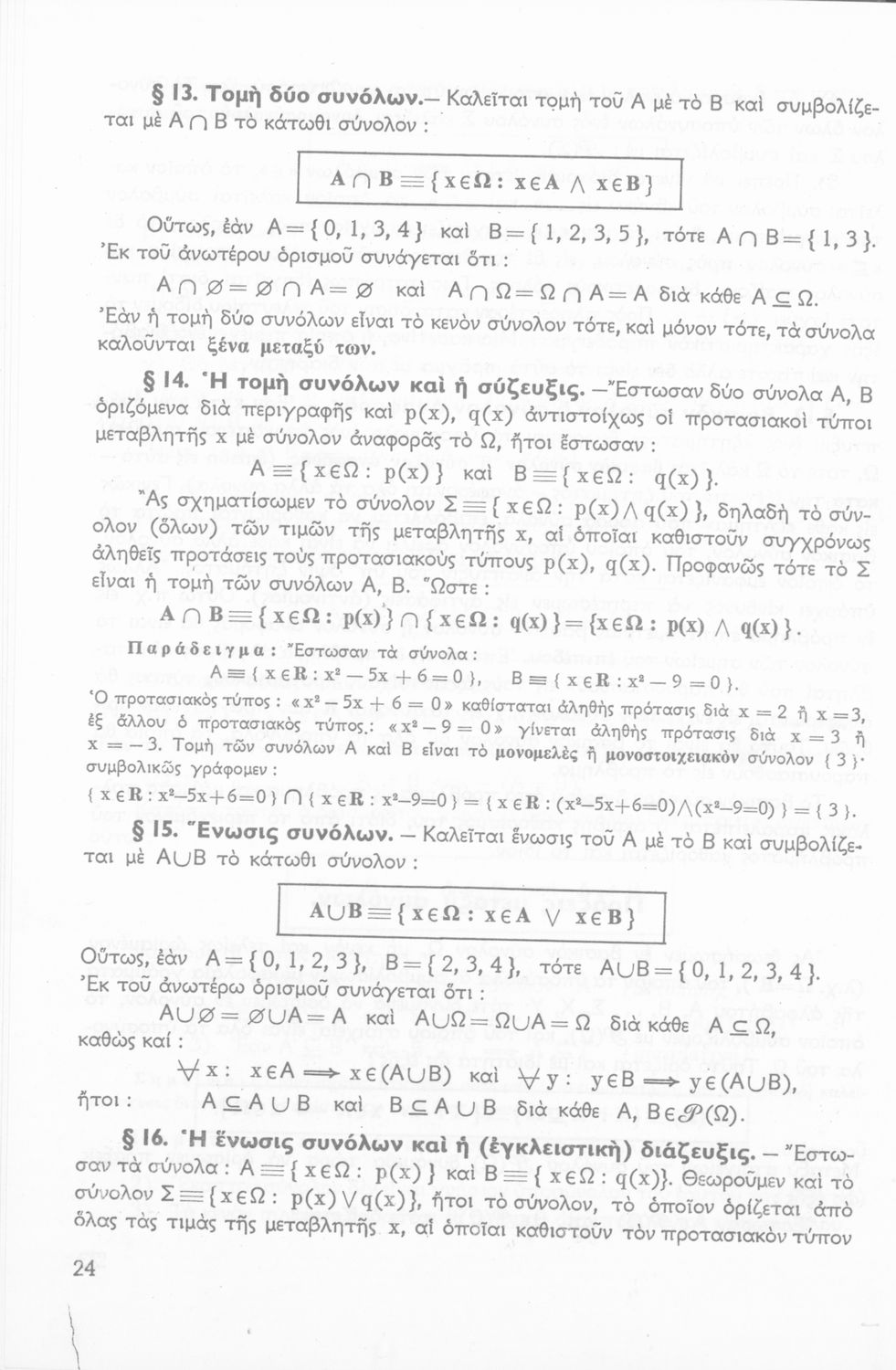 Σχολικό εγχειρίδιο Μαθηματικών ΣΤ΄ Γυμνασίου που είναι χωρισμένο σε θεωρήματα, παραδείγματα και ασκήσεις και περιλαμβάνει στοιχεία Ανώτερης Άλγεβρας και Μαθηματικής Ανάλυσης.