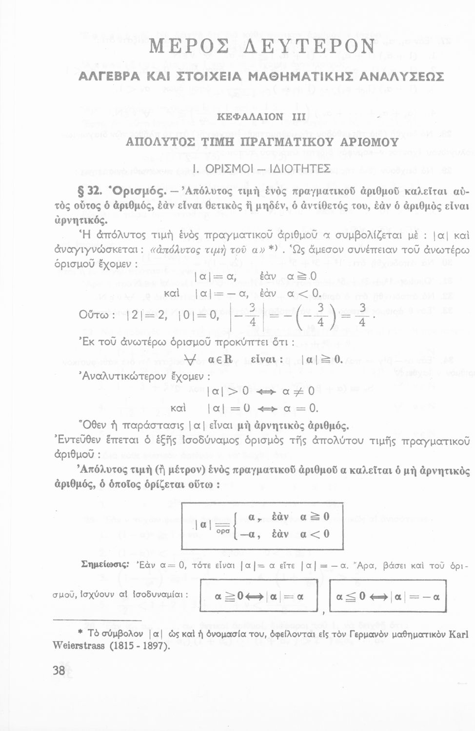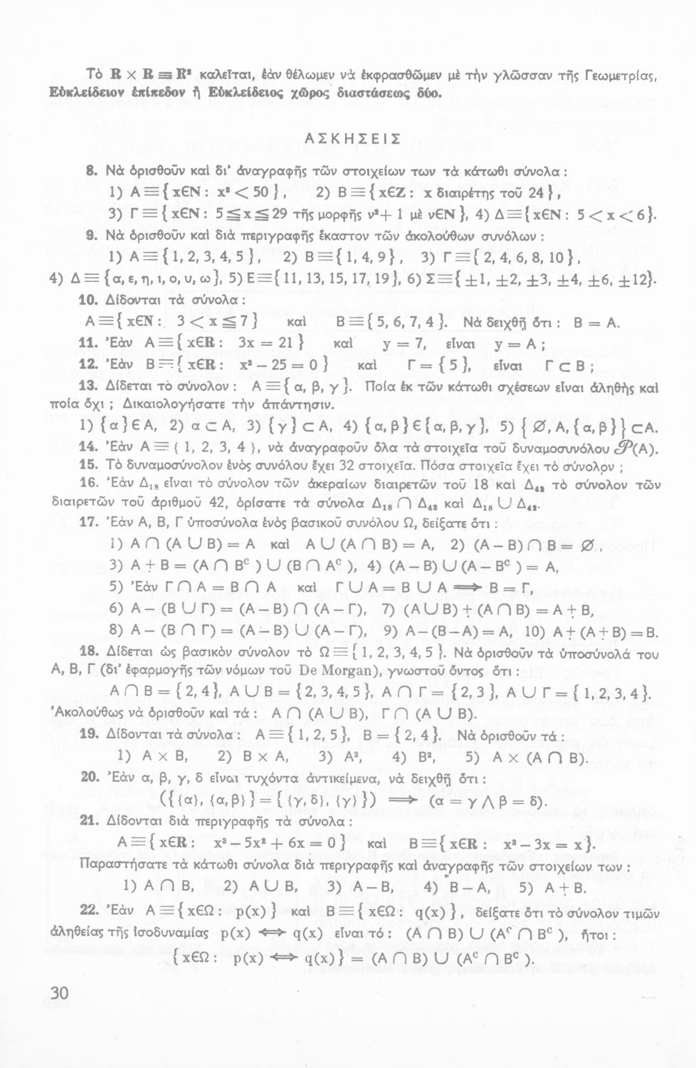 Σχολικό εγχειρίδιο Μαθηματικών Γυμνασίου που είναι χωρισμένο σε θεωρήματα, παραδείγματα και ασκήσεις και περιλαμβάνει στοιχεία Ανώτερης Άλγεβρας και Μαθηματικής Ανάλυσης.