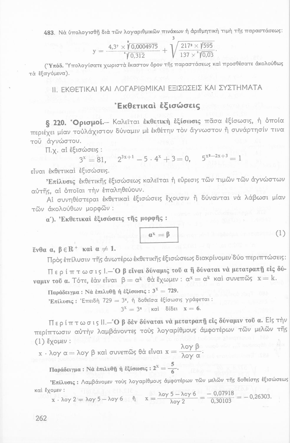 Σχολικό εγχειρίδιο Μαθηματικών ΣΤ΄ Γυμνασίου που είναι χωρισμένο σε θεωρήματα, παραδείγματα και ασκήσεις και περιλαμβάνει στοιχεία Ανώτερης Άλγεβρας και Μαθηματικής Ανάλυσης.