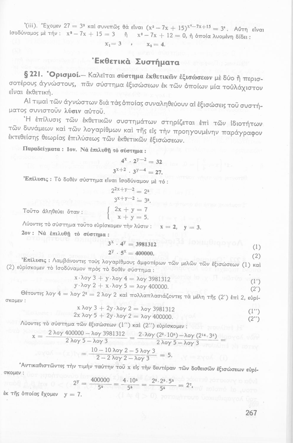 Σχολικό εγχειρίδιο Μαθηματικών Γυμνασίου που είναι χωρισμένο σε θεωρήματα, παραδείγματα και ασκήσεις και περιλαμβάνει στοιχεία Ανώτερης Άλγεβρας και Μαθηματικής Ανάλυσης.