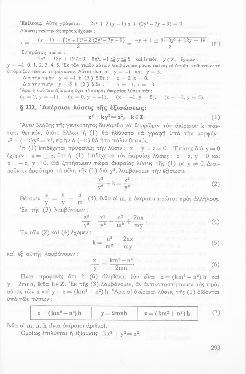 Σχολικό εγχειρίδιο Μαθηματικών ΣΤ΄ Γυμνασίου που είναι χωρισμένο σε θεωρήματα, παραδείγματα και ασκήσεις και περιλαμβάνει στοιχεία Ανώτερης Άλγεβρας και Μαθηματικής Ανάλυσης.