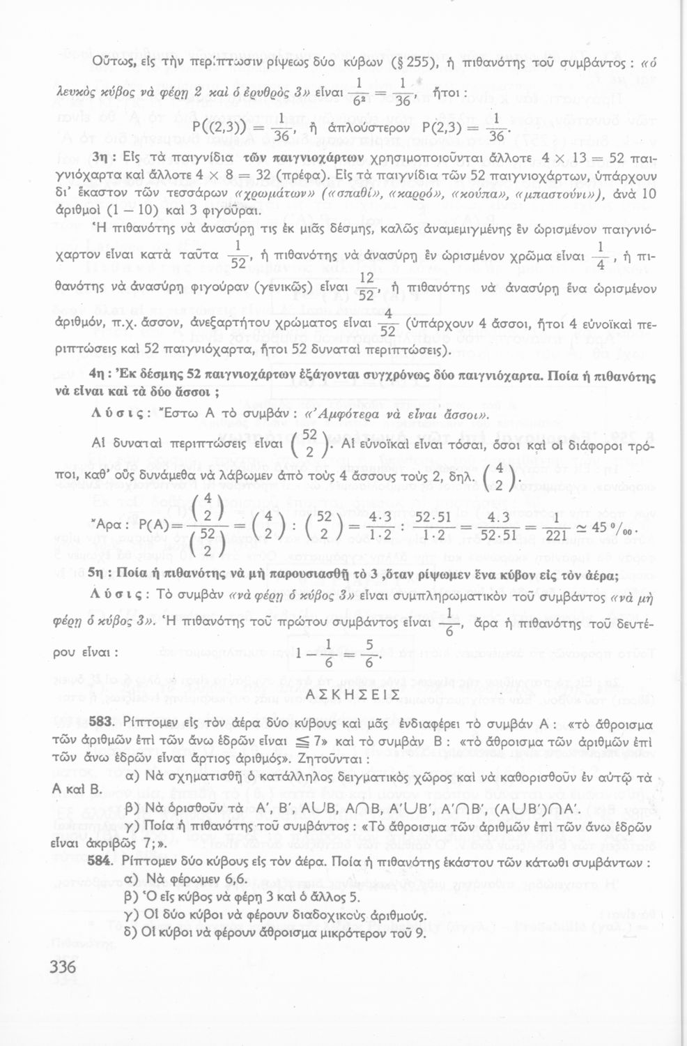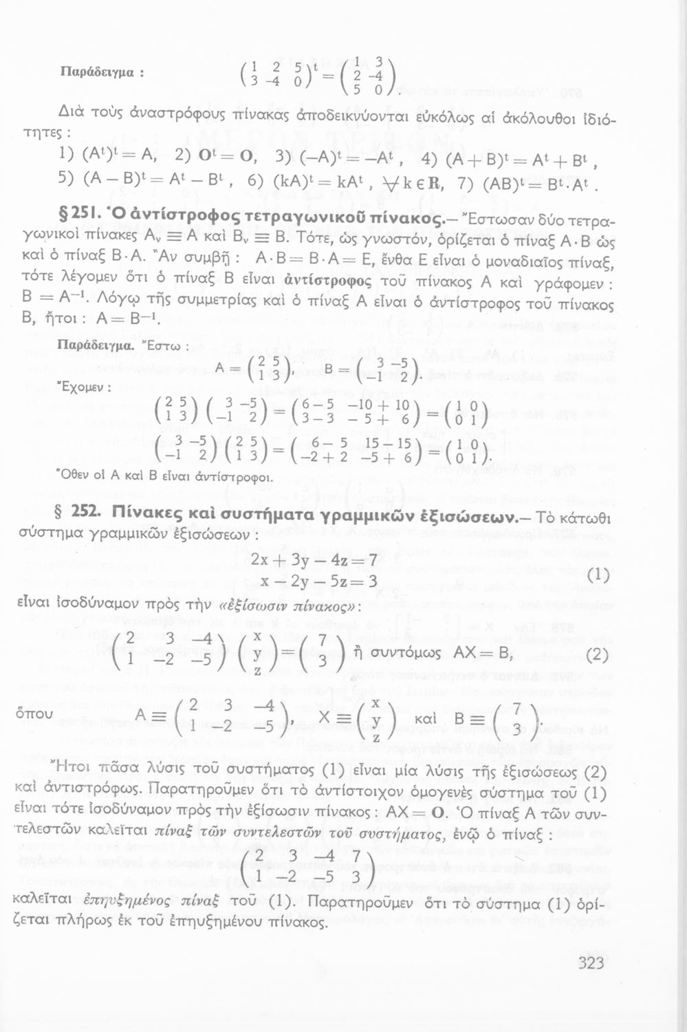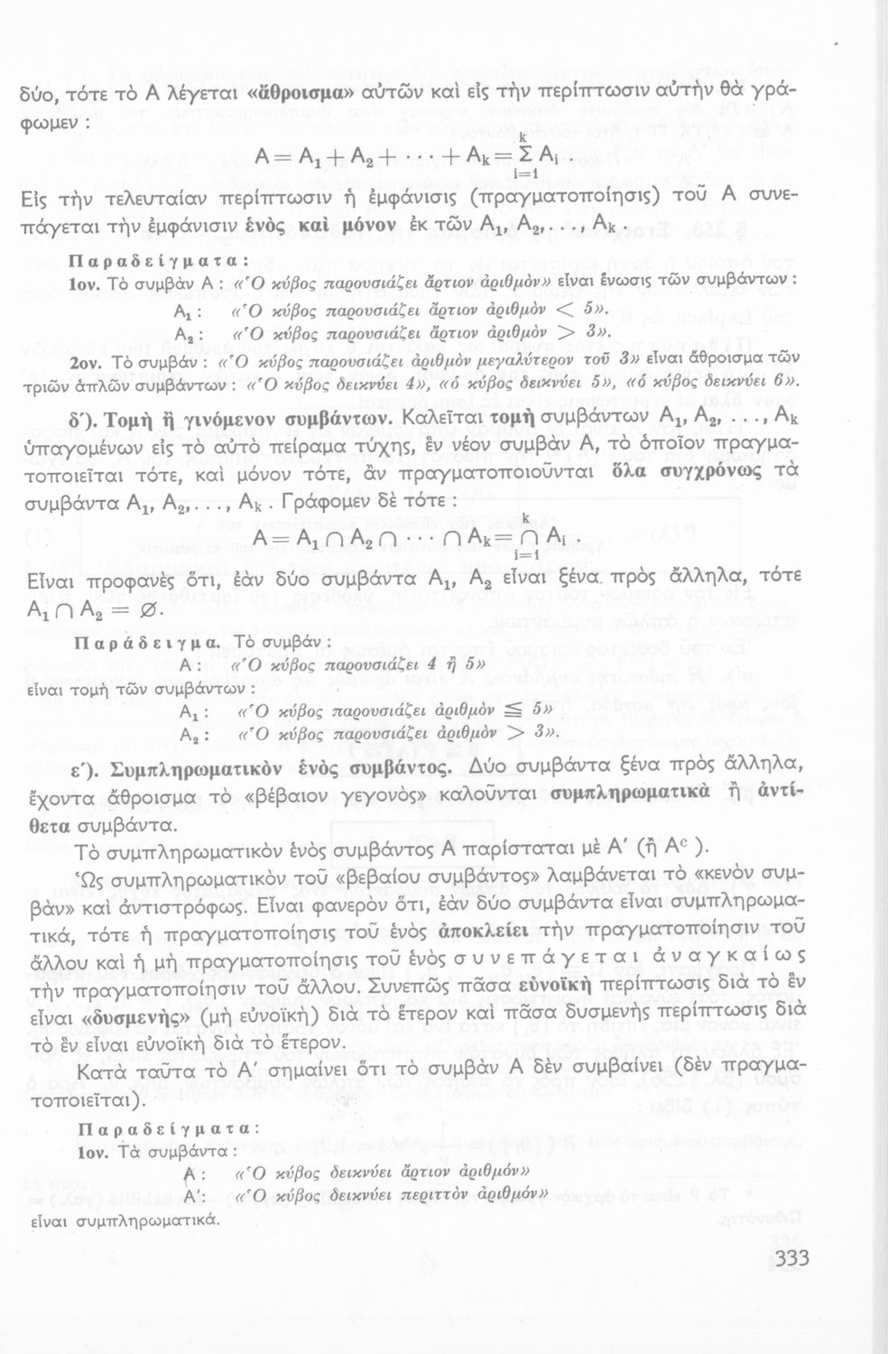 Σχολικό εγχειρίδιο Μαθηματικών ΣΤ΄ Γυμνασίου που είναι χωρισμένο σε θεωρήματα, παραδείγματα και ασκήσεις και περιλαμβάνει στοιχεία Ανώτερης Άλγεβρας και Μαθηματικής Ανάλυσης.