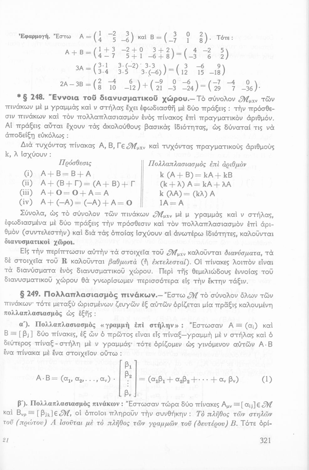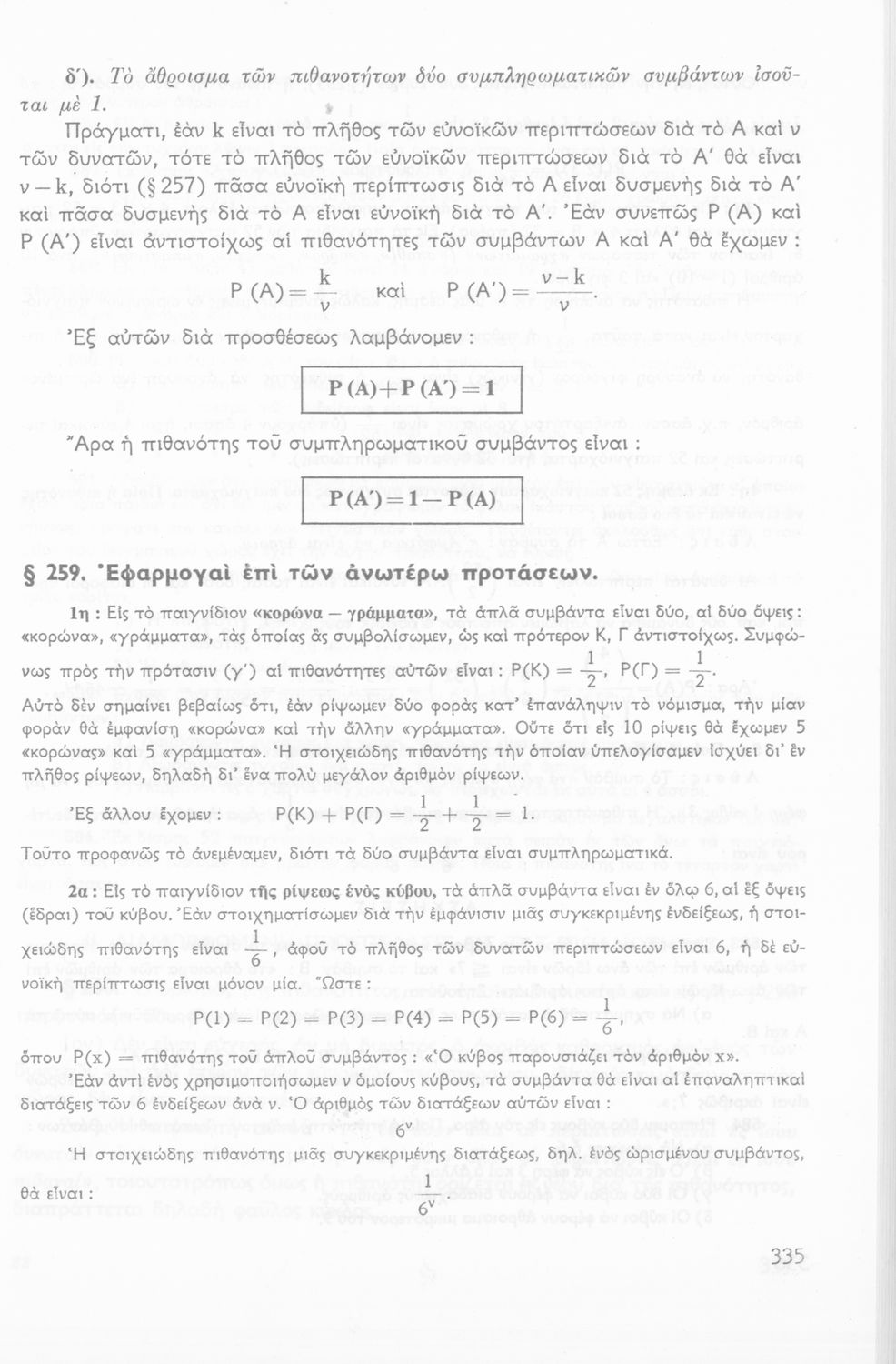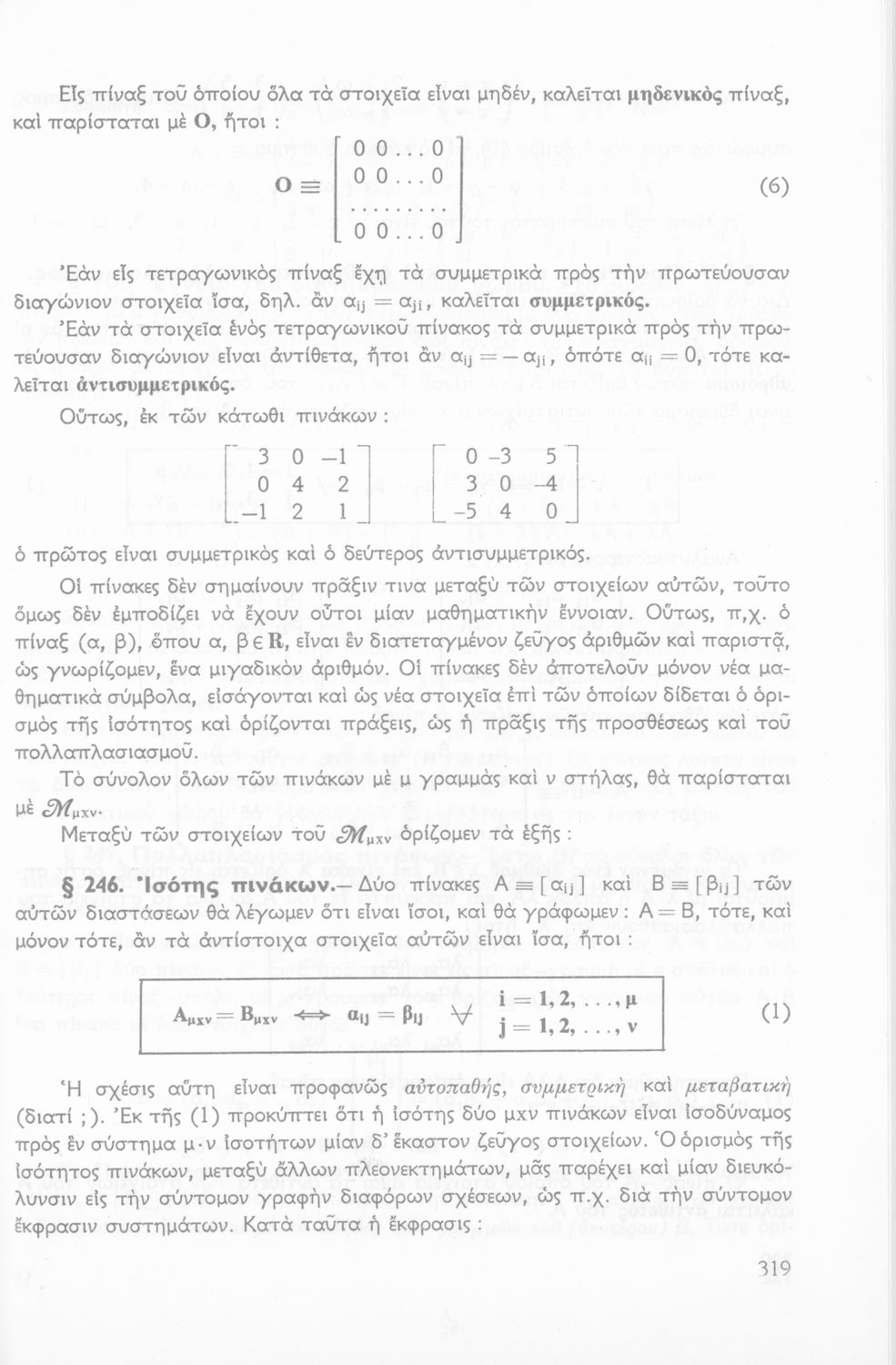 Σχολικό εγχειρίδιο Μαθηματικών ΣΤ΄ Γυμνασίου που είναι χωρισμένο σε θεωρήματα, παραδείγματα και ασκήσεις και περιλαμβάνει στοιχεία Ανώτερης Άλγεβρας και Μαθηματικής Ανάλυσης.