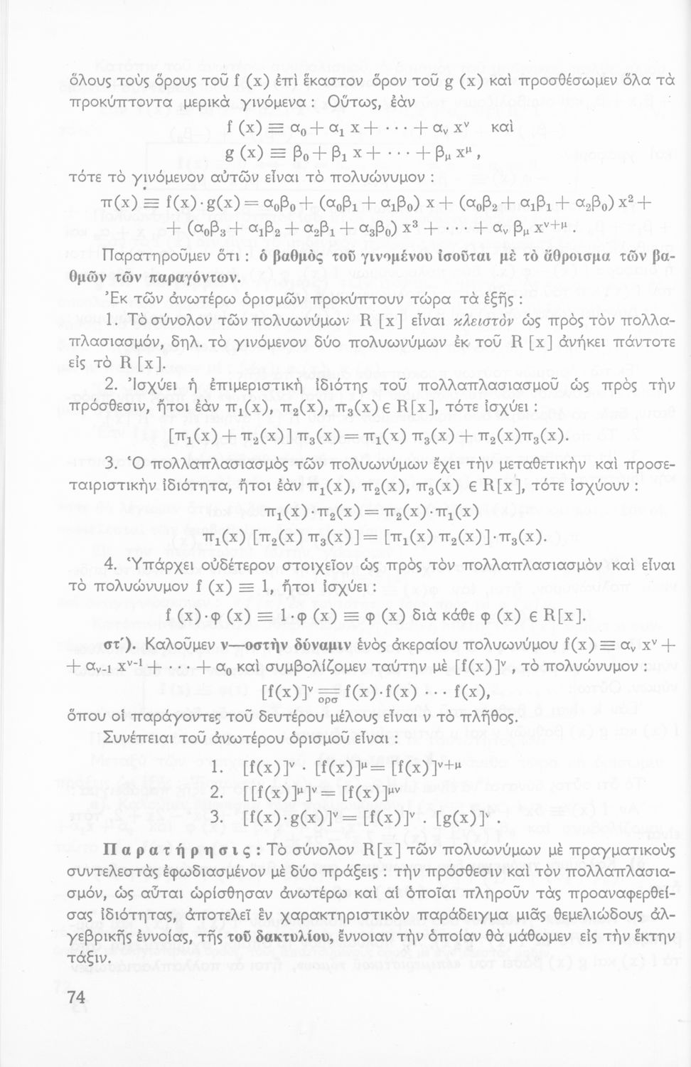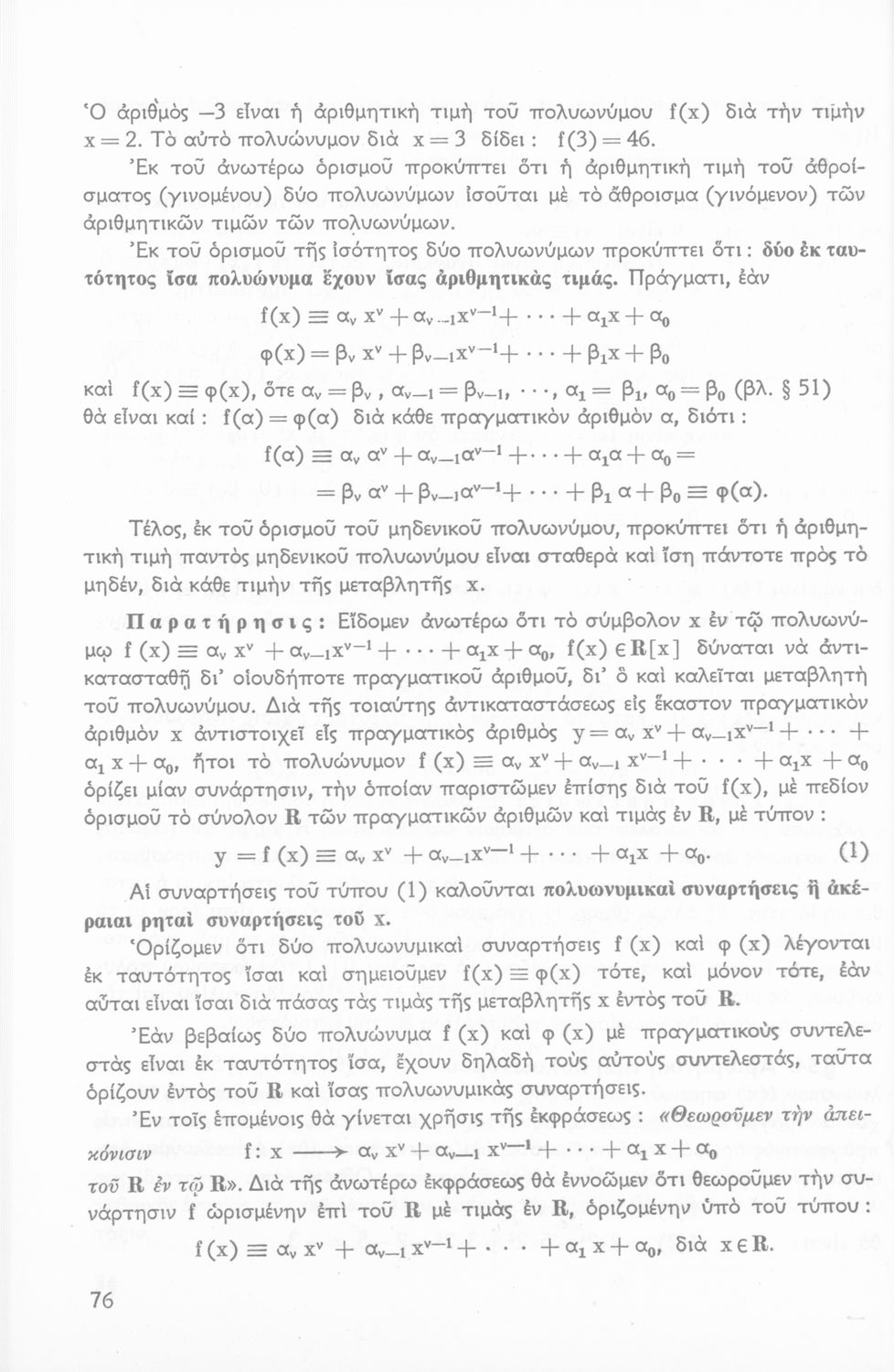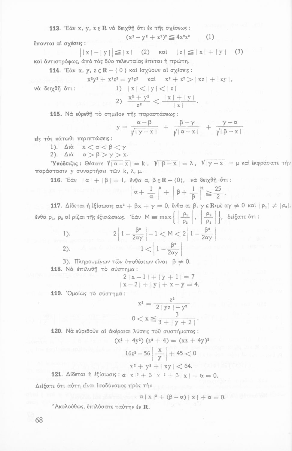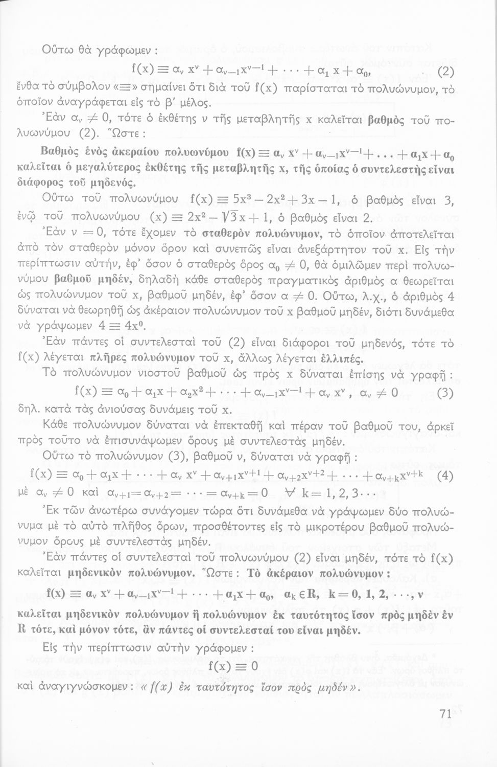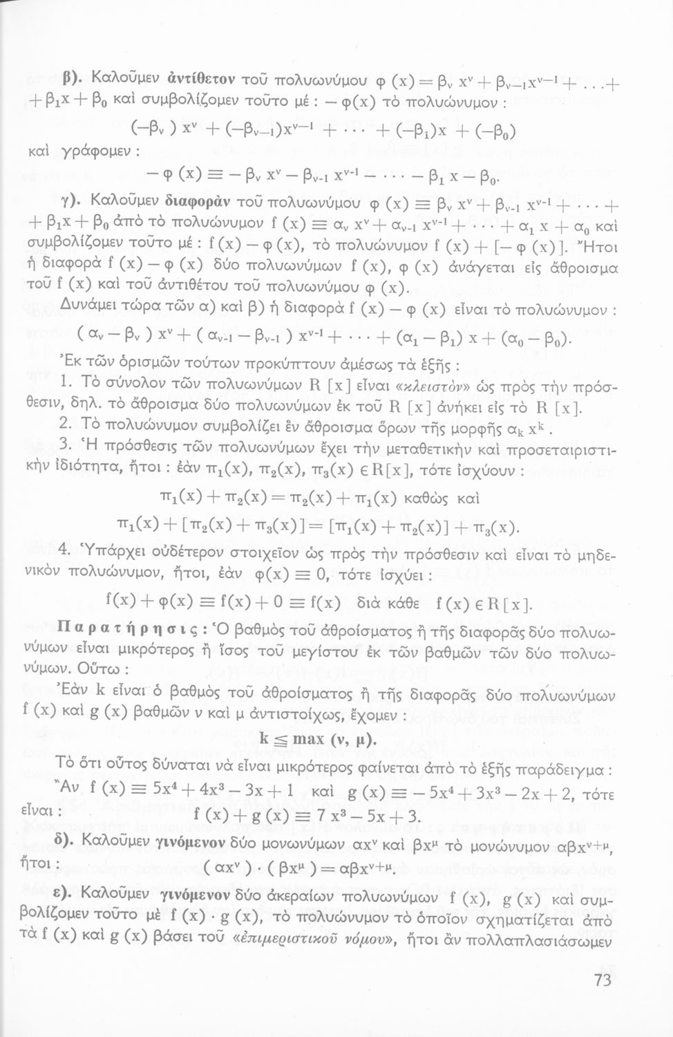Σχολικό εγχειρίδιο Μαθηματικών Γυμνασίου που είναι χωρισμένο σε θεωρήματα, παραδείγματα και ασκήσεις και περιλαμβάνει στοιχεία Ανώτερης Άλγεβρας και Μαθηματικής Ανάλυσης.