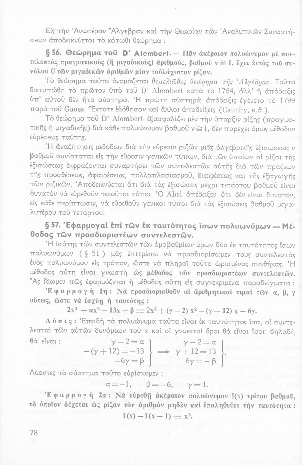 Σχολικό εγχειρίδιο Μαθηματικών ΣΤ΄ Γυμνασίου που είναι χωρισμένο σε θεωρήματα, παραδείγματα και ασκήσεις και περιλαμβάνει στοιχεία Ανώτερης Άλγεβρας και Μαθηματικής Ανάλυσης.