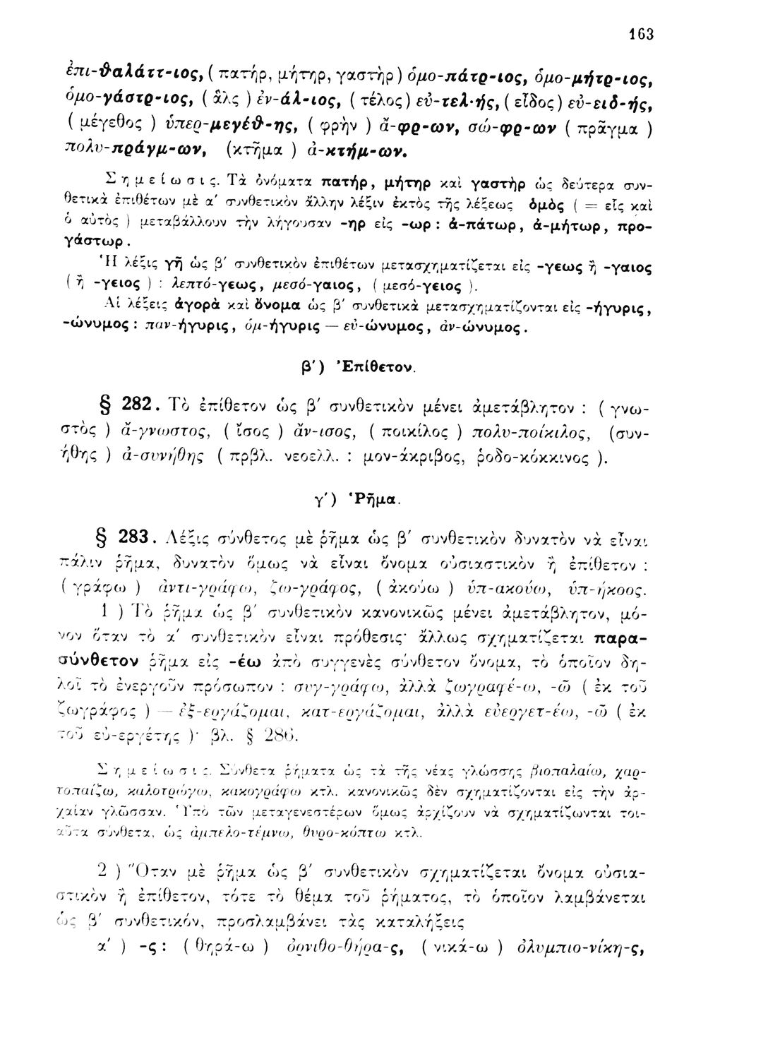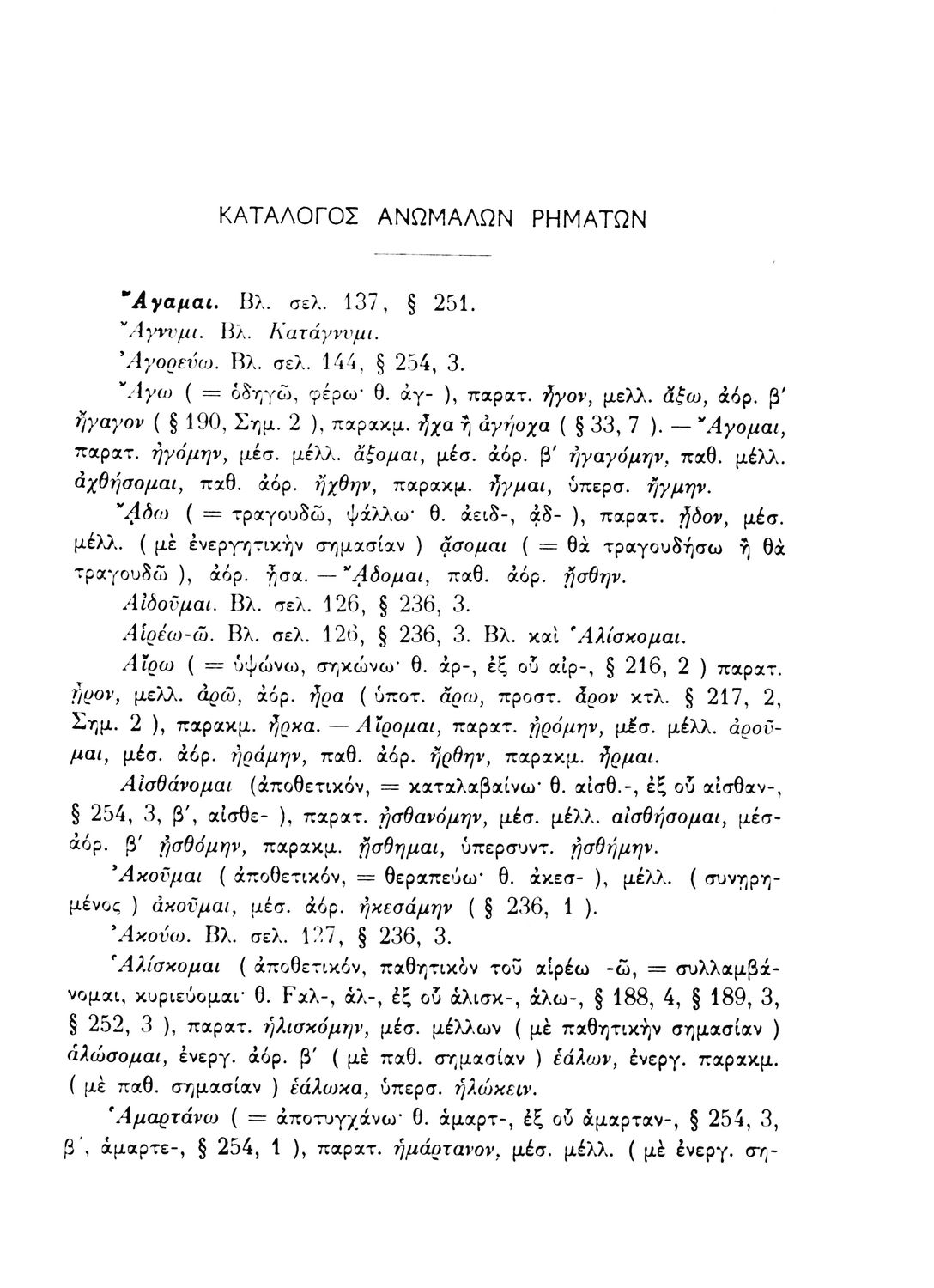 Σχολικό εγχειρίδιο Αρχαίων Ελληνικών που περιέχει τους κανόνες γραμματικής και είναι χωρισμένο σε φθογγολογικό, τυπολογικό και ετυμολογικό μέρος. Περιέχει και κατάλογο ανωμάλων ρημάτων.