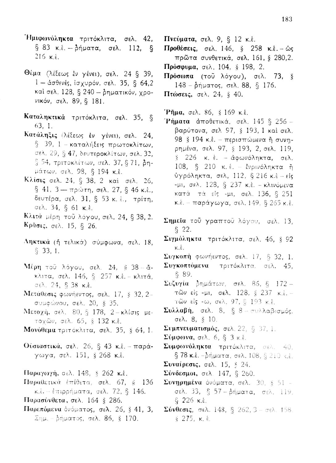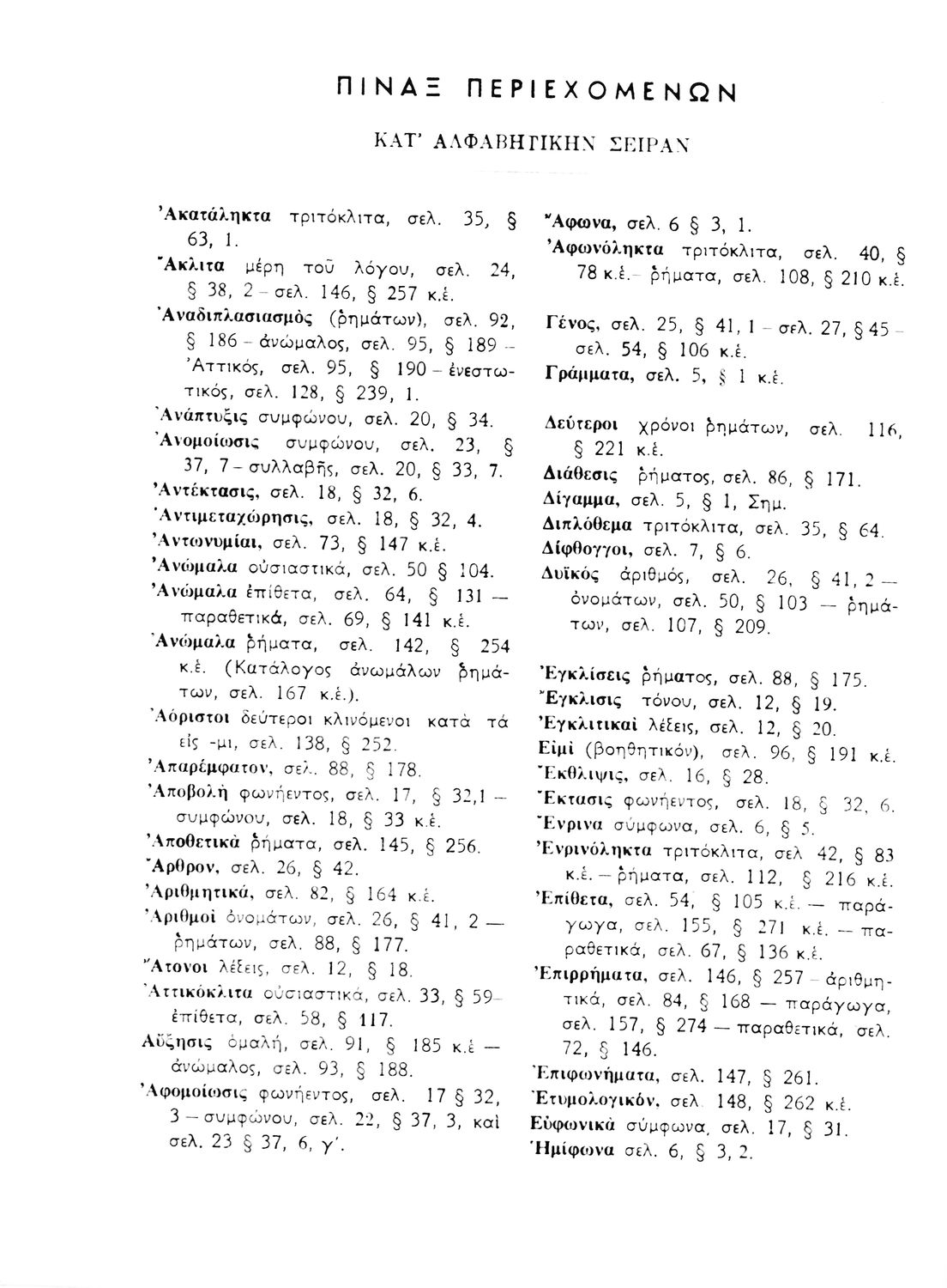 Σχολικό εγχειρίδιο Αρχαίων Ελληνικών που περιέχει τους κανόνες γραμματικής και είναι χωρισμένο σε φθογγολογικό, τυπολογικό και ετυμολογικό μέρος. Περιέχει και κατάλογο ανωμάλων ρημάτων.