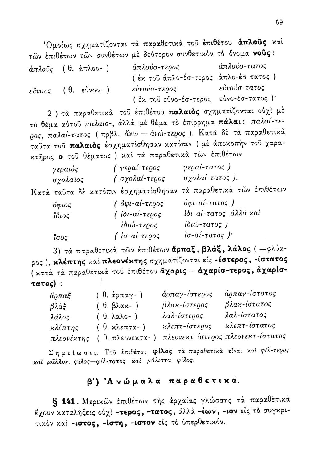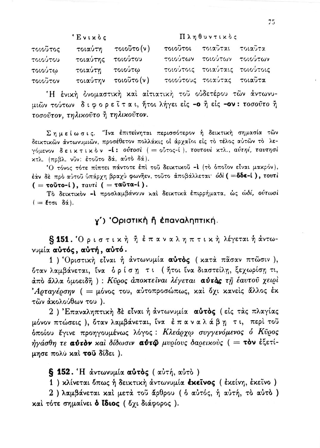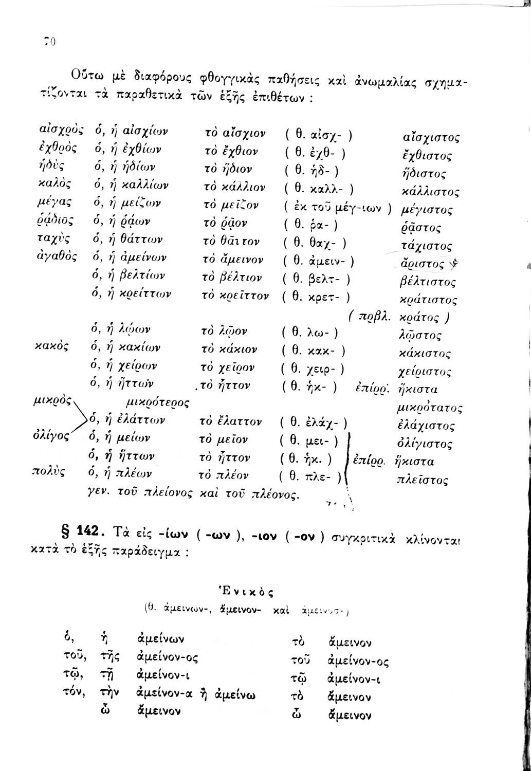 Σχολικό εγχειρίδιο Αρχαίων Ελληνικών που περιέχει τους κανόνες γραμματικής και είναι χωρισμένο σε φθογγολογικό, τυπολογικό και ετυμολογικό μέρος. Περιέχει και κατάλογο ανωμάλων ρημάτων.