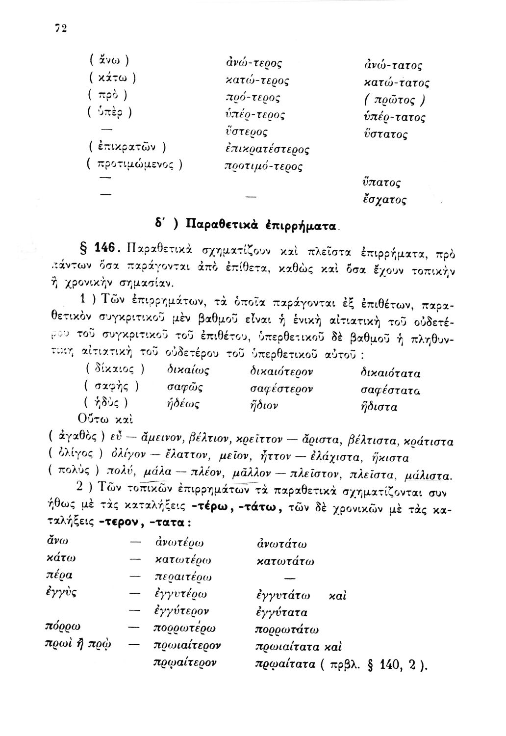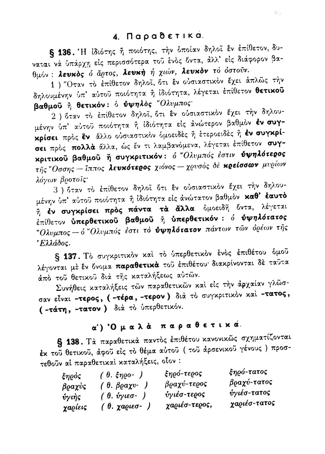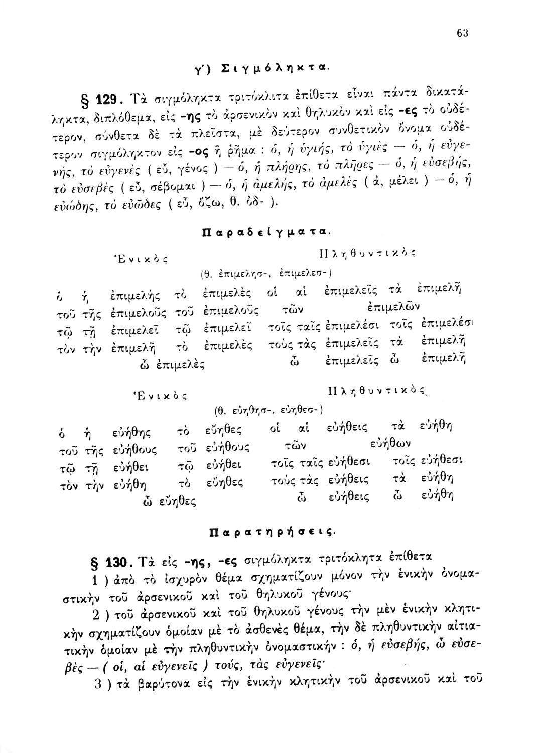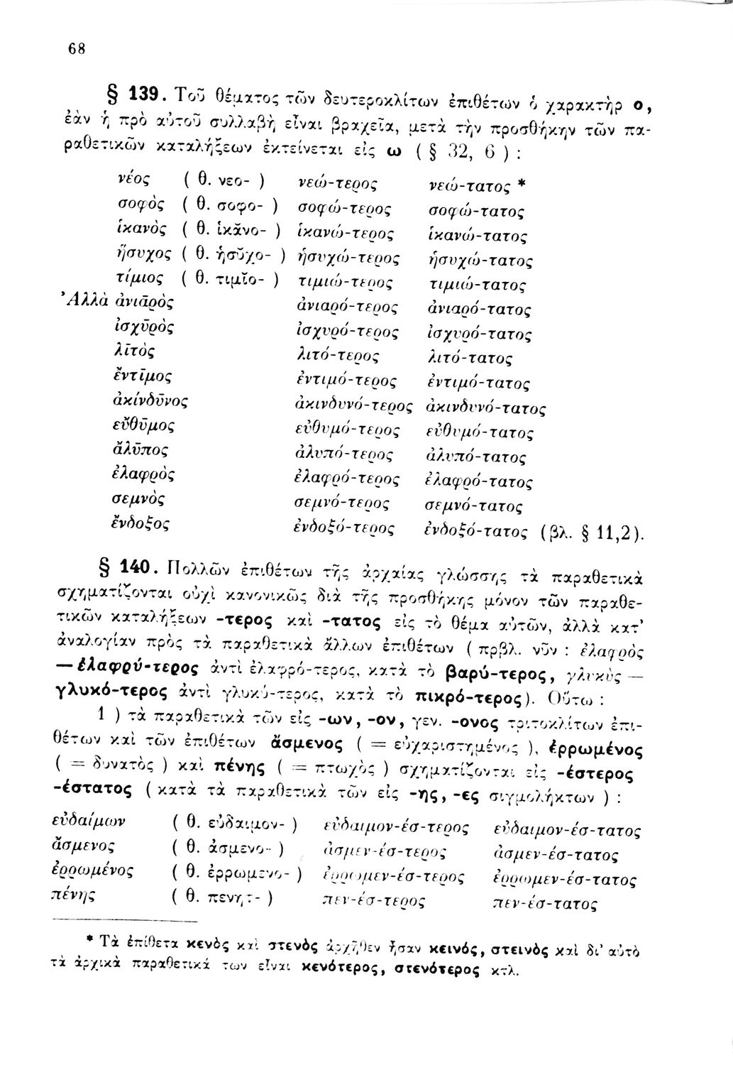 Σχολικό εγχειρίδιο Αρχαίων Ελληνικών που περιέχει τους κανόνες γραμματικής και είναι χωρισμένο σε φθογγολογικό, τυπολογικό και ετυμολογικό μέρος. Περιέχει και κατάλογο ανωμάλων ρημάτων.