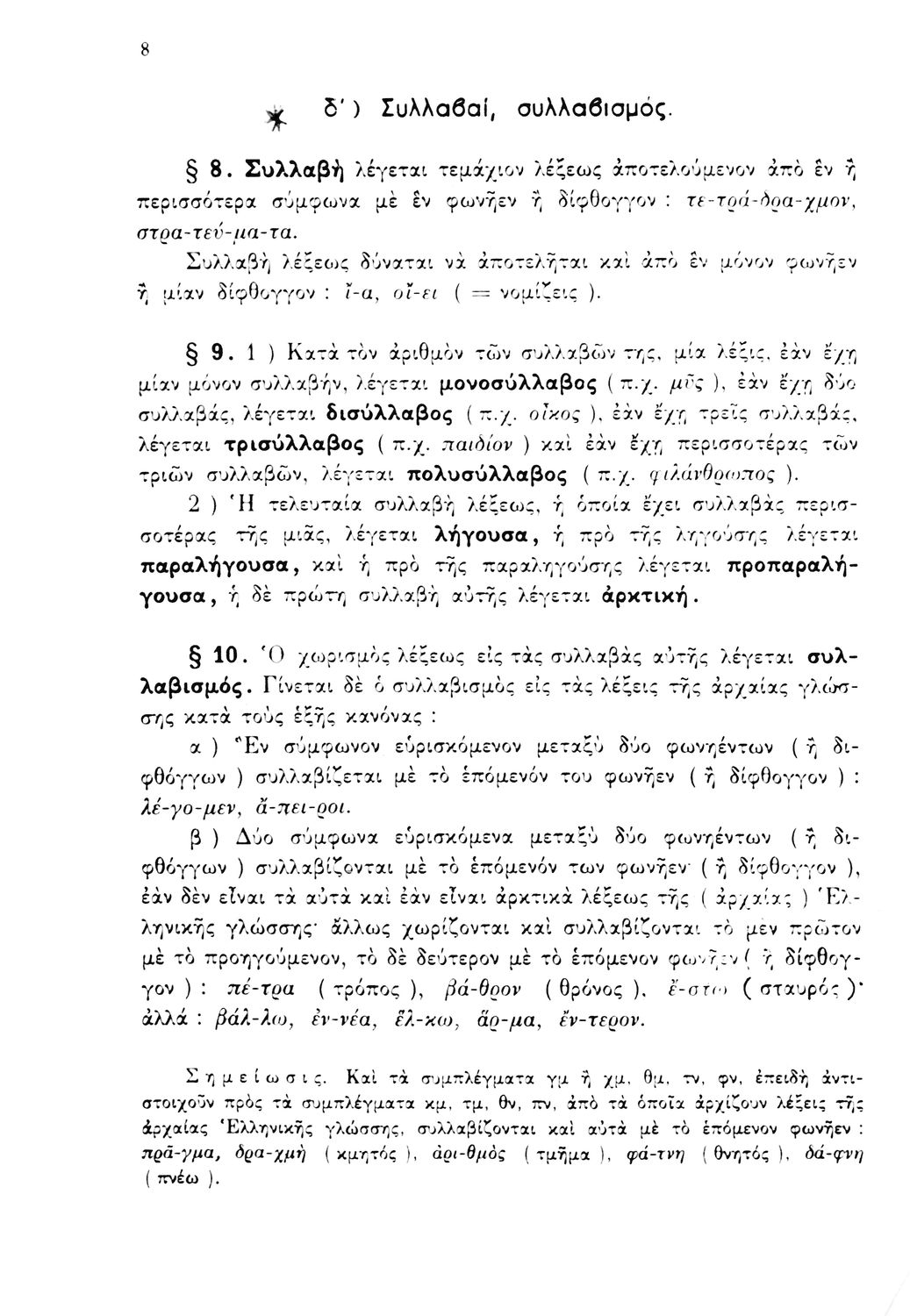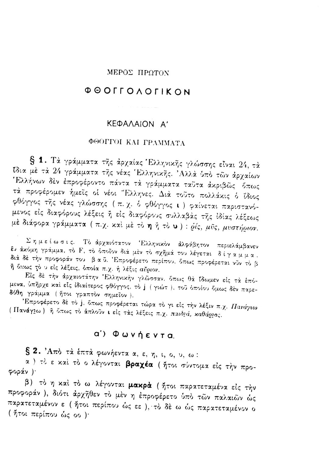Σχολικό εγχειρίδιο Αρχαίων Ελληνικών που περιέχει τους κανόνες γραμματικής και είναι χωρισμένο σε φθογγολογικό, τυπολογικό και ετυμολογικό μέρος. Περιέχει και κατάλογο ανωμάλων ρημάτων.