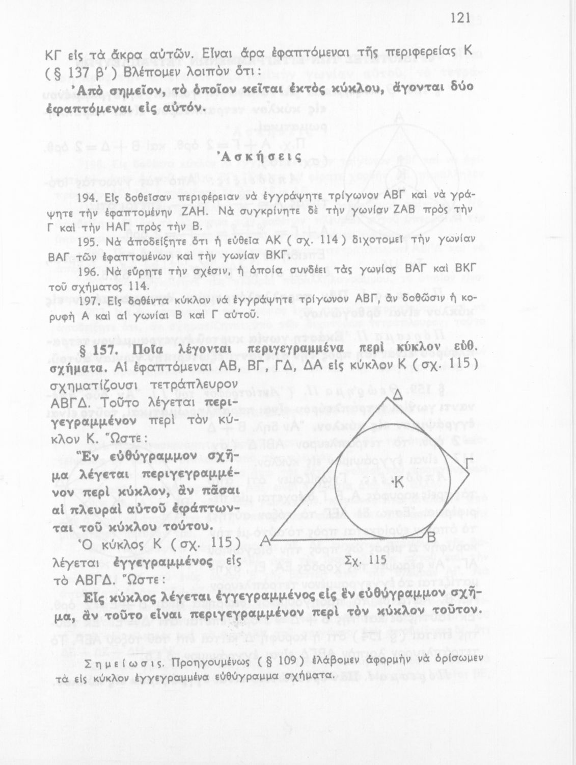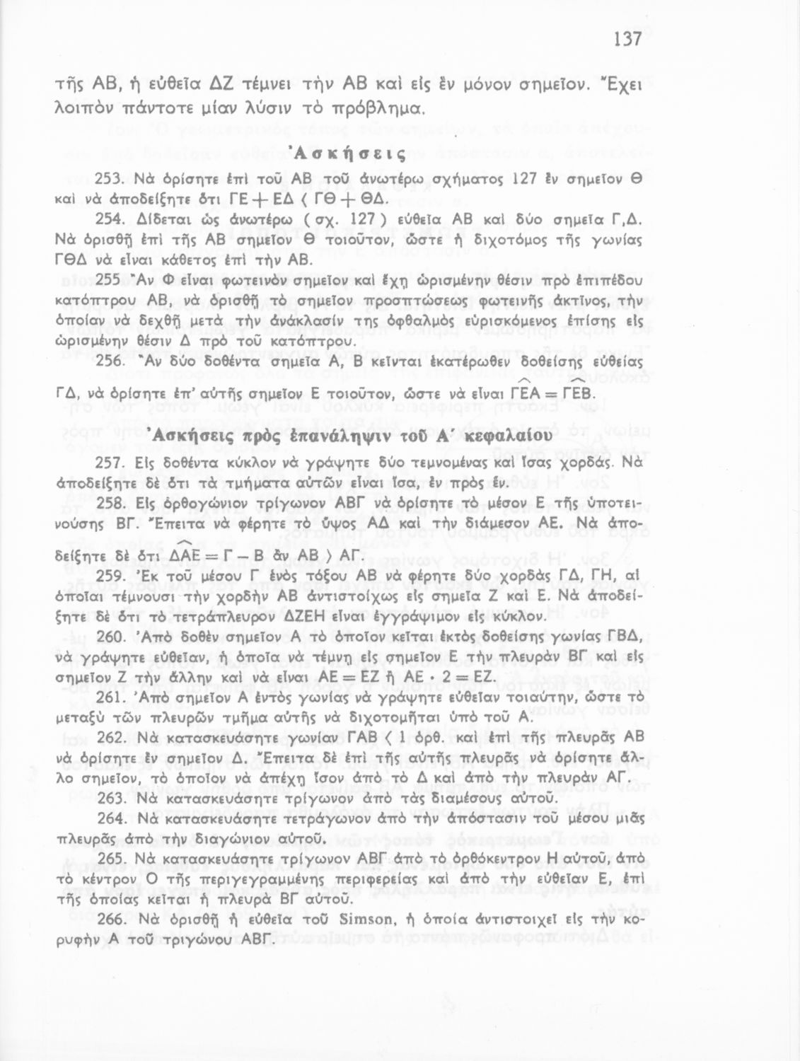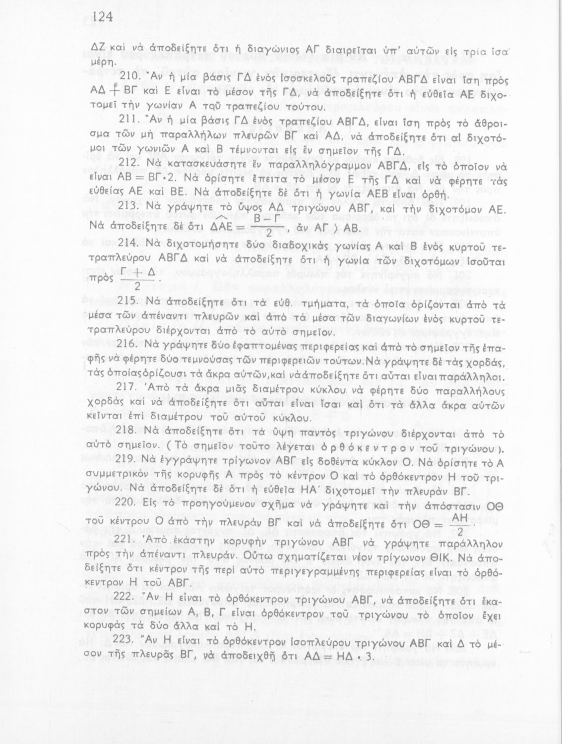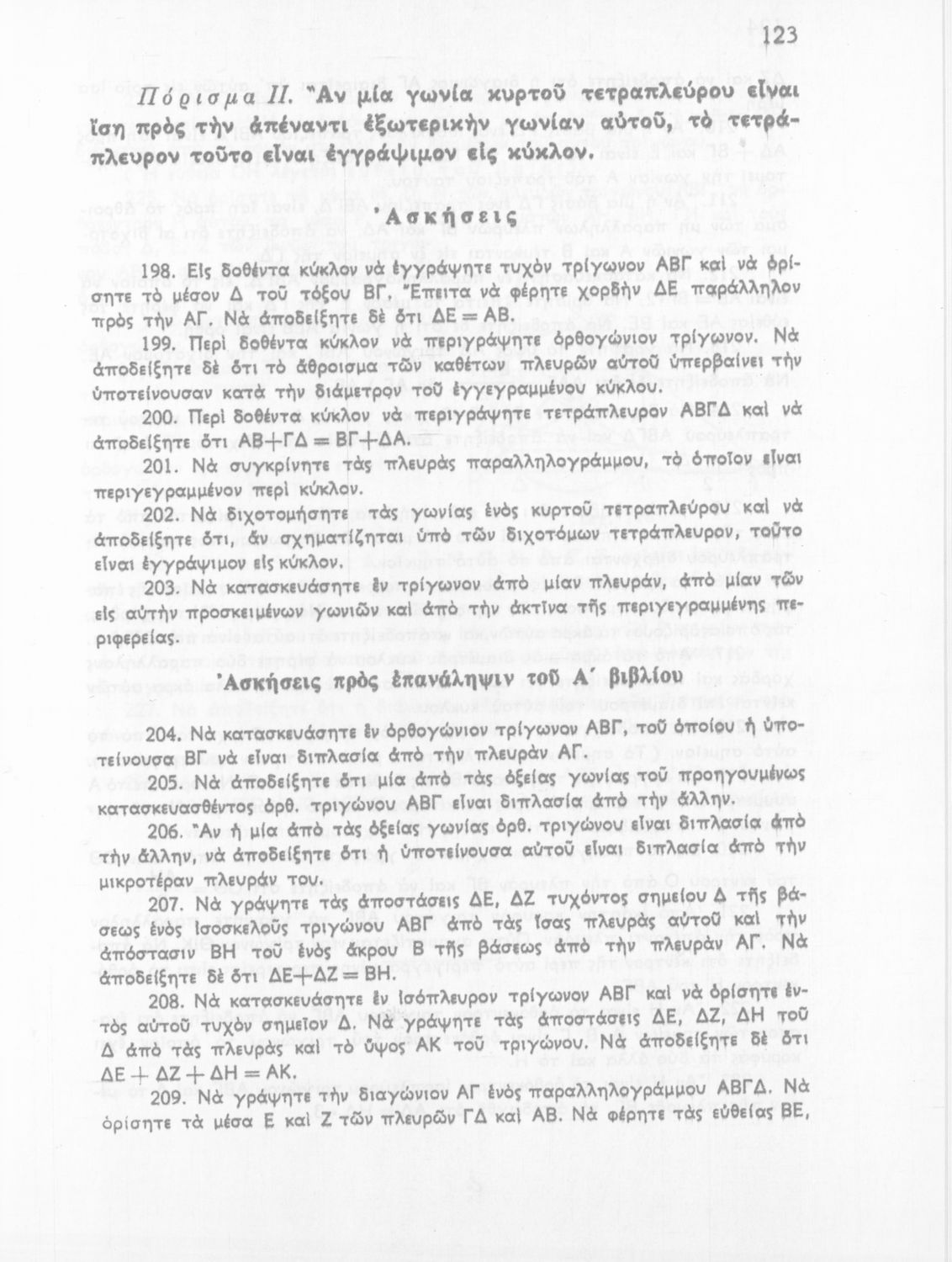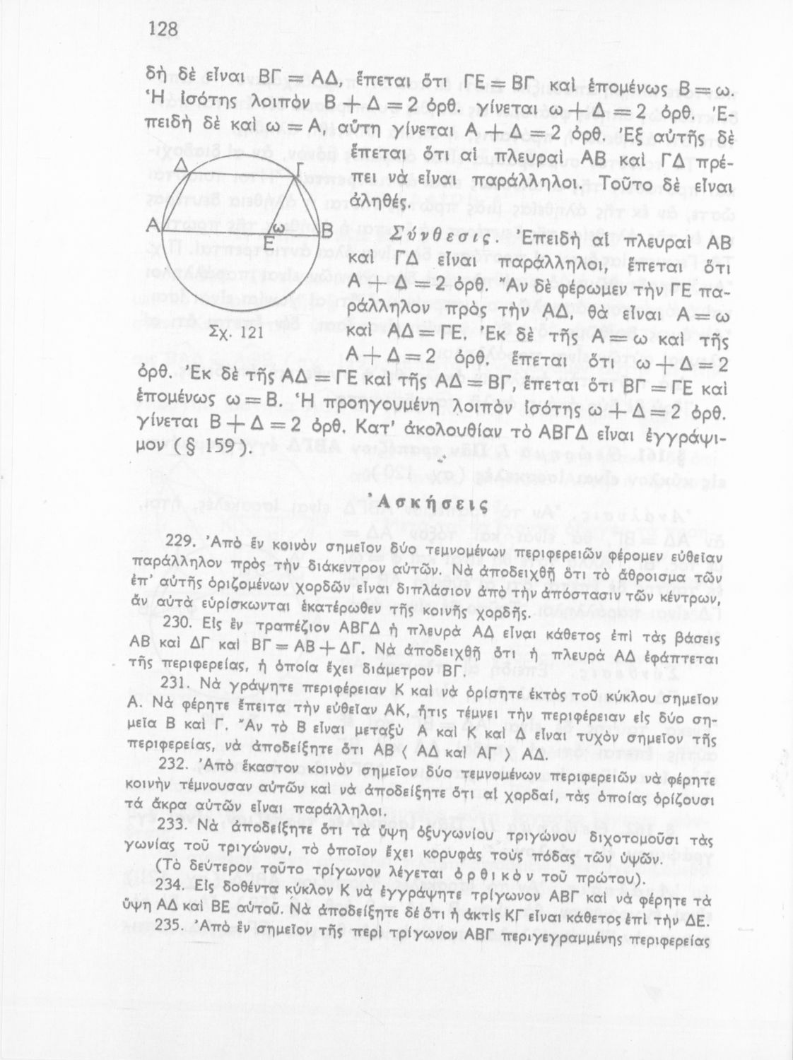 Σχολικό εγχειρίδιο Γεωμετρίας που περιλαμβάνει θεωρία και ασκήσεις και είναι χωρισμένο σε Επιπεδομετρία και Στερεομετρία.