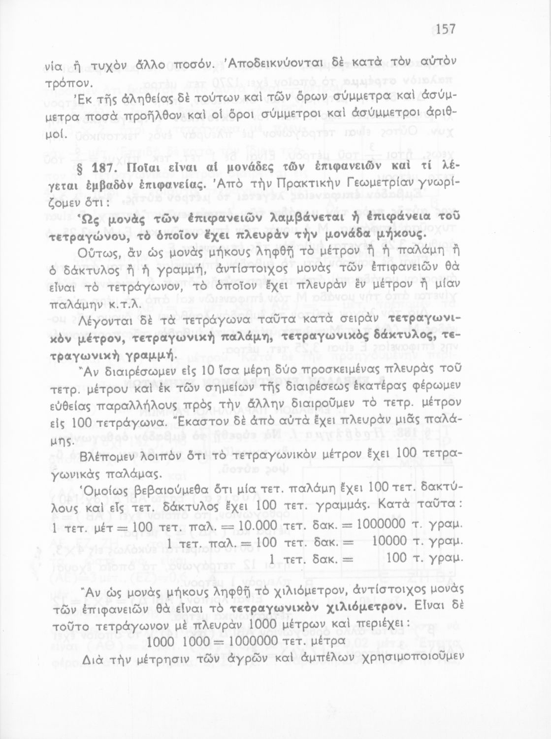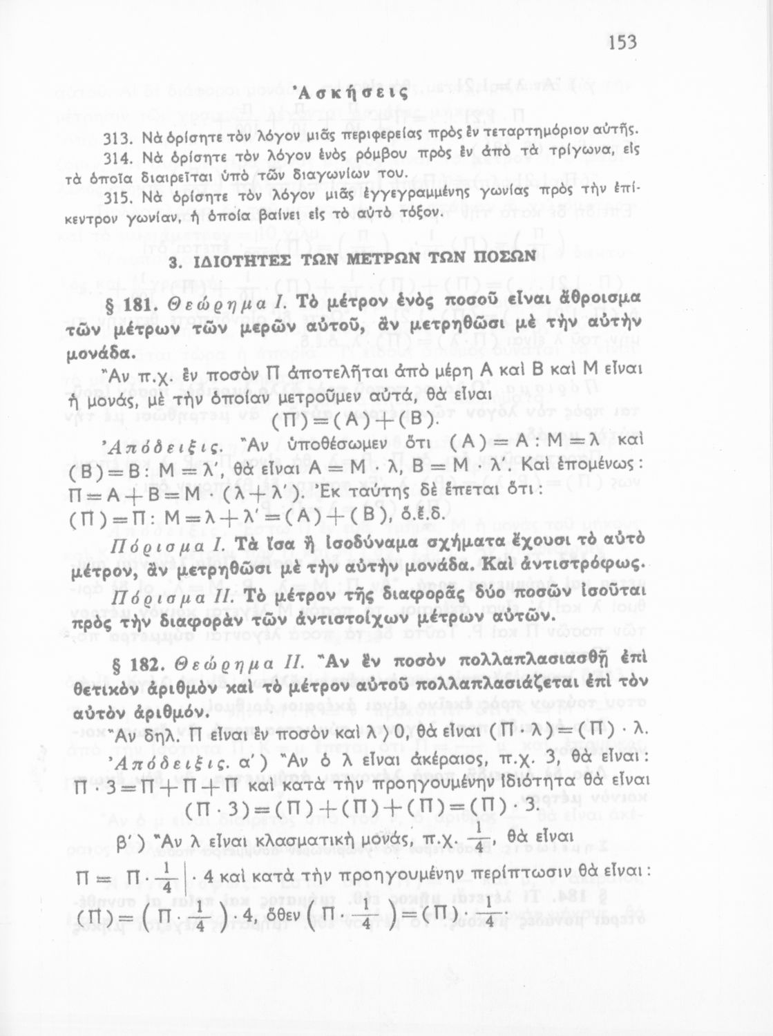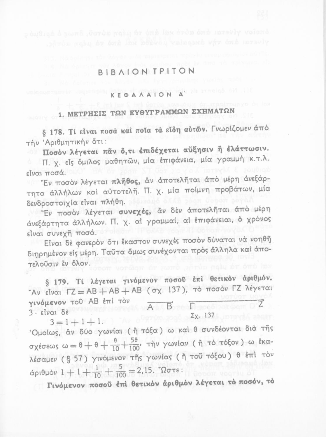 Σχολικό εγχειρίδιο Γεωμετρίας που περιλαμβάνει θεωρία και ασκήσεις και είναι χωρισμένο σε Επιπεδομετρία και Στερεομετρία.