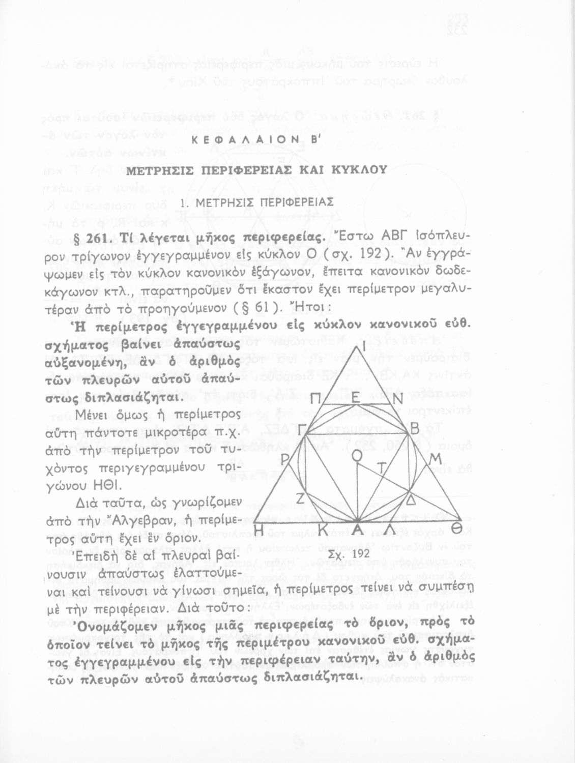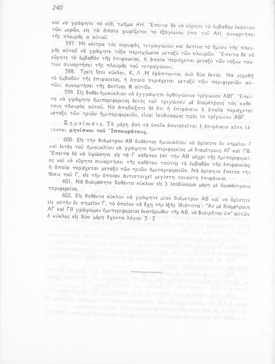 Σχολικό εγχειρίδιο Γεωμετρίας που περιλαμβάνει θεωρία και ασκήσεις και είναι χωρισμένο σε Επιπεδομετρία και Στερεομετρία.