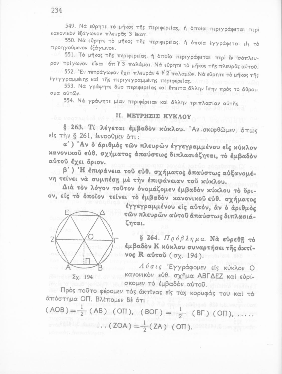 Σχολικό εγχειρίδιο Γεωμετρίας για τις Γ΄, Δ΄, Ε΄, ΣΤ΄ Γυμνασίου που περιλαμβάνει θεωρία και ασκήσεις και είναι χωρισμένο σε Επιπεδομετρία και Στερεομετρία.