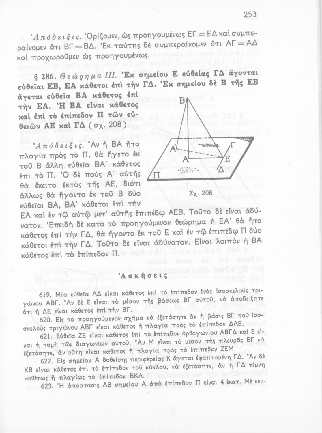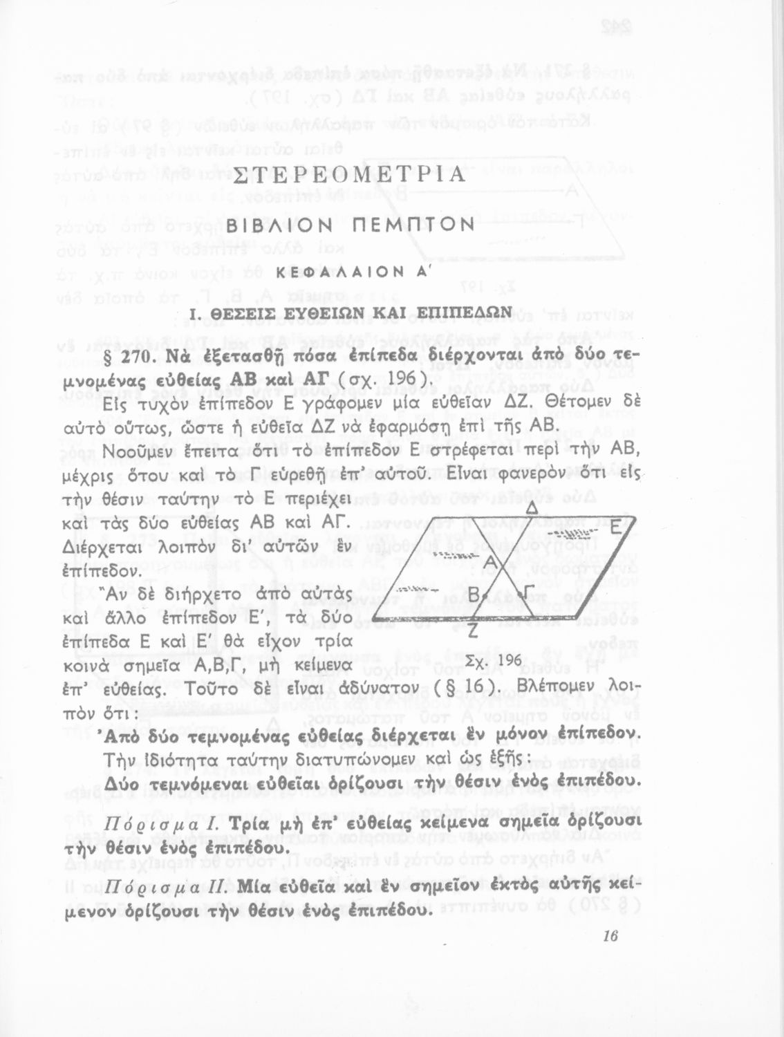 Σχολικό εγχειρίδιο Γεωμετρίας που περιλαμβάνει θεωρία και ασκήσεις και είναι χωρισμένο σε Επιπεδομετρία και Στερεομετρία.