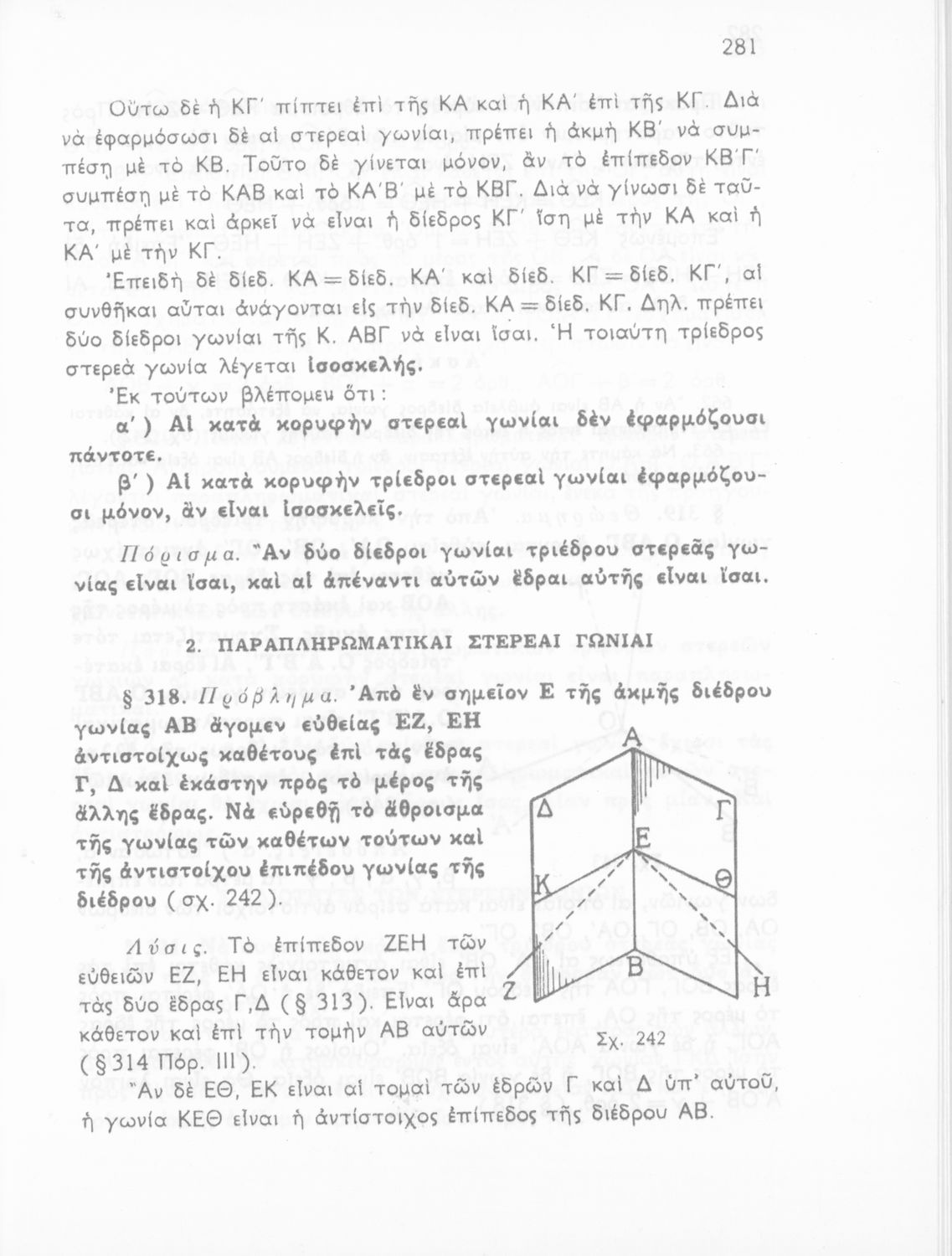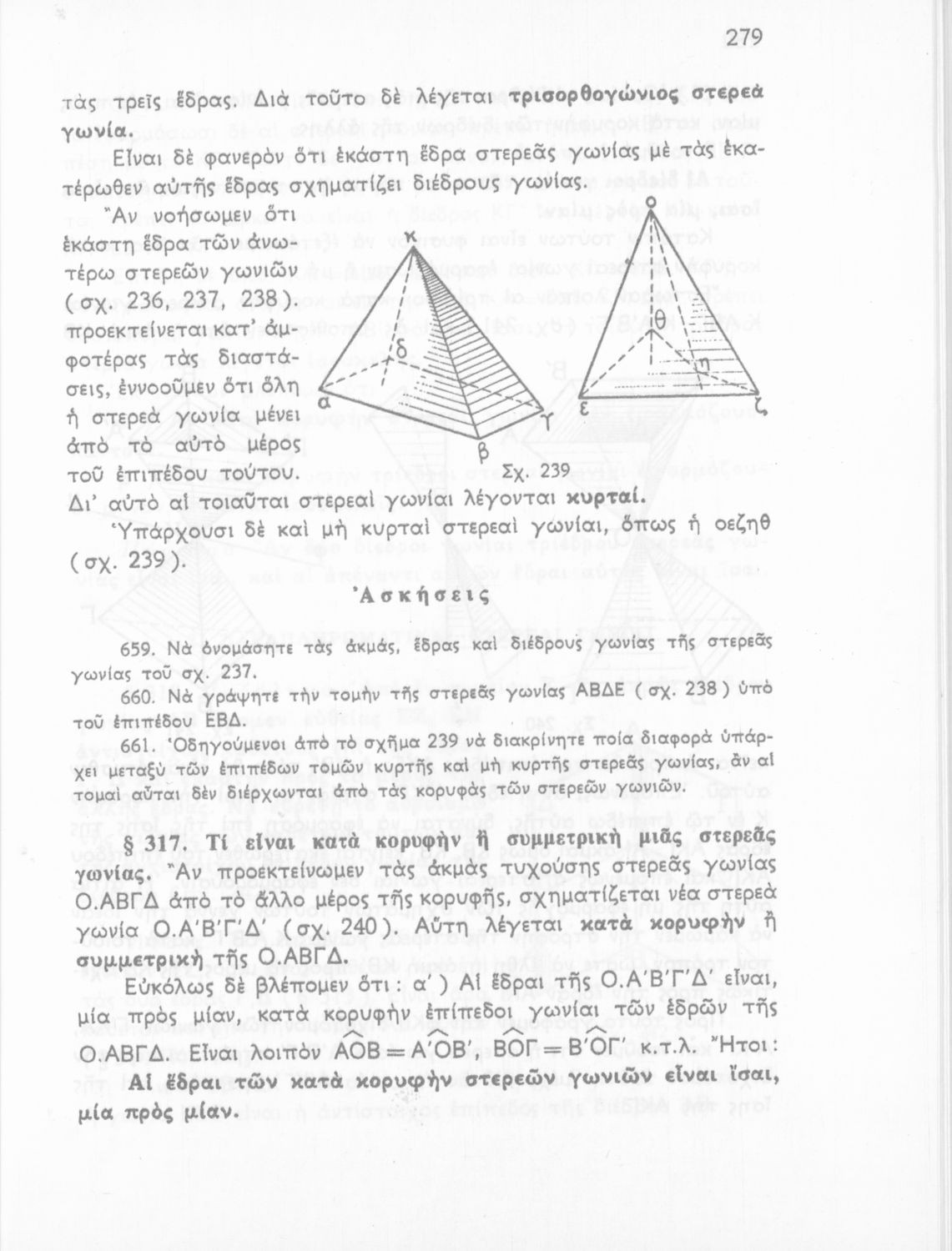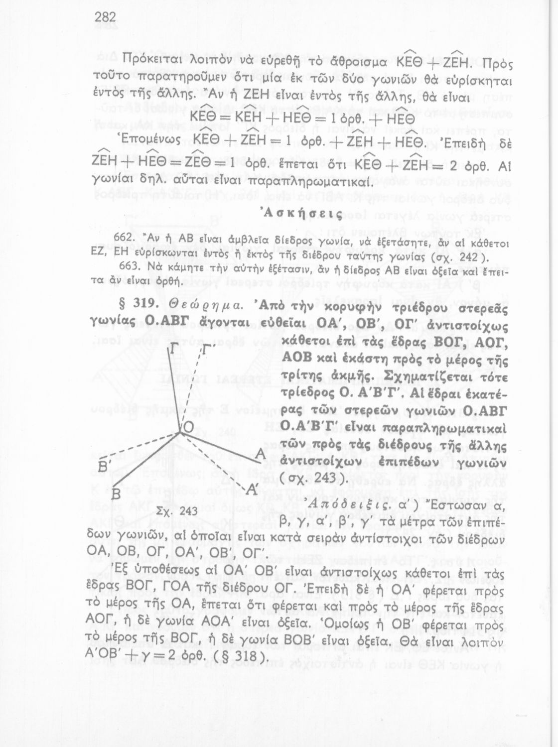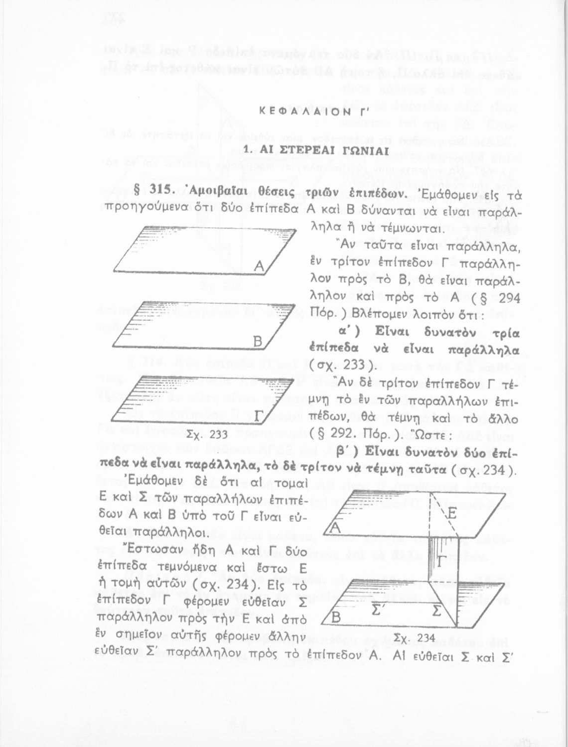 Σχολικό εγχειρίδιο Γεωμετρίας που περιλαμβάνει θεωρία και ασκήσεις και είναι χωρισμένο σε Επιπεδομετρία και Στερεομετρία.