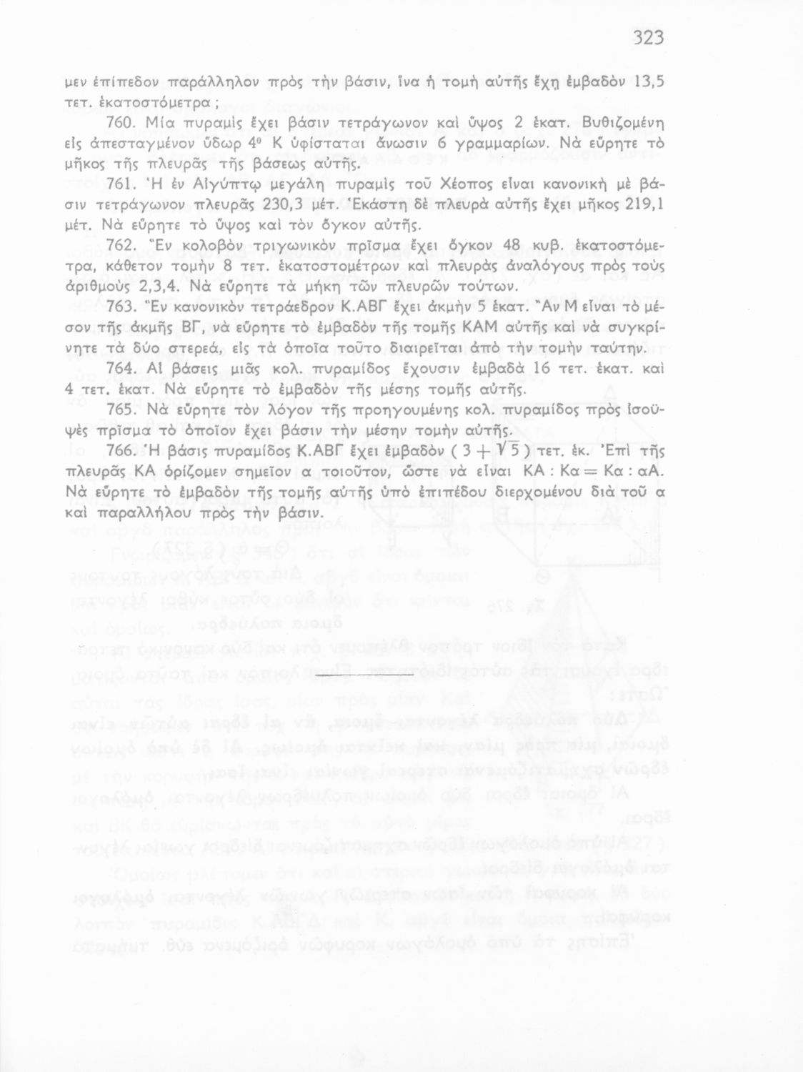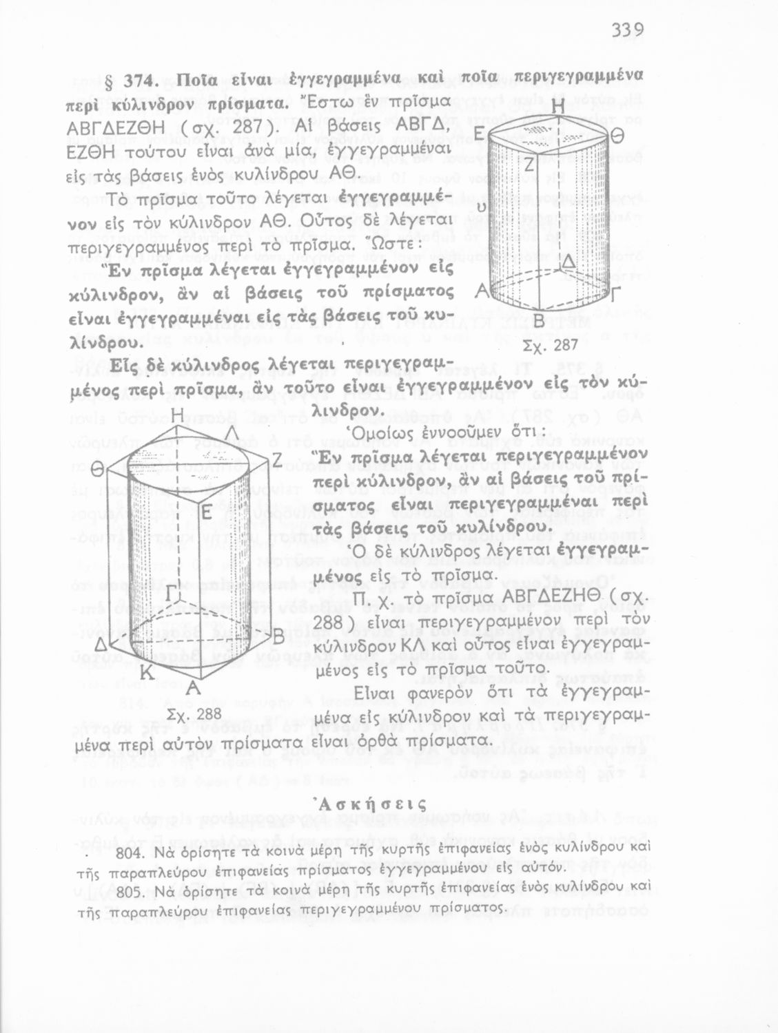 Σχολικό εγχειρίδιο Γεωμετρίας για τις Γ΄, Δ΄, Ε΄, ΣΤ΄ Γυμνασίου που περιλαμβάνει θεωρία και ασκήσεις και είναι χωρισμένο σε Επιπεδομετρία και Στερεομετρία. Φέρει το σύμβολο της δικτατορίας.