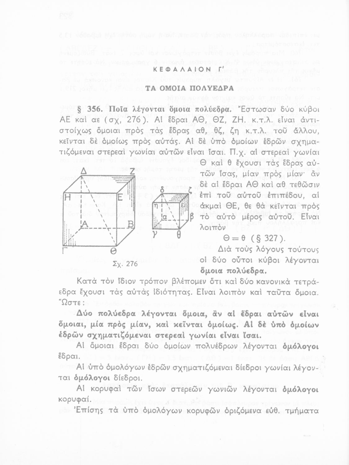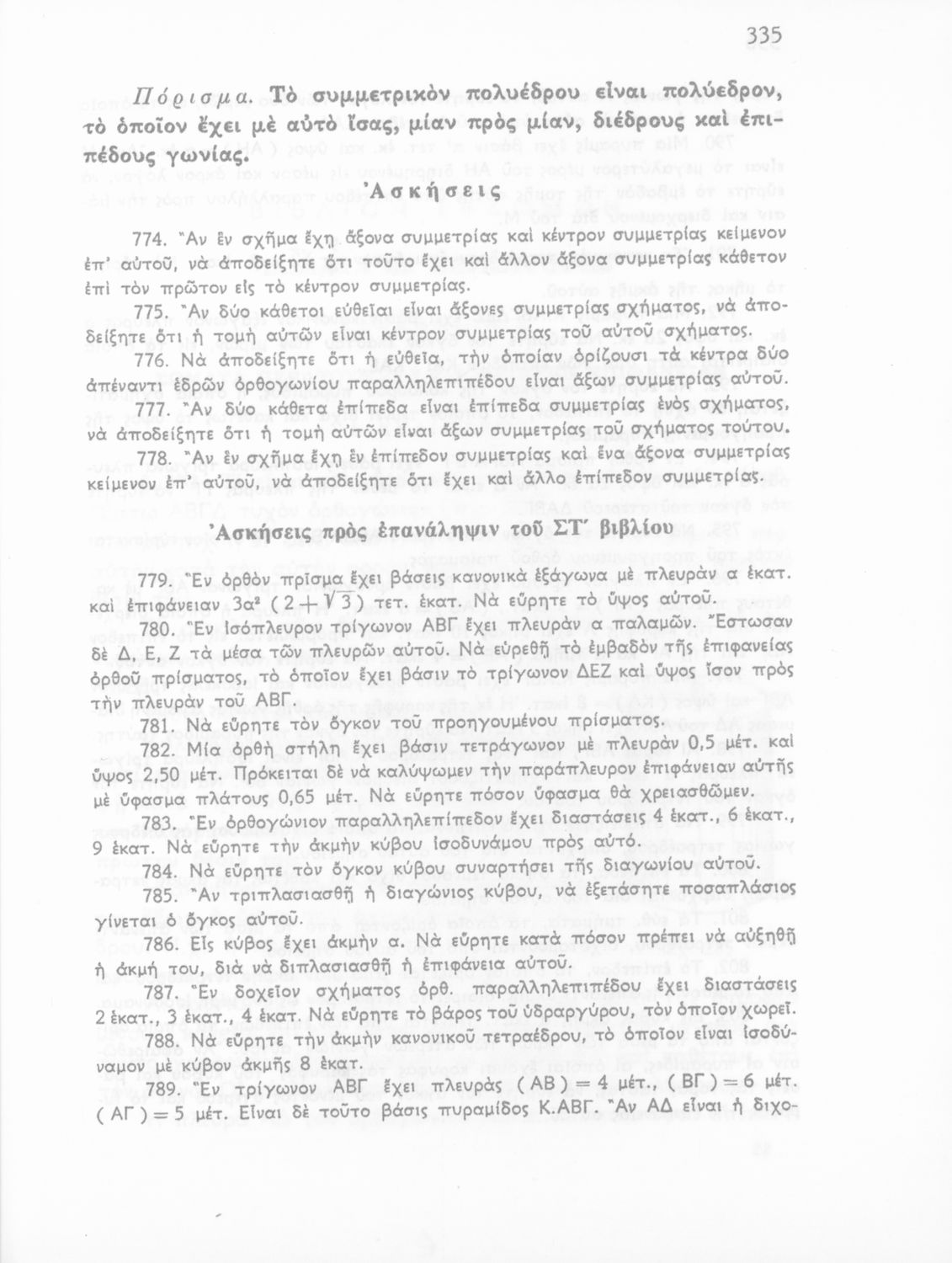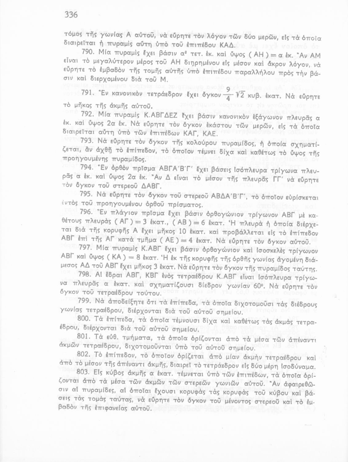 Σχολικό εγχειρίδιο Γεωμετρίας που περιλαμβάνει θεωρία και ασκήσεις και είναι χωρισμένο σε Επιπεδομετρία και Στερεομετρία.