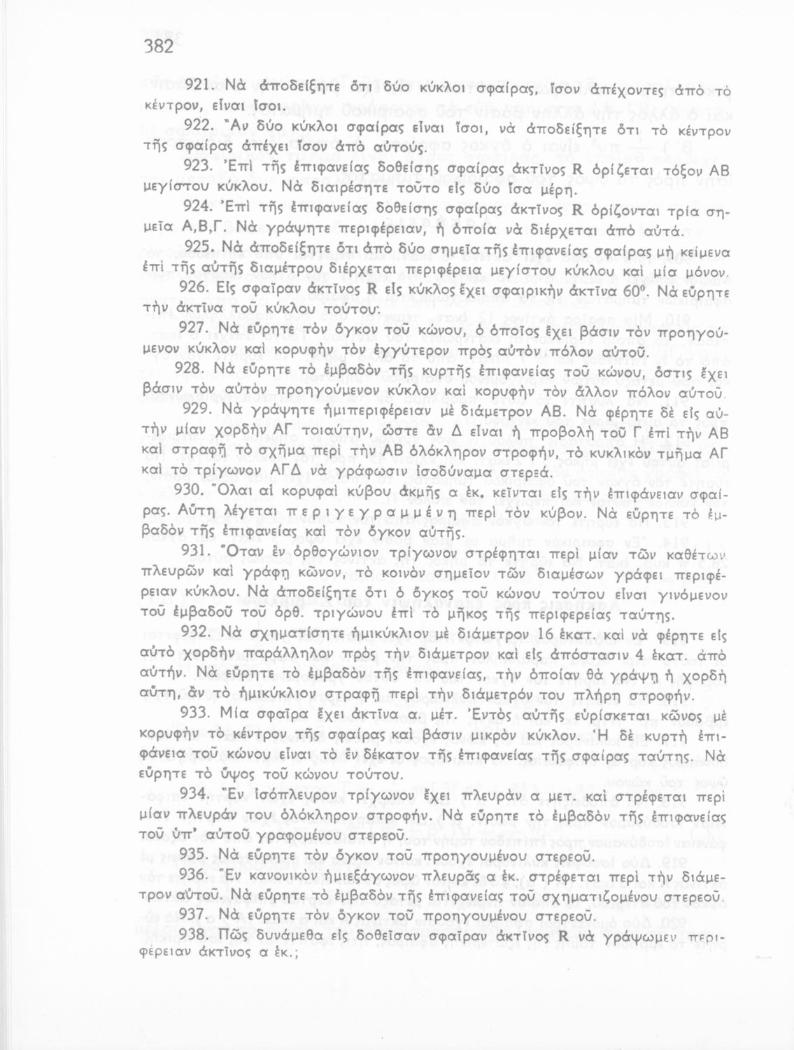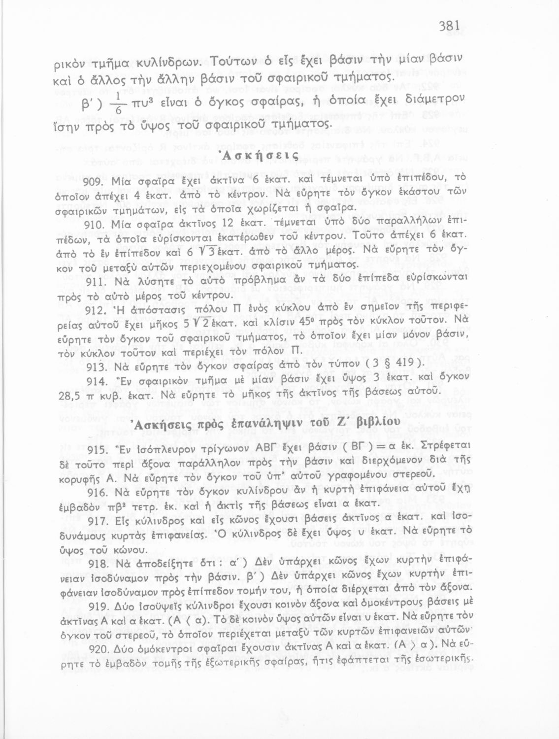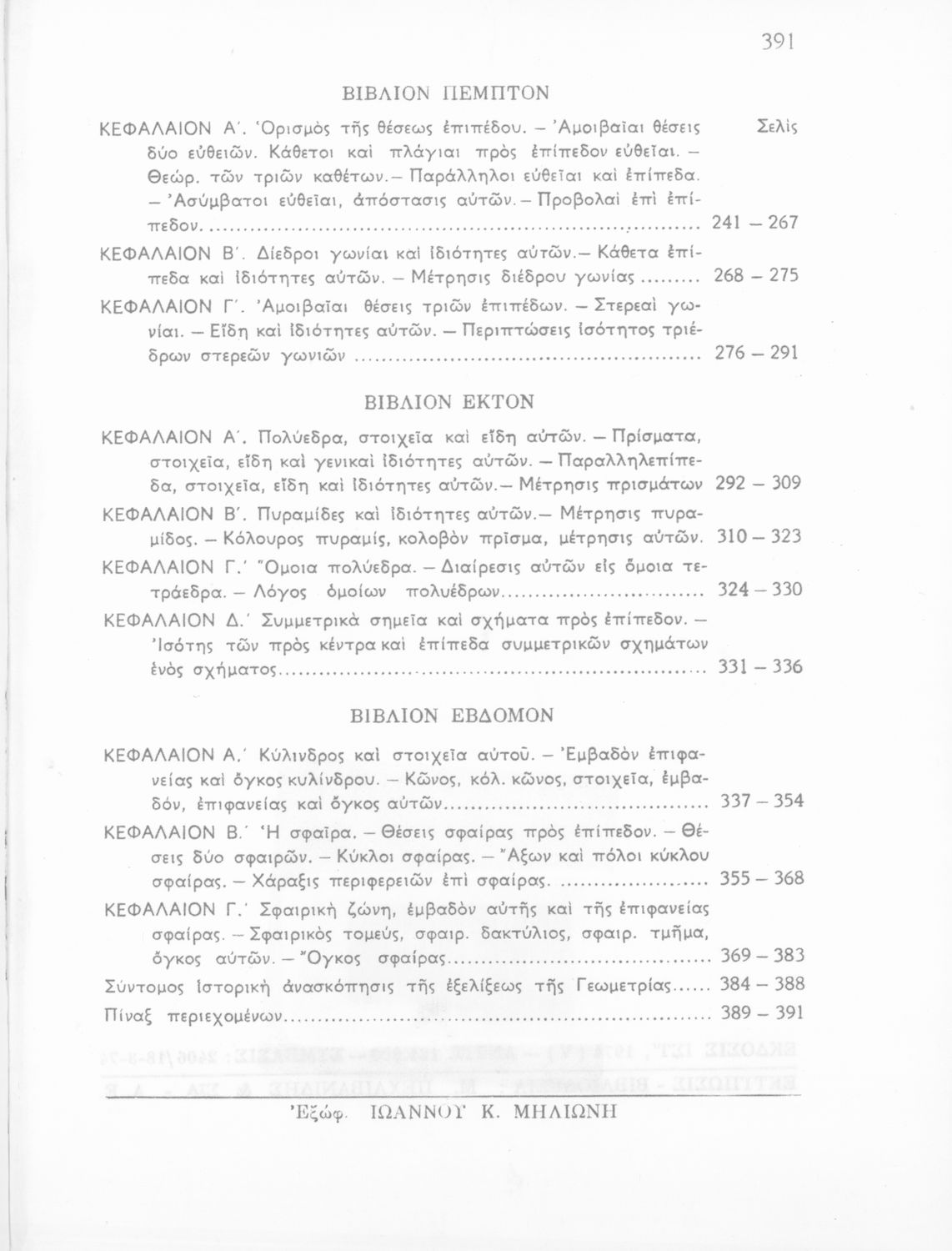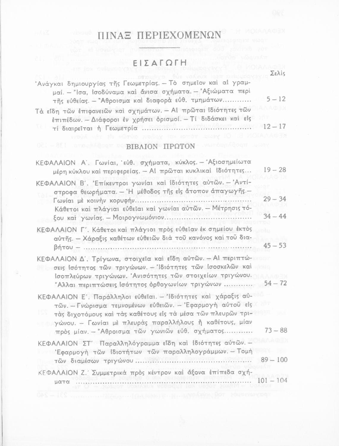Σχολικό εγχειρίδιο Γεωμετρίας που περιλαμβάνει θεωρία και ασκήσεις και είναι χωρισμένο σε Επιπεδομετρία και Στερεομετρία.