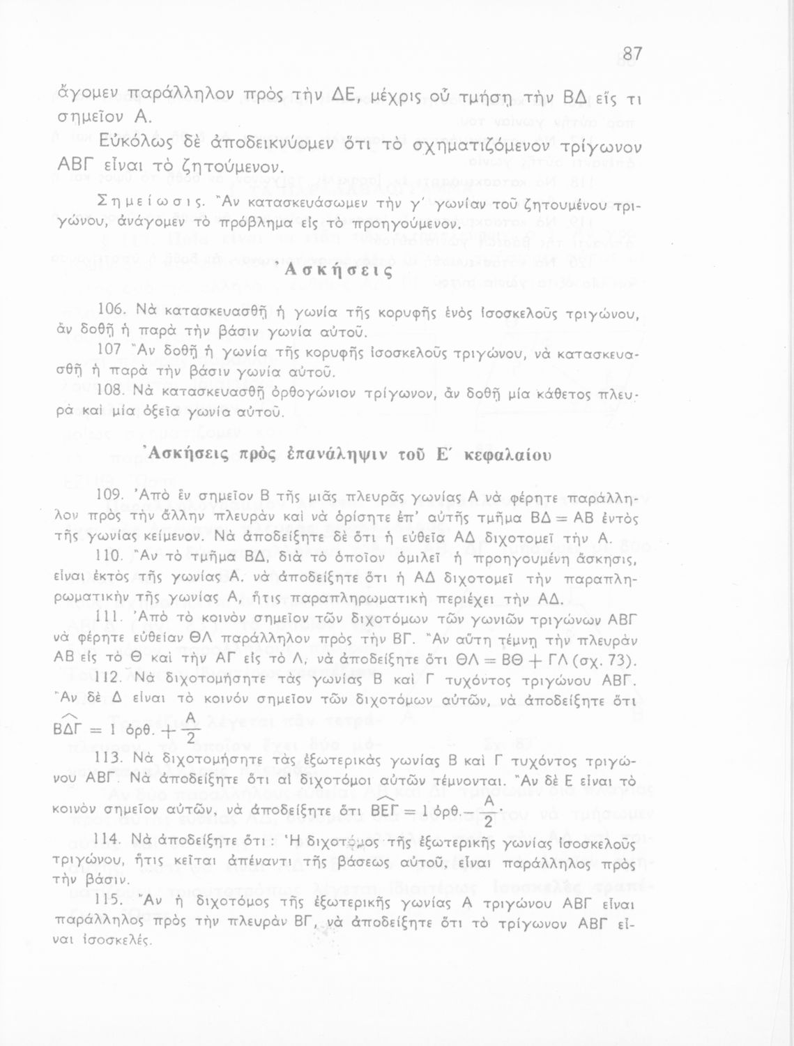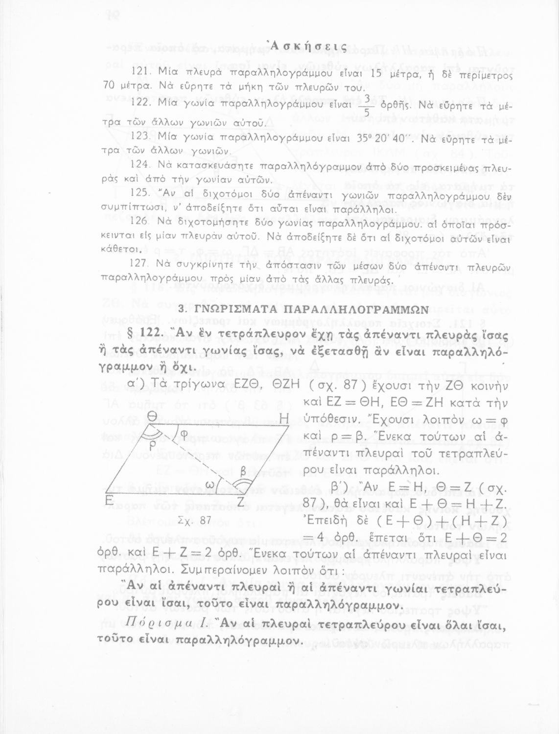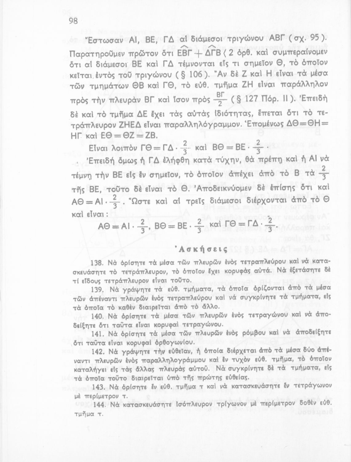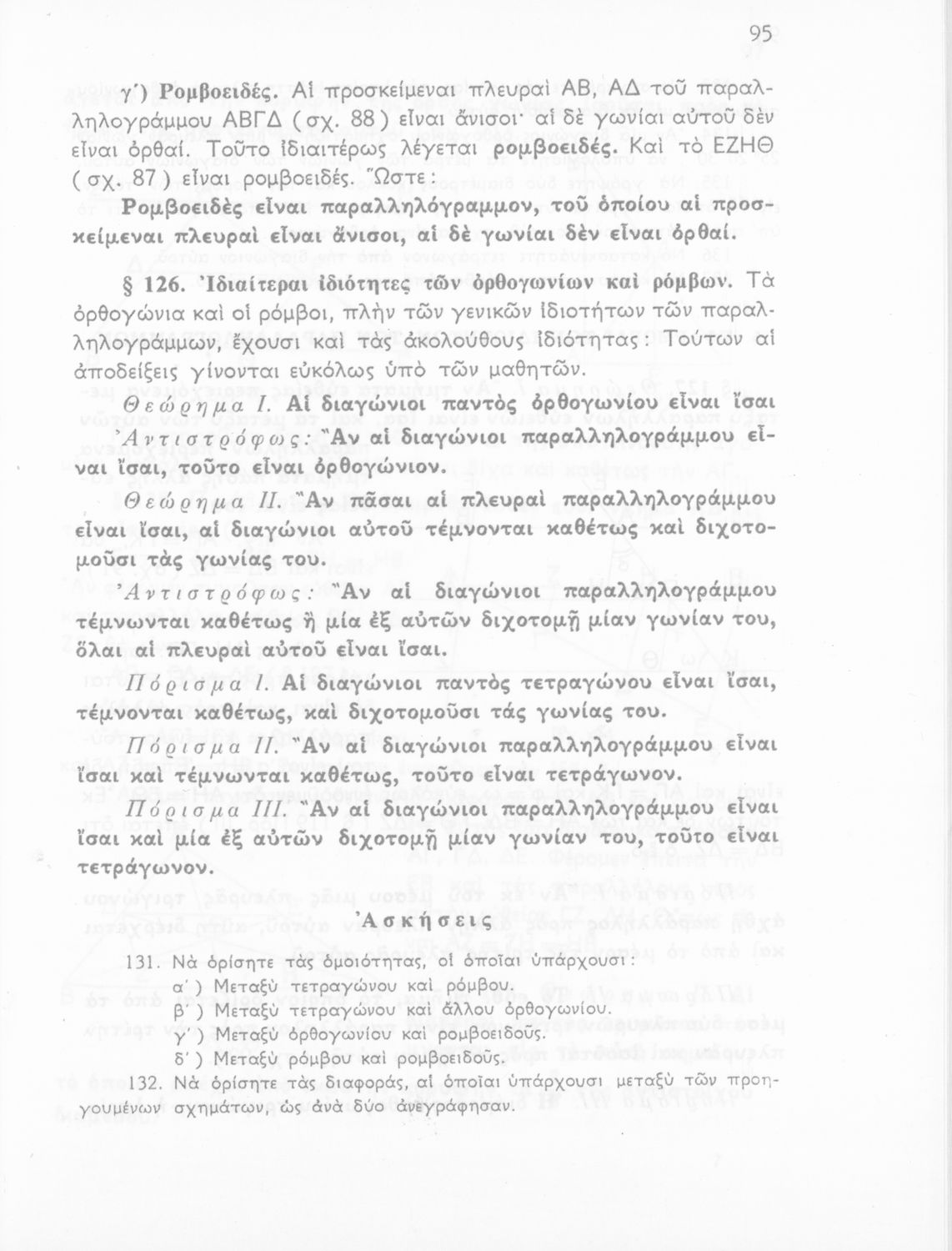 Σχολικό εγχειρίδιο Γεωμετρίας που περιλαμβάνει θεωρία και ασκήσεις και είναι χωρισμένο σε Επιπεδομετρία και Στερεομετρία.