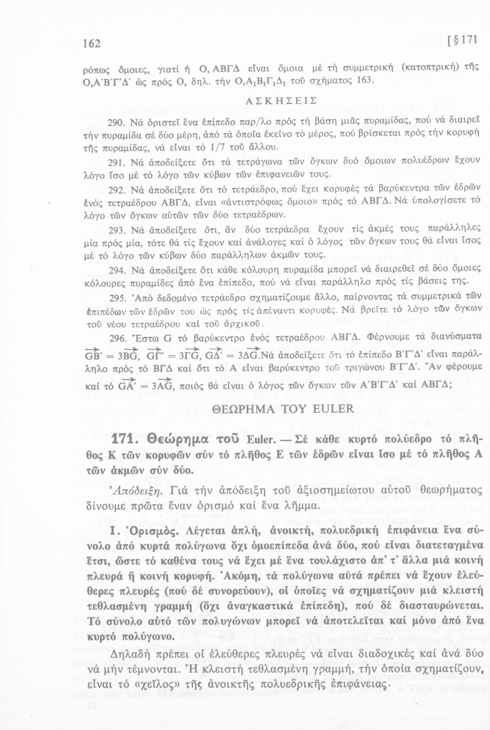 Σχολικό εγχειρίδιο Γεωμετρίας για τις Δ΄, Ε΄ και ΣΤ΄ Γυμνασίου που περιλαμβάνει αξιώματα, θεωρήματα και κατασκευές και είναι χωρισμένο σε γεωμετρία επιπέδου και γεωμετρία χώρου.