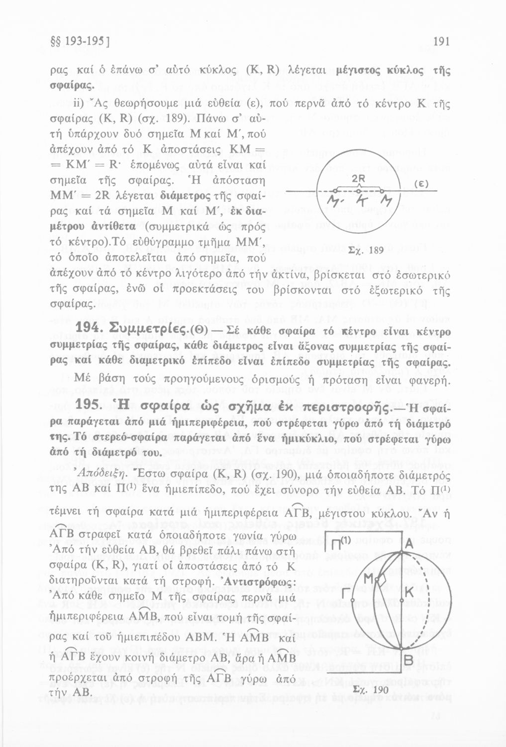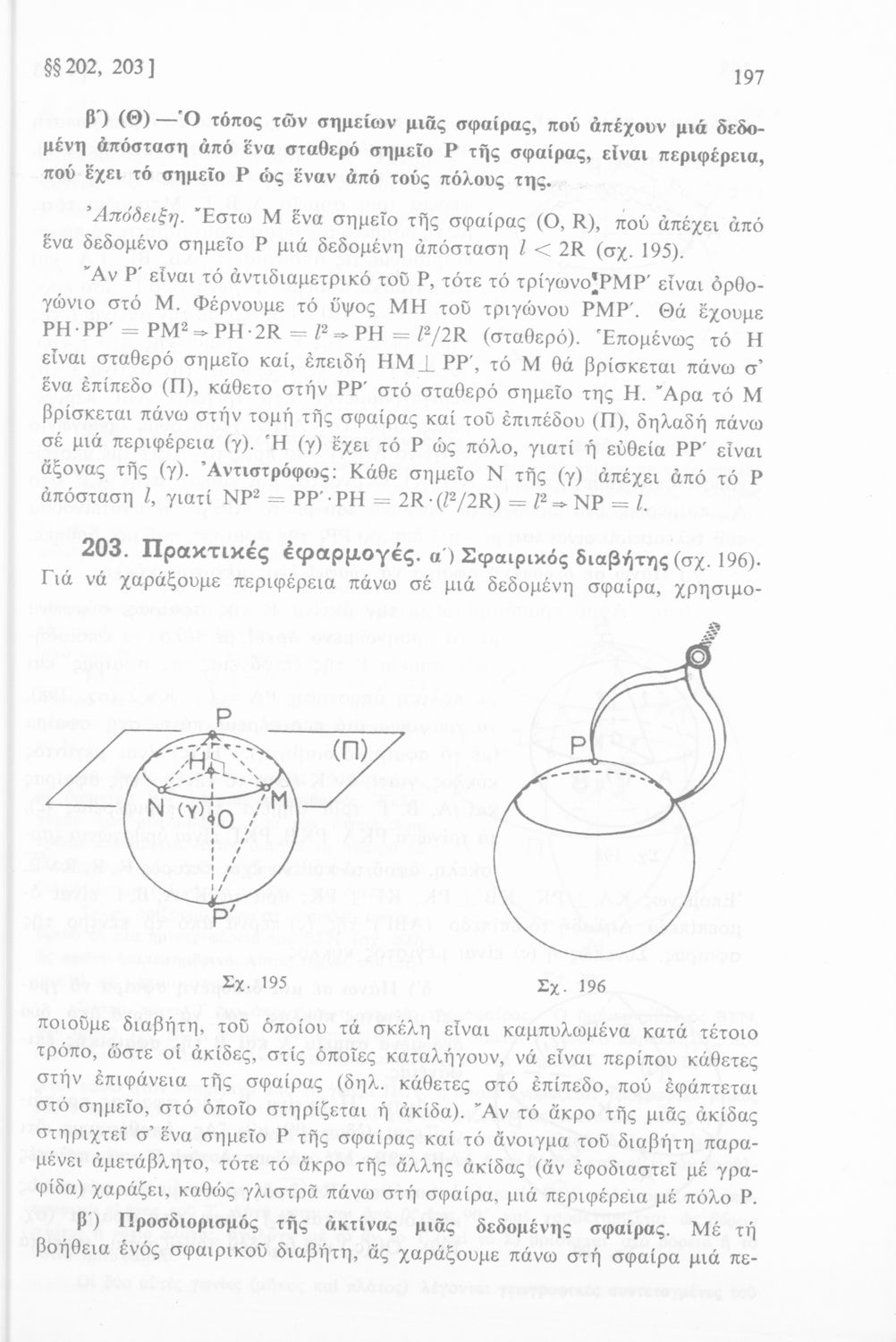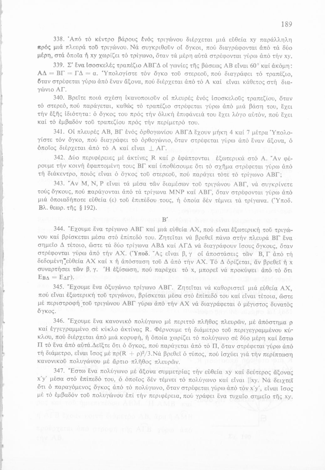 Σχολικό εγχειρίδιο Γεωμετρίας για τις Β΄ και Γ΄ Λυκείου που περιλαμβάνει αξιώματα, θεωρήματα και κατασκευές και είναι χωρισμένο σε Γεωμετρία Επιπέδου και Γεωμετρία Χώρου. Το εγχειρίδιο μεταγλωττίστηκε από τον συγγραφέα σε συνεργασία με τον Μενέλαο Καραμεσίνη.