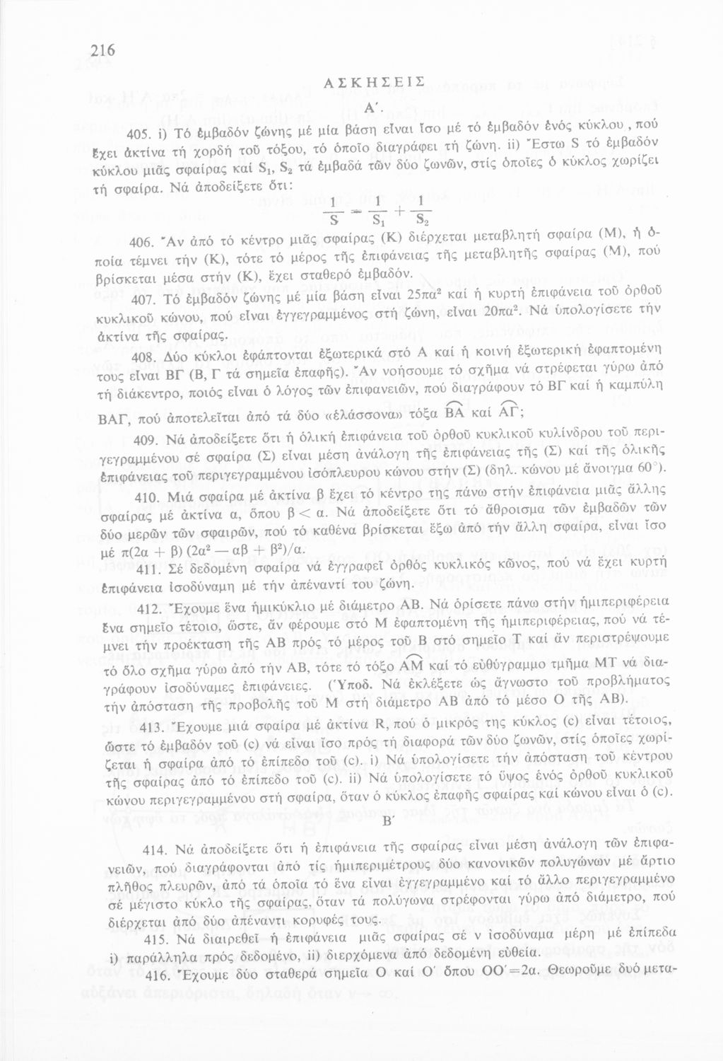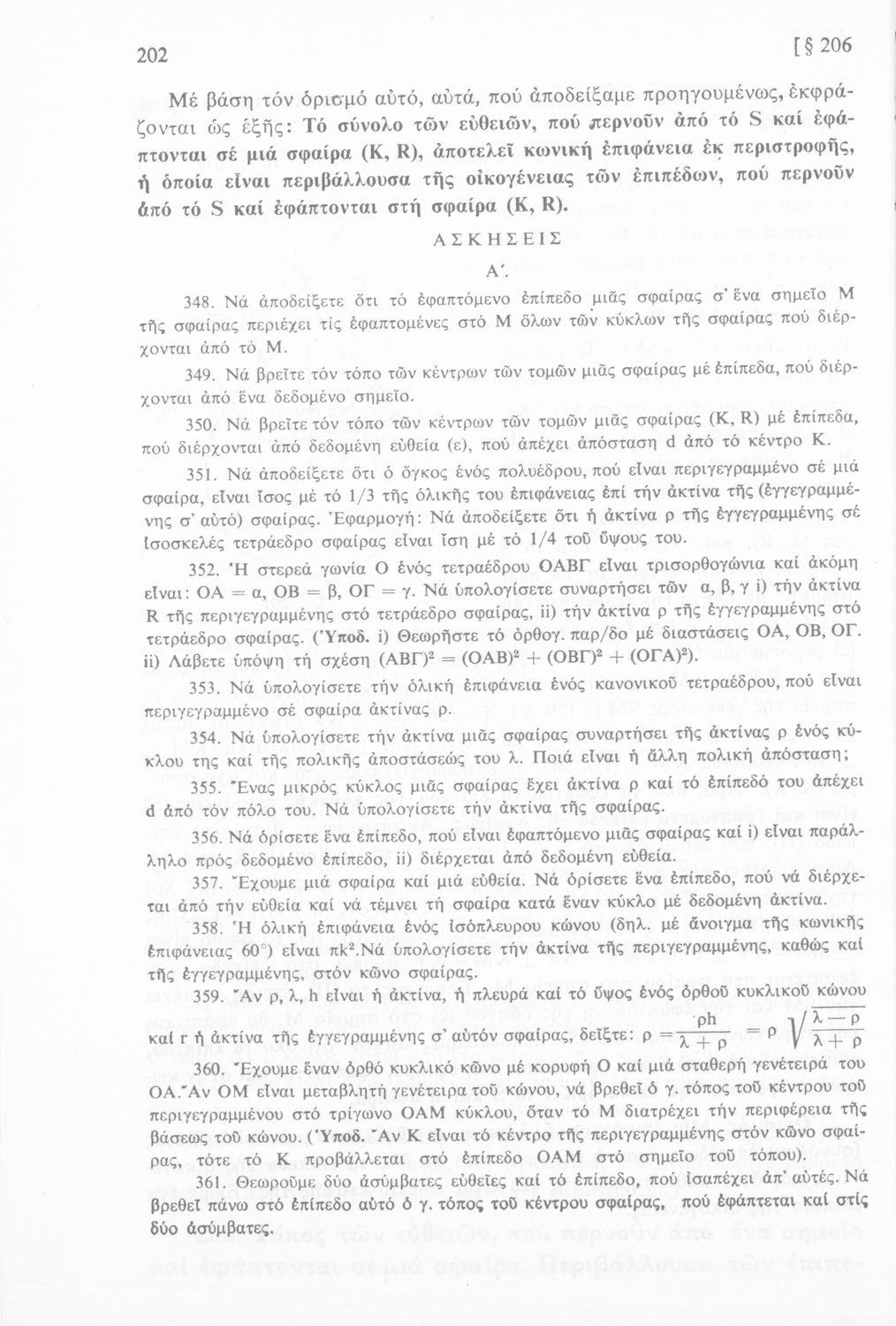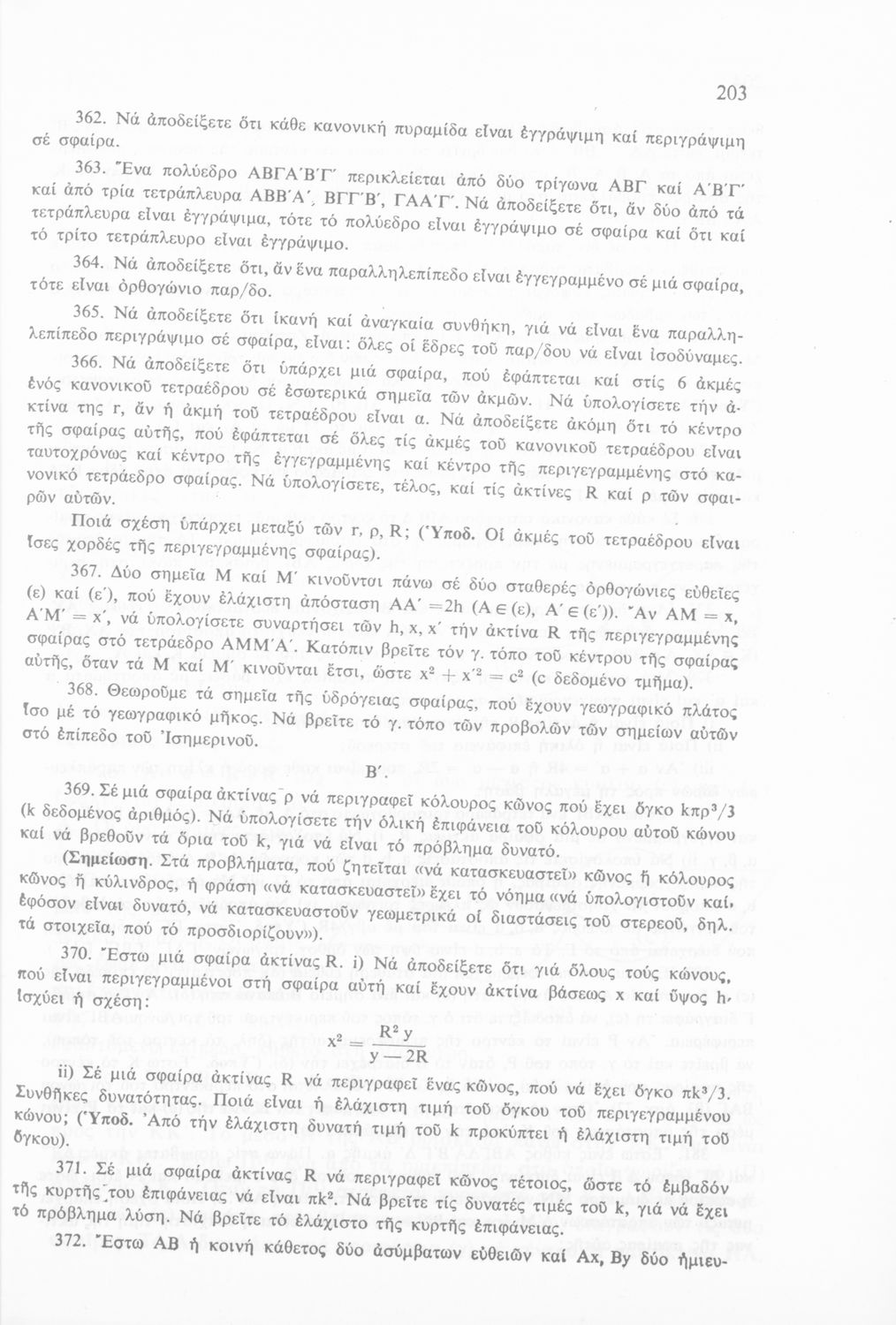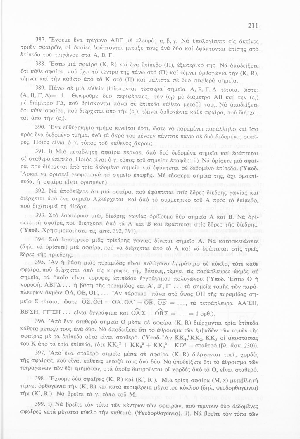 Σχολικό εγχειρίδιο Γεωμετρίας για τις Β΄ και Γ΄ Λυκείου που περιλαμβάνει αξιώματα, θεωρήματα και κατασκευές και είναι χωρισμένο σε Γεωμετρία Επιπέδου και Γεωμετρία Χώρου. Το εγχειρίδιο μεταγλωττίστηκε από τον συγγραφέα σε συνεργασία με τον Μενέλαο Καραμεσίνη.