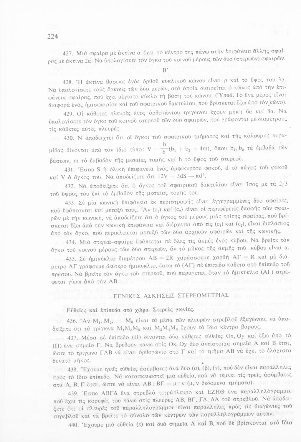 Σχολικό εγχειρίδιο Γεωμετρίας για τις Α΄, Β΄ και Γ΄ Λυκείου που περιλαμβάνει θεωρία και ασκήσεις και είναι χωρισμένο σε Επιπεδομετρία και Στερεομετρία.