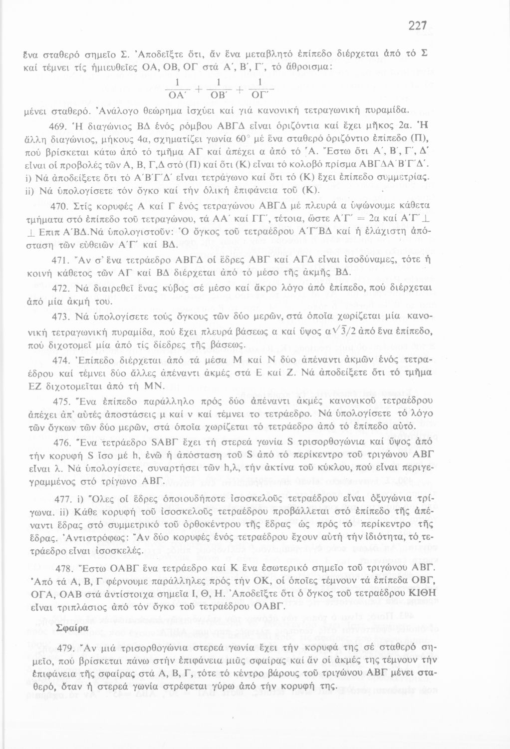 Σχολικό εγχειρίδιο Γεωμετρίας για τις Δ΄, Ε΄ και ΣΤ΄ Γυμνασίου που περιλαμβάνει αξιώματα, θεωρήματα και κατασκευές και είναι χωρισμένο σε γεωμετρία επιπέδου και γεωμετρία χώρου.