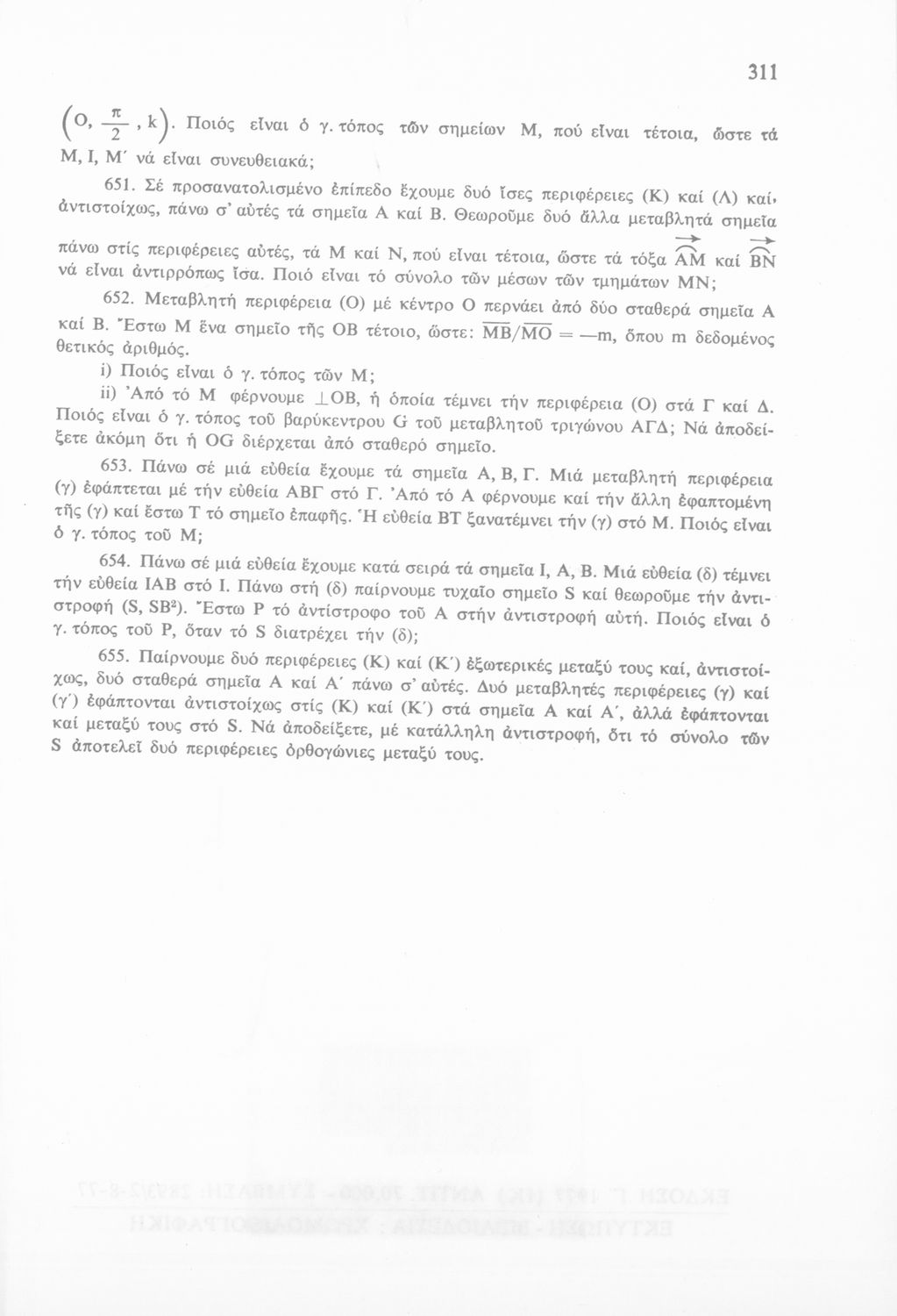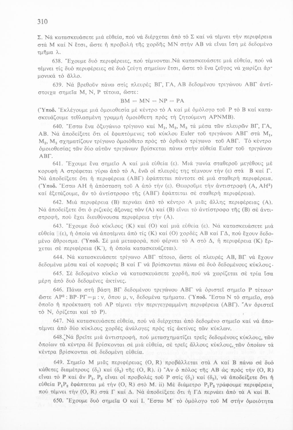 Σχολικό εγχειρίδιο Γεωμετρίας για τις Β΄ και Γ΄ Λυκείου που περιλαμβάνει αξιώματα, θεωρήματα και κατασκευές και είναι χωρισμένο σε Γεωμετρία Επιπέδου και Γεωμετρία Χώρου. Το εγχειρίδιο μεταγλωττίστηκε από τον συγγραφέα σε συνεργασία με τον Μενέλαο Καραμεσίνη.