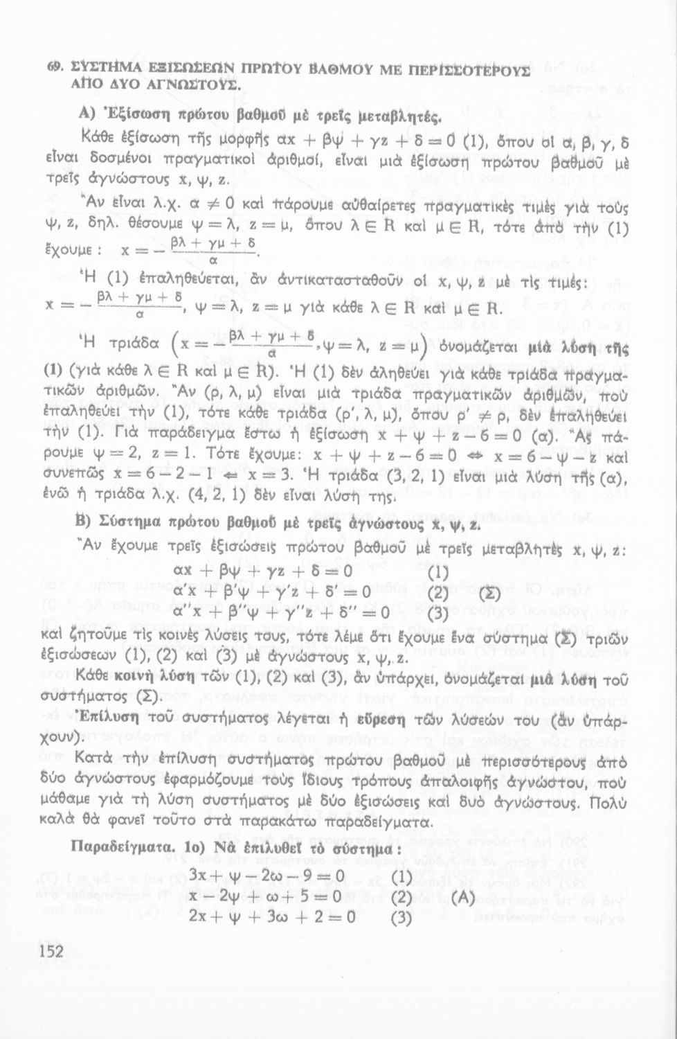 Σχολικό εγχειρίδιο μαθηματικών Γ΄ Γυμνασίου που περιλαμβάνει θεωρία, παραδείγματα και ασκήσεις. Φέρει το σύμβολο της δικτατορίας.