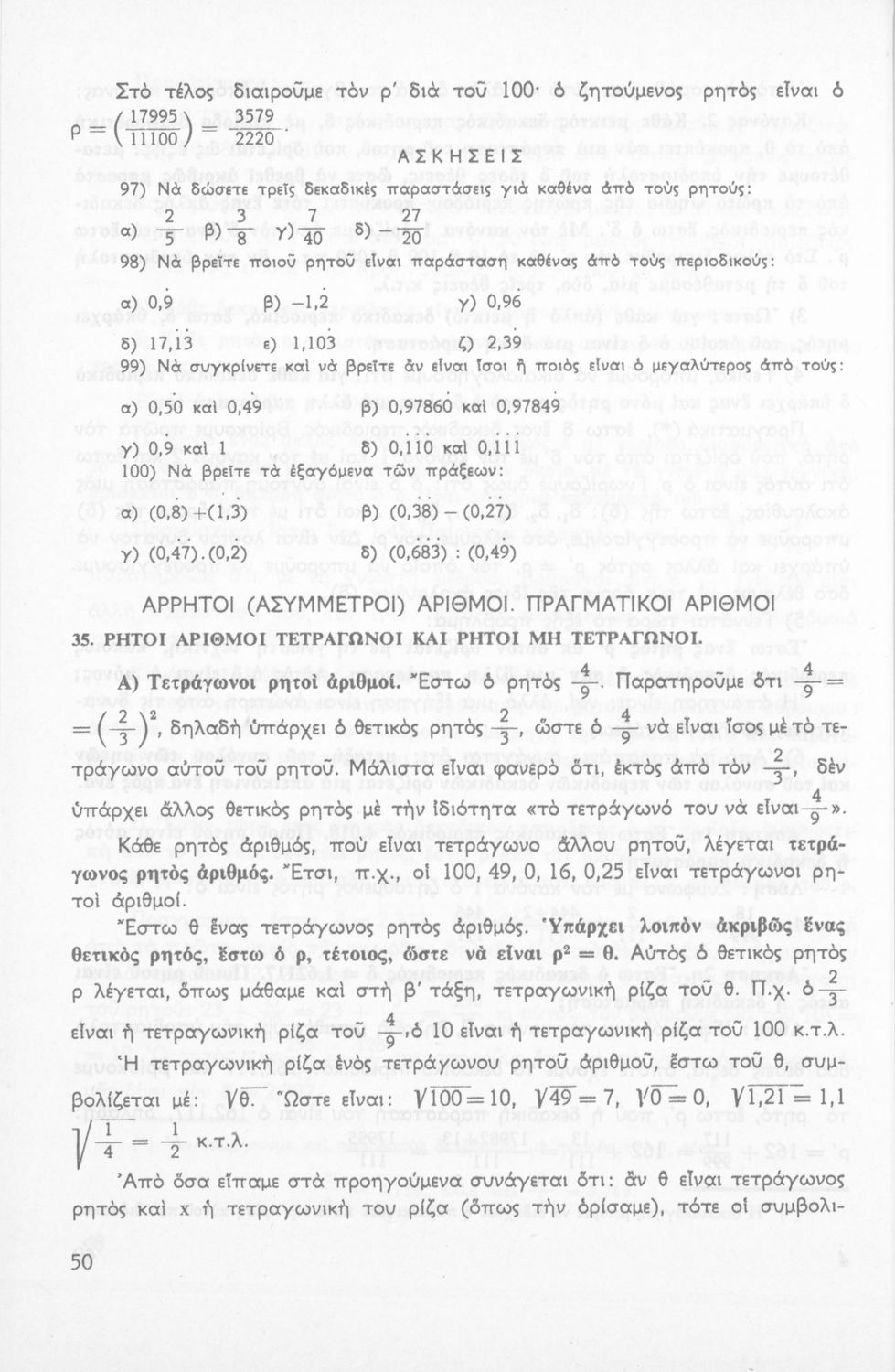 Σχολικό εγχειρίδιο μαθηματικών Γ΄ Γυμνασίου που περιλαμβάνει θεωρία, παραδείγματα και ασκήσεις. Φέρει το σύμβολο της δικτατορίας.
