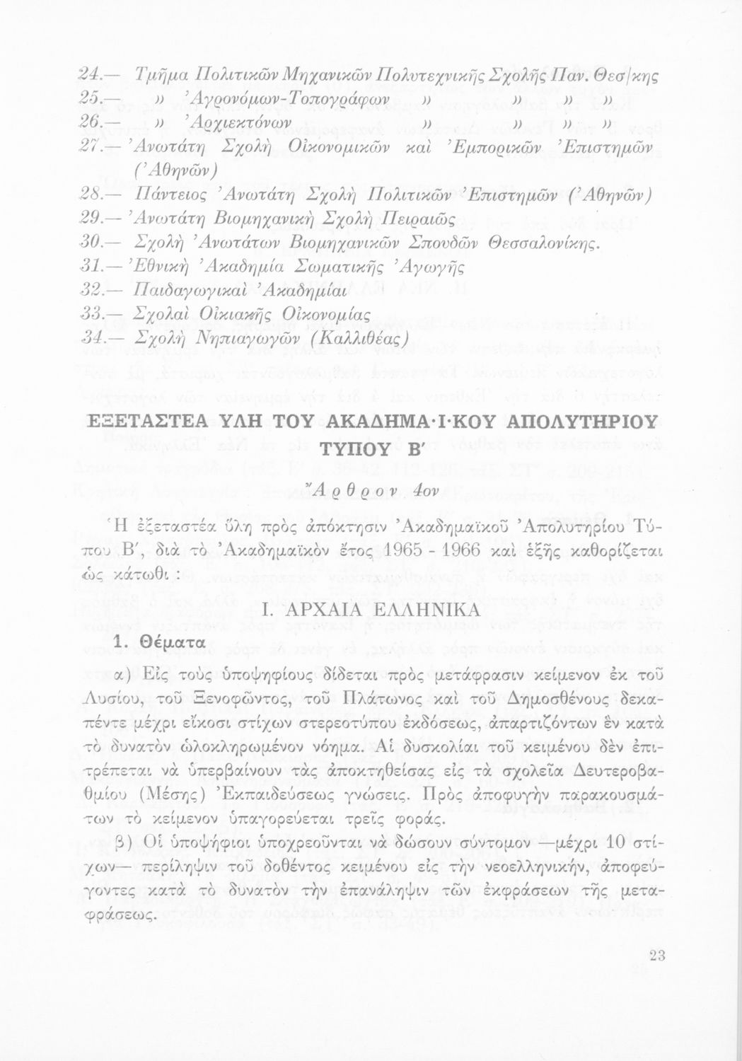 Έκδοση του Υπουργείου Εθνικής Παιδείας και Θρησκευμάτων που καθορίζει την εξεταστέα ύλη για την απόκτηση του ακαδημαϊκού απολυτηρίου.